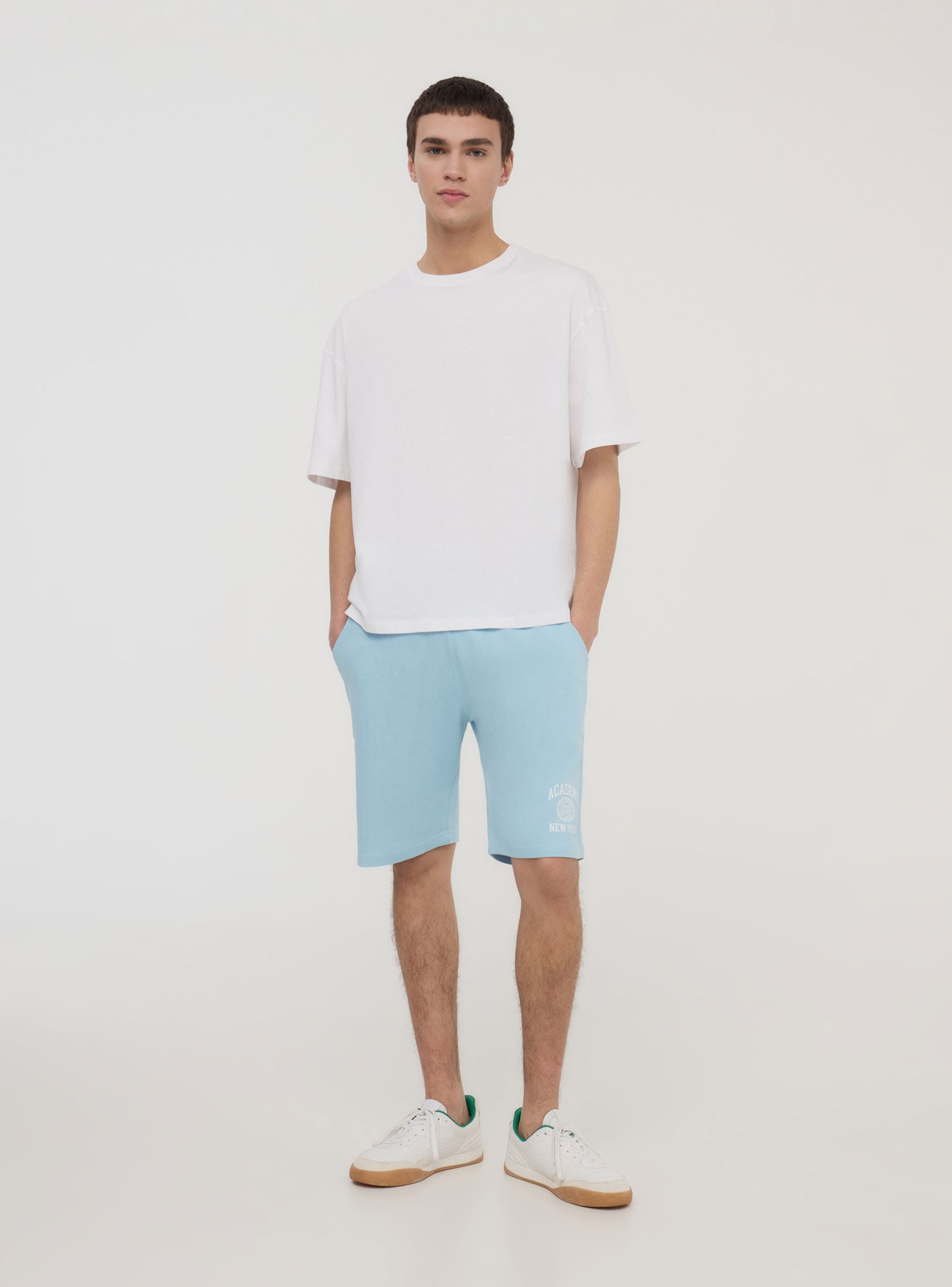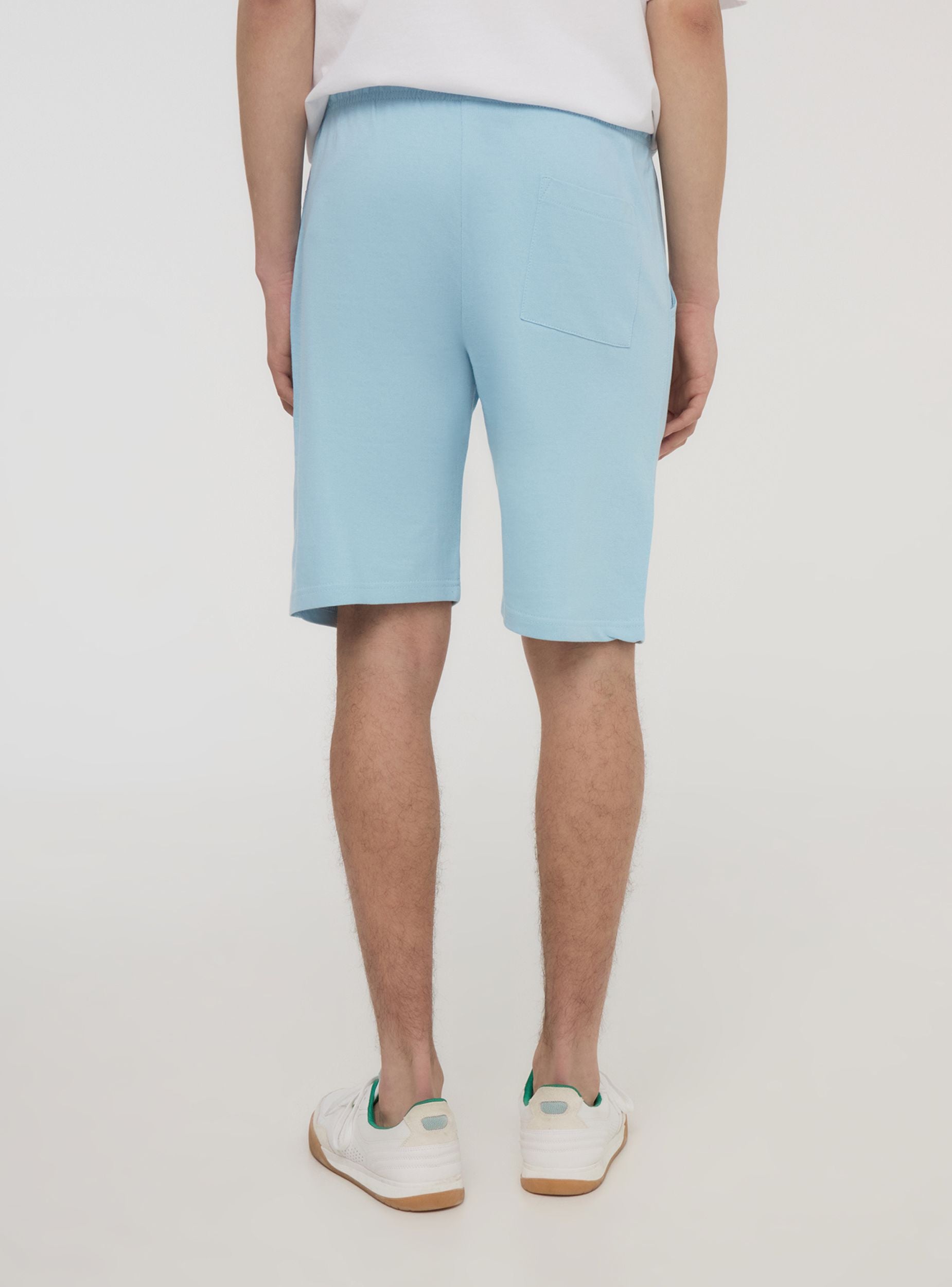 Bermuda da uomo a tinta unita, dal design casual e funzionale, arricchito da una stampa laterale che aggiunge un tocco sportivo. Dotato di pratiche tasche laterali e di una comoda tasca posteriore, è ideale per un look estivo rilassato. La coulisse regolabile in vita garantisce una vestibilità confortevole e personalizzabile, rendendoli perfetti per il tempo libero e per attività all'aperto. Perfetti da abbinare a una t-shirt per un look sportivo e disinvolto.
