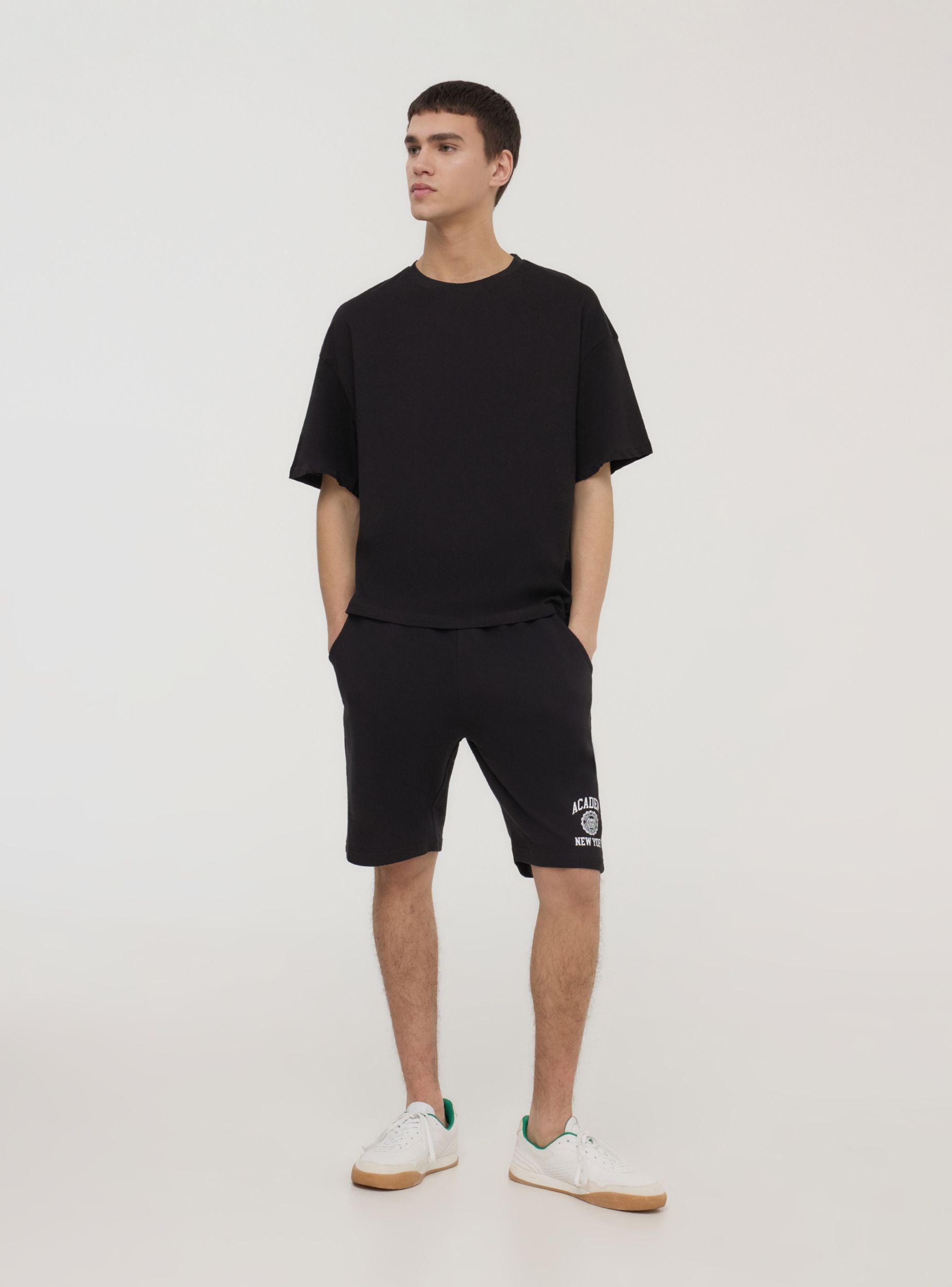 Bermuda da uomo a tinta unita, dal design casual e funzionale, arricchito da una stampa laterale che aggiunge un tocco sportivo. Dotato di pratiche tasche laterali e di una comoda tasca posteriore, è ideale per un look estivo rilassato. La coulisse regolabile in vita garantisce una vestibilità confortevole e personalizzabile, rendendoli perfetti per il tempo libero e per attività all'aperto. Perfetti da abbinare a una t-shirt per un look sportivo e disinvolto.