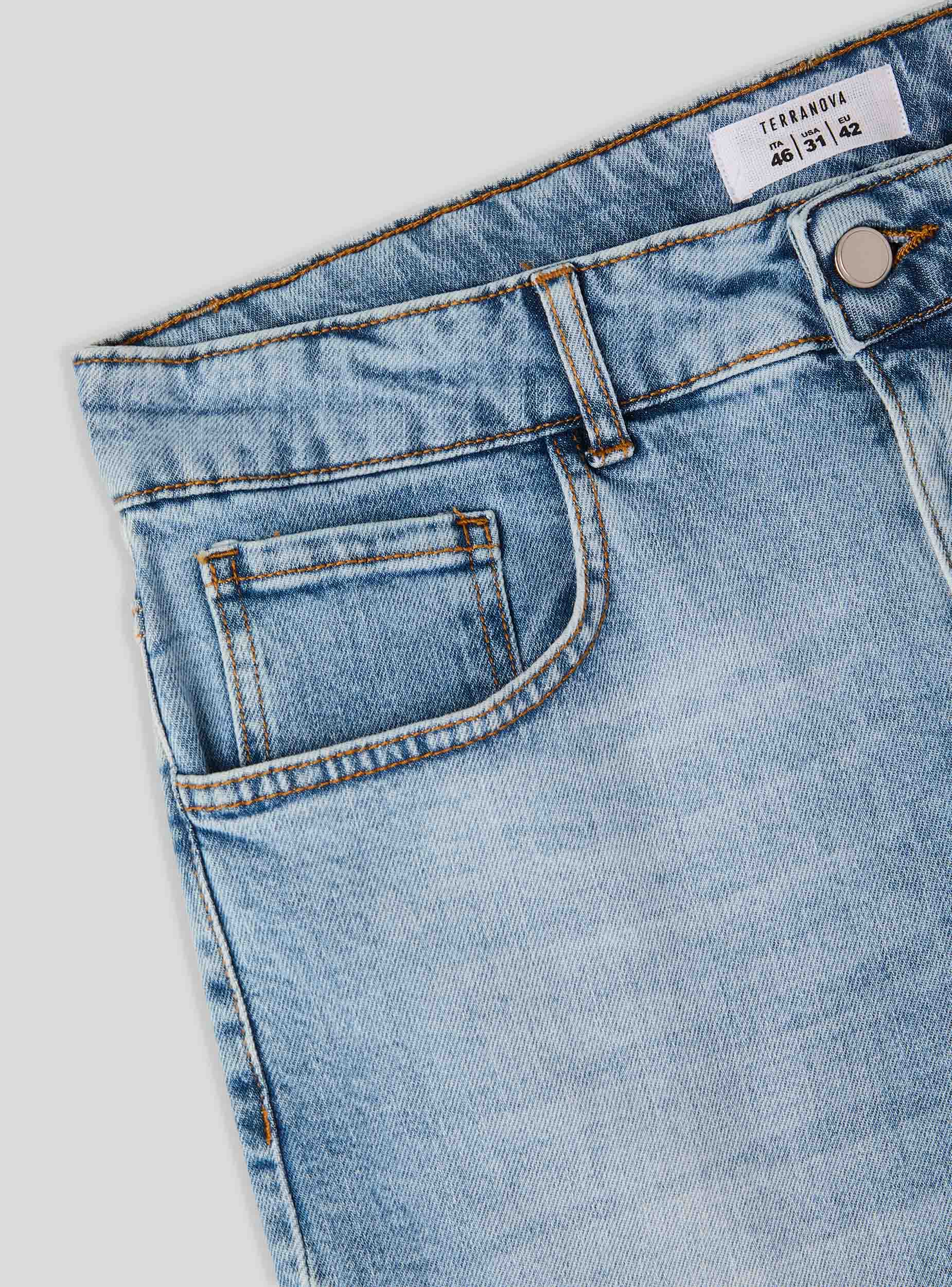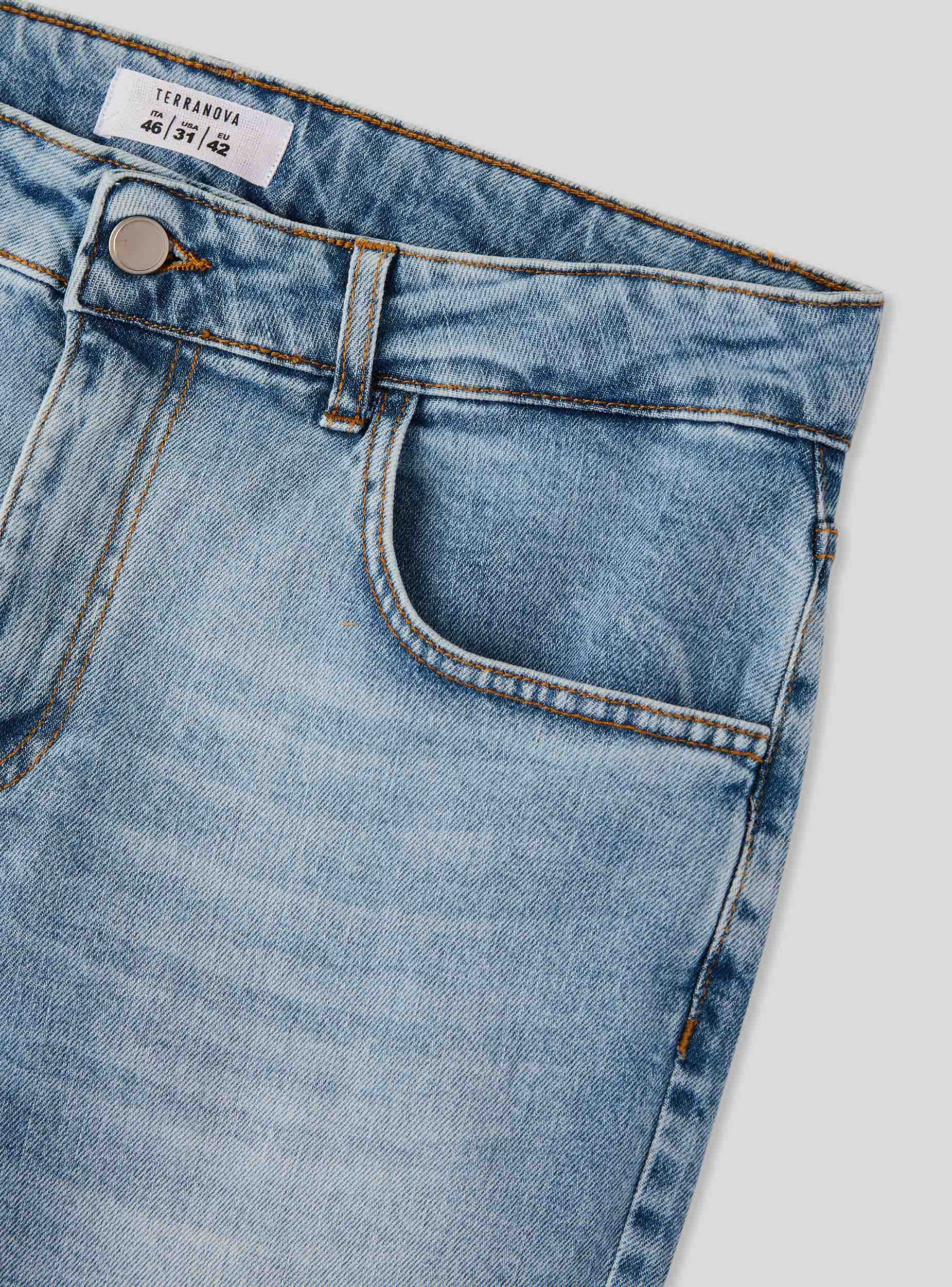 Bermuda di jeans da uomo con vestibilità regular, ideali per un look casual e versatile. Presentano una chiusura con bottone e zip, tasche anteriori e posteriori funzionali e un design a tinta unita. Perfetti per abbinamenti con t-shirt o camicie per un outfit estivo e informale. Adatti per il tempo libero e occasioni quotidiane.Dettagli