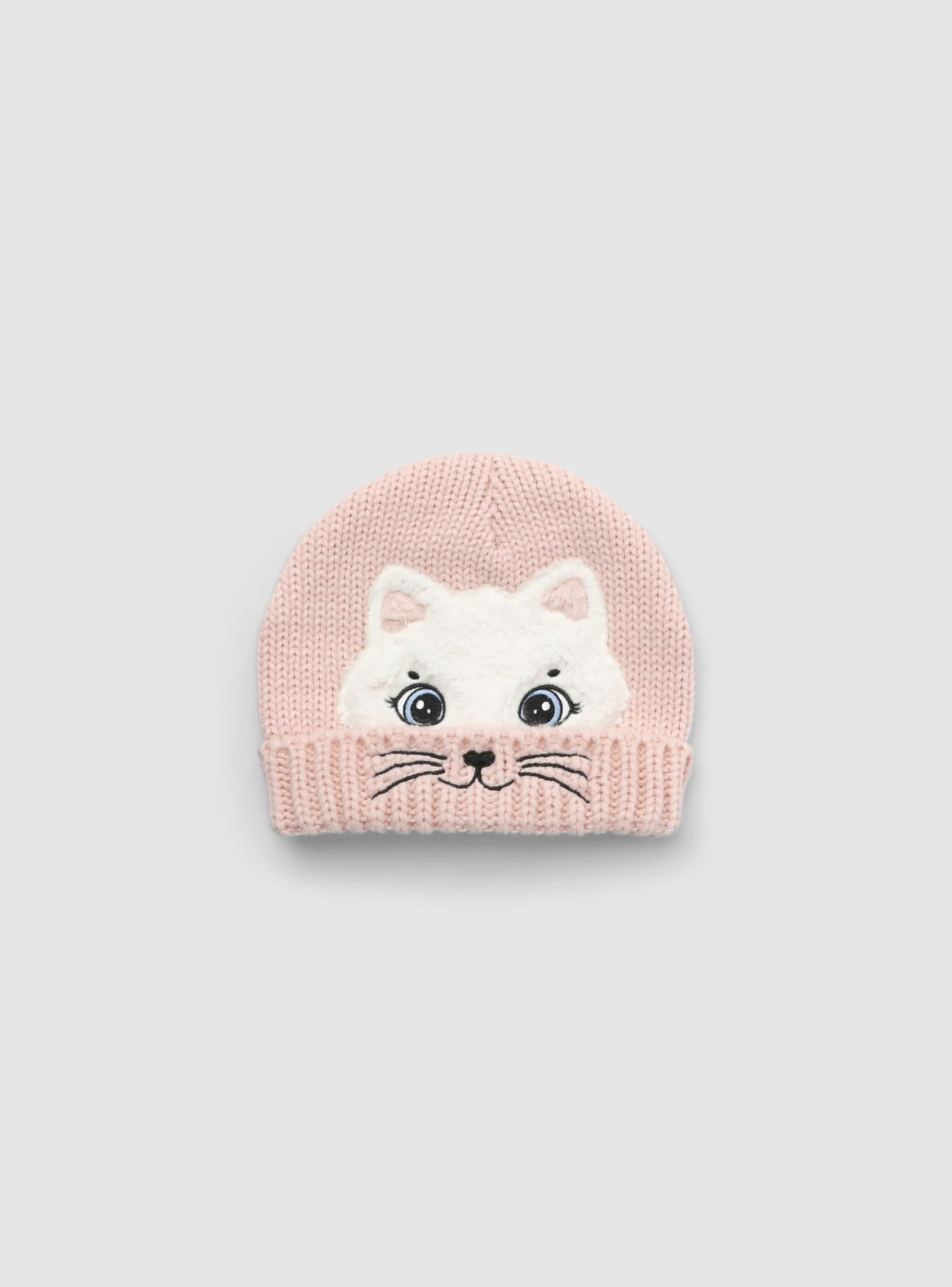 Berretto da bambina con motivo animaletto. Questo accessorio presenta un design divertente e accattivante, ideale per aggiungere un tocco di allegria agli outfit invernali. La vestibilità comoda e il bordo a coste garantiscono una perfetta aderenza e protezione dal freddo. Perfetto per completare look casual e giocosi.