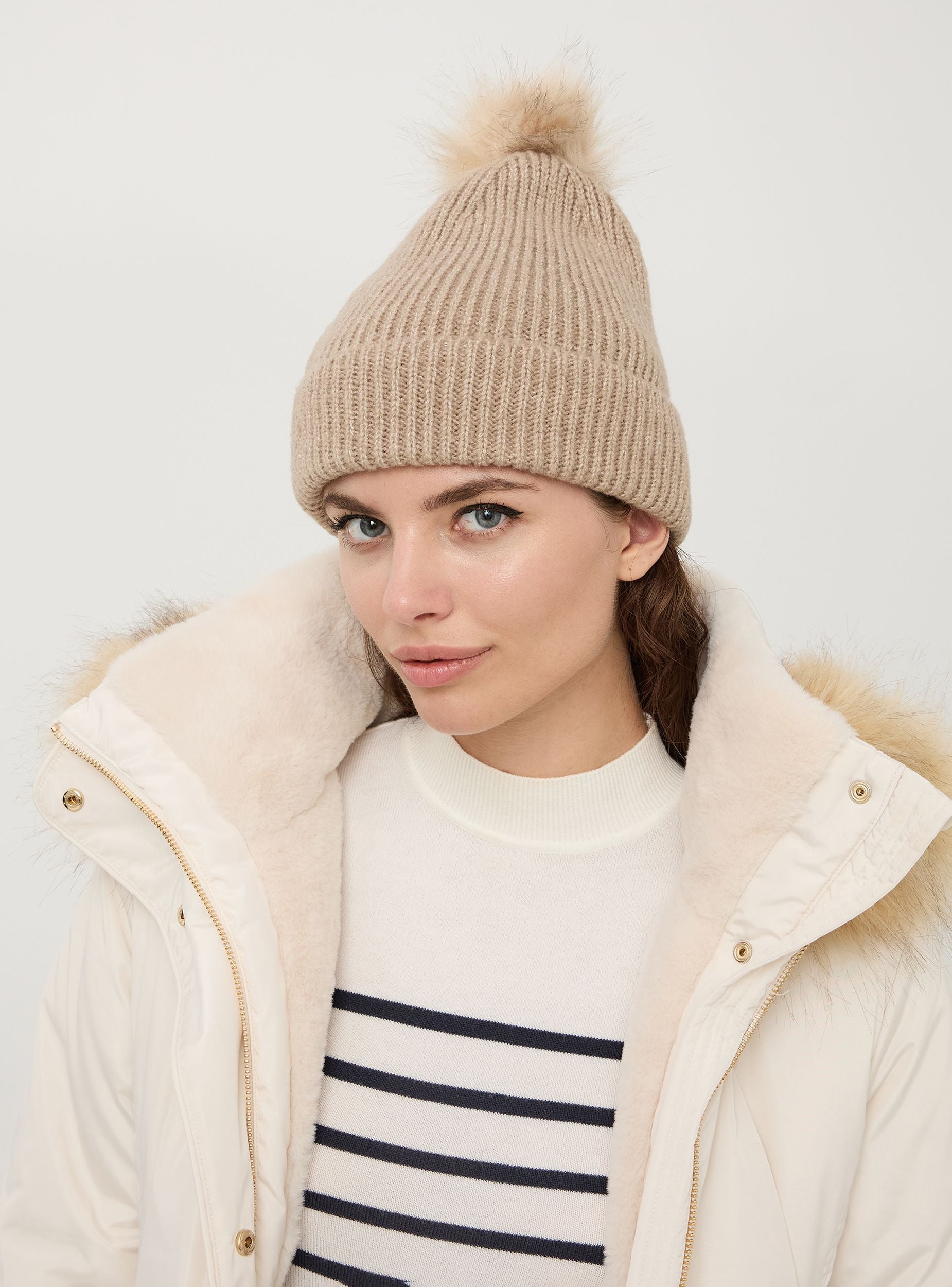 Berretto invernale da donna perfetto per le giornate fredde. Presenta un raffinato design a coste su tutta la superficie e un grande pompon in pelliccia sintetica. Lo stile casual e versatile del beanie lo rende perfetto per completare qualsiasi outfit. Un capo essenziale per l'inverno che garantisce calore e comfortDettagli