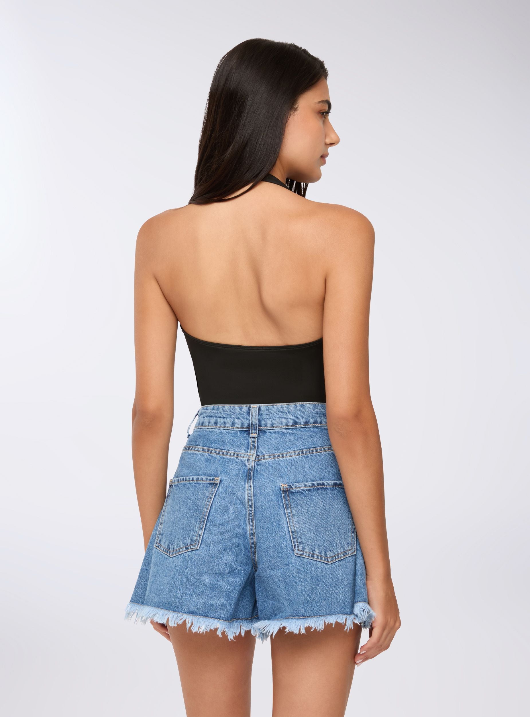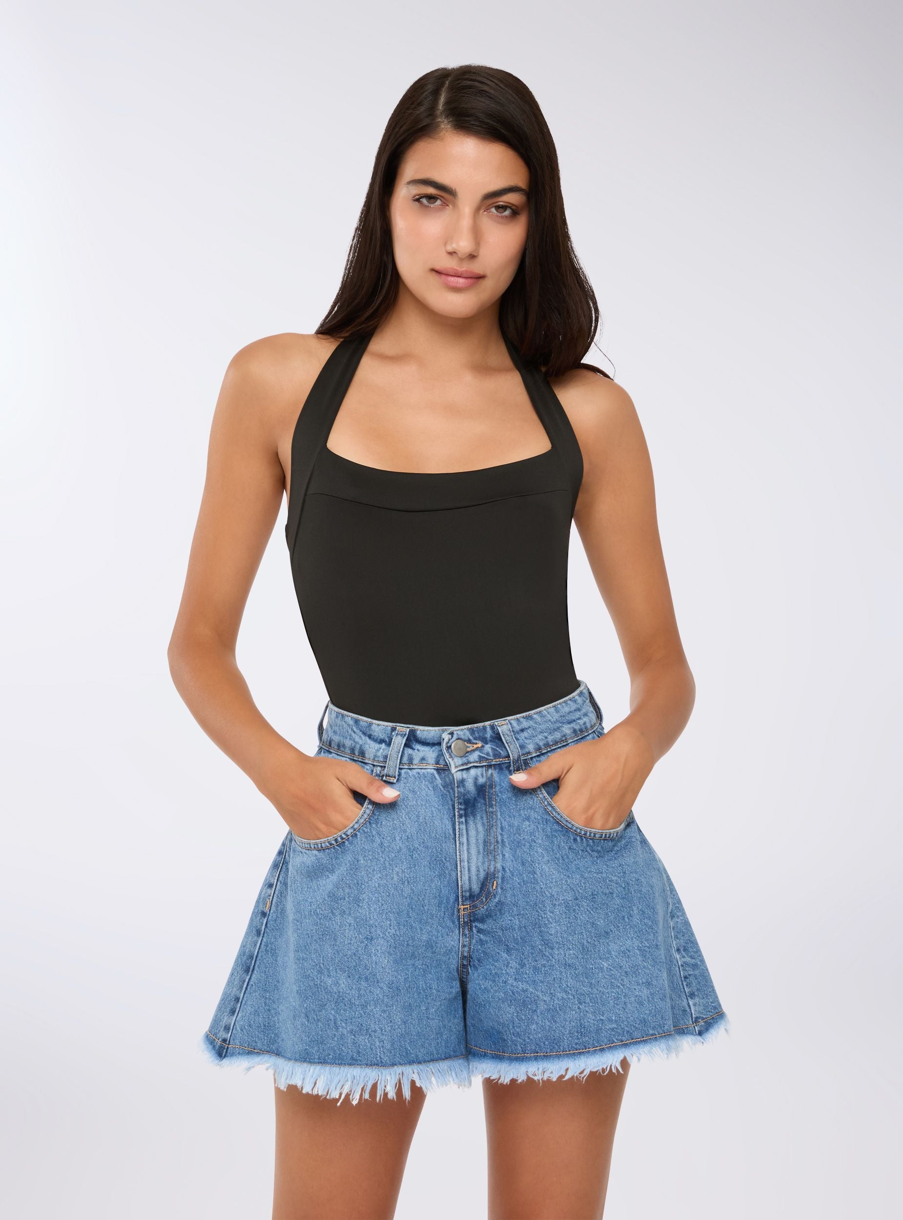 Body da donna con scollo halterneck, ideale per occasioni eleganti o serate speciali. La vestibilitá aderente valorizza la silhouette, mentre il design tinta unita lo rende versatile per abbinamenti con gonne o pantaloni. Perfetto da indossare sotto giacche o blazer per un look sofisticato.Dettagli