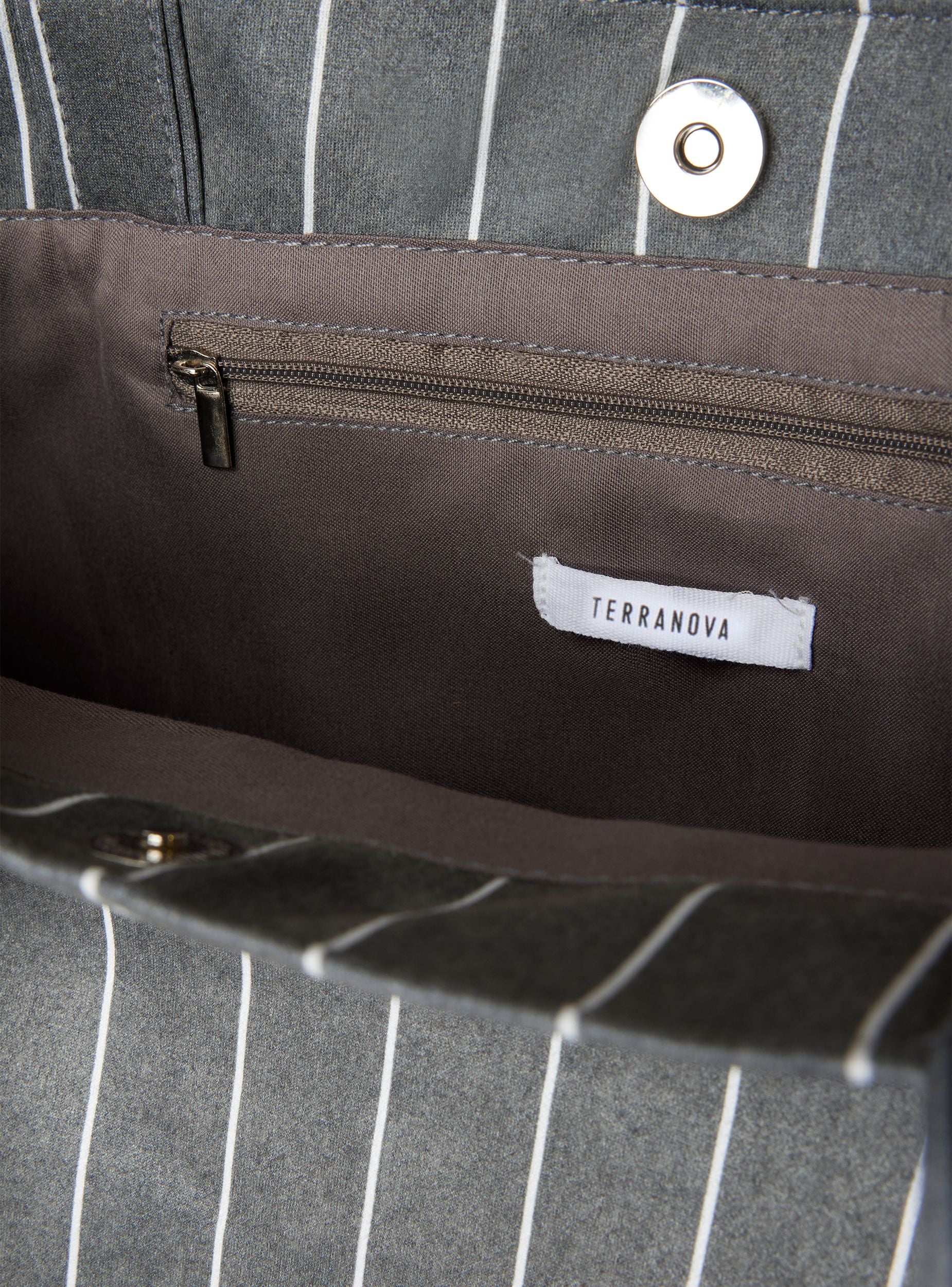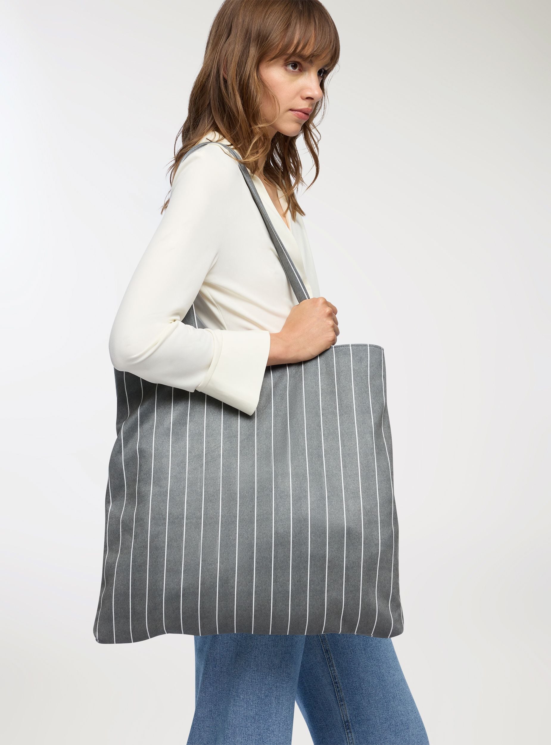 Borsa da donna, modello shopper, in microfibra gessata. Perfetta per completare i tuoi look quotidiani, questa borsa unisce praticità e stile urbano. Realizzata in microfibra leggera e morbida, è decorata con un elegante motivo gessato che dona un tocco sofisticato anche agli outfit più casual. Il formato capiente la rende ideale per l'uso quotidiano: puoi portarla con te in ufficio, all'università o nel tempo libero. I manici lunghi permettono di indossarla comodamente a spalla. Un accessorio funzionale, versatile e sempre attuale. Dimensioni: Altezza 47cm, Lunghezza 47cm.