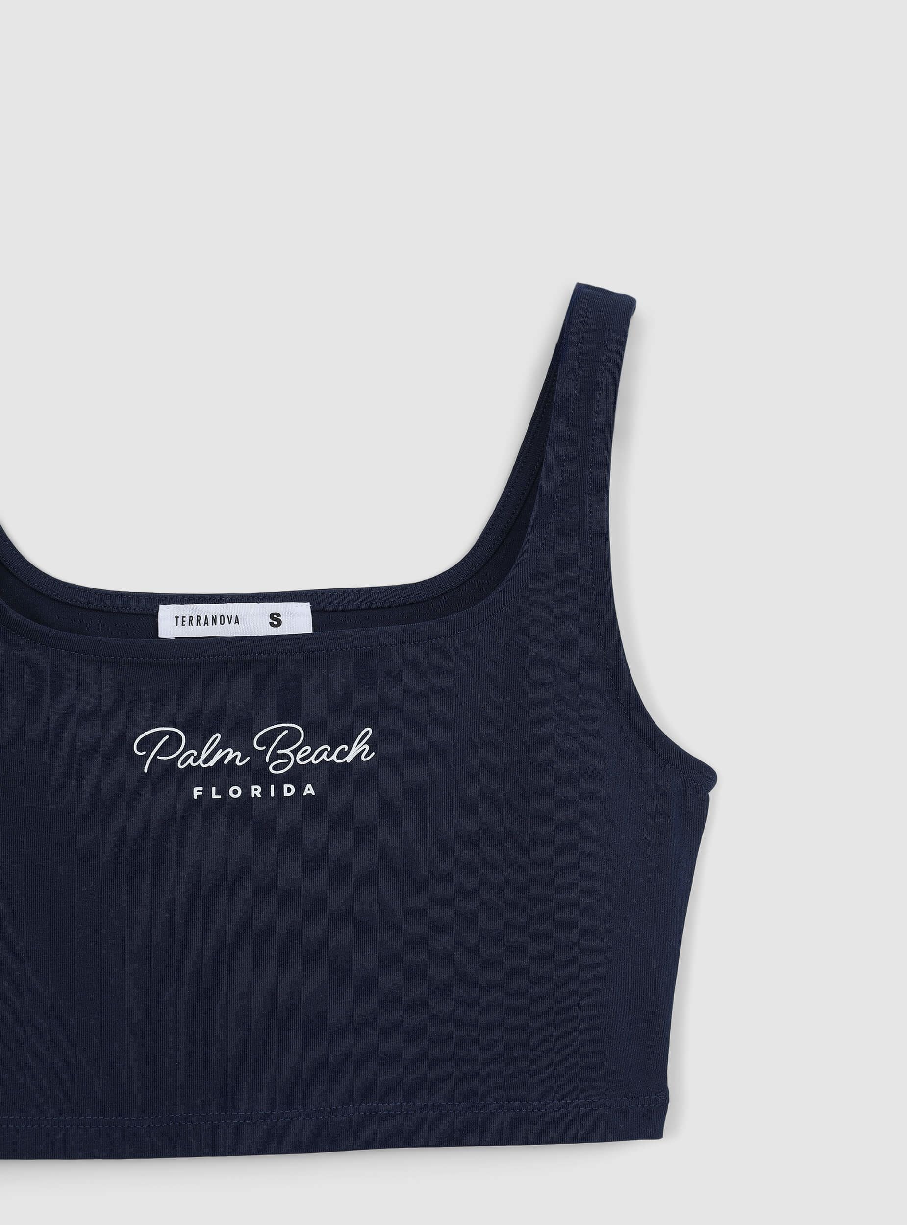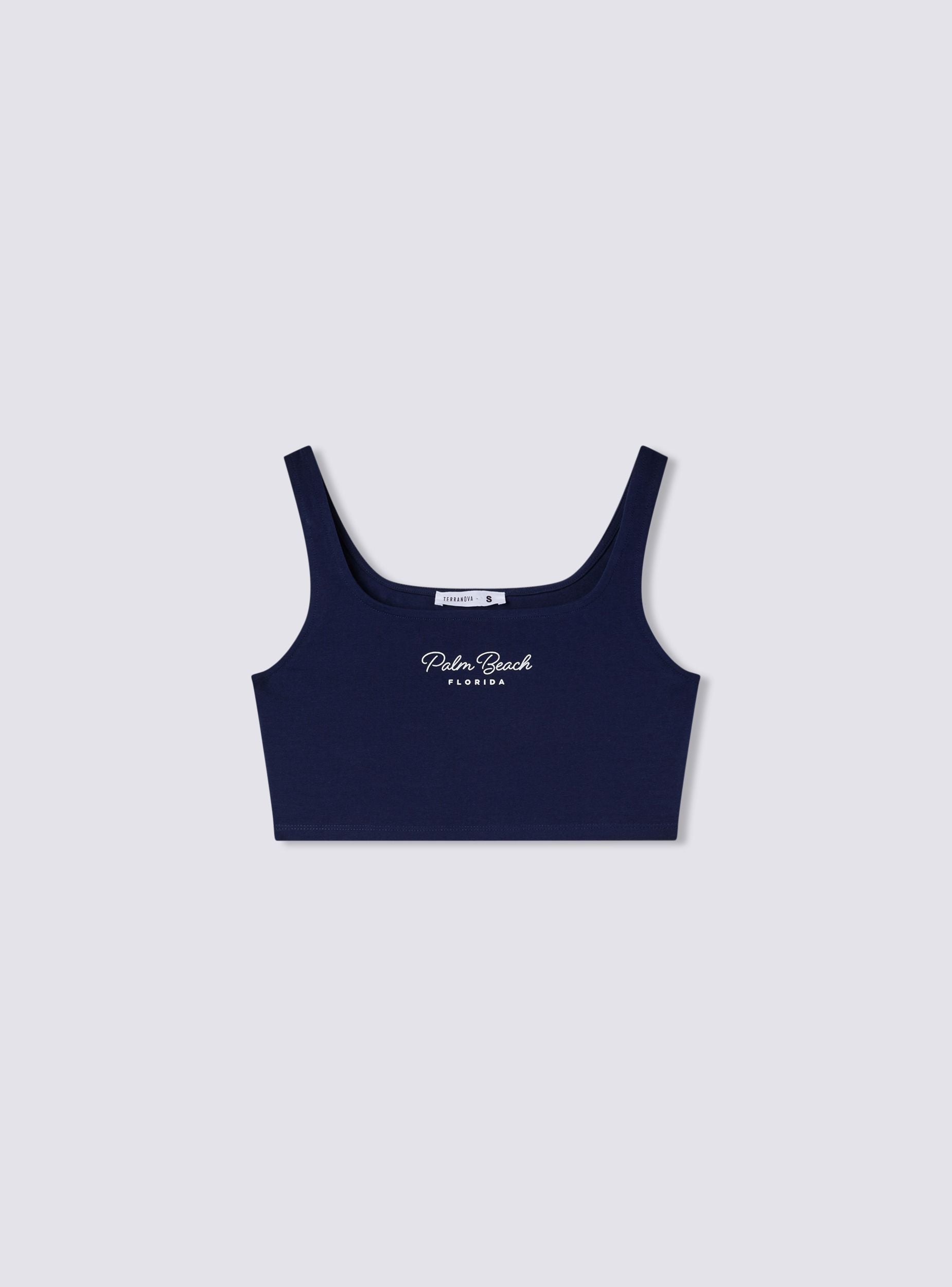 Bra da donna con un design essenziale. Caratterizzato da un comodo scollo ampio e spalline medie, garantisce un buon supporto senza costrizioni. Il dettaglio distintivo è la scritta decorativa posizionata sul davanti, che aggiunge un tocco di stile casual.