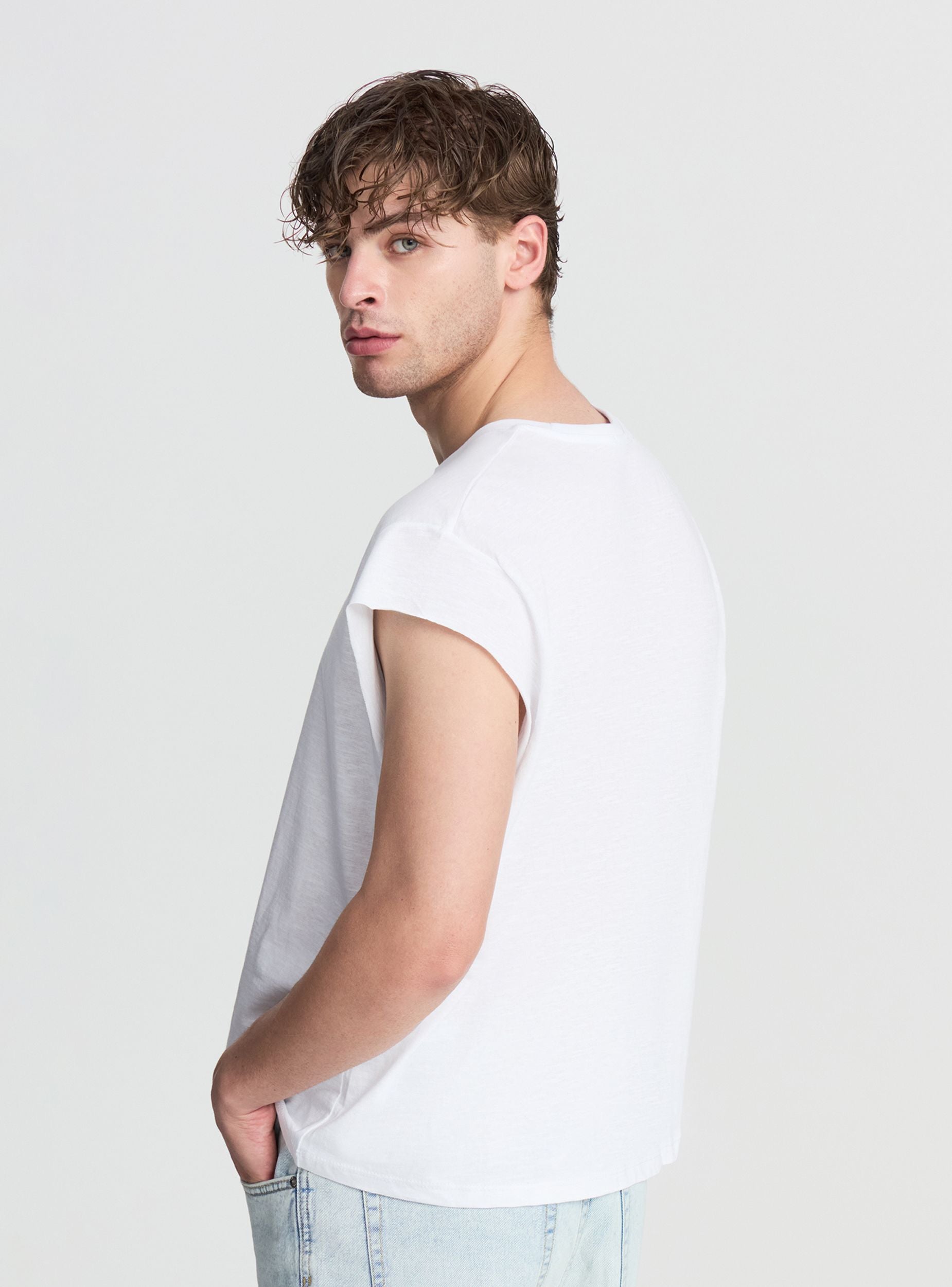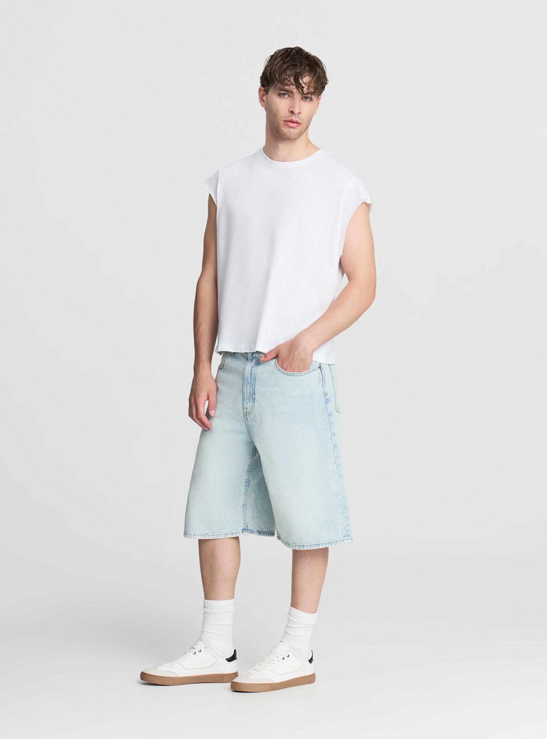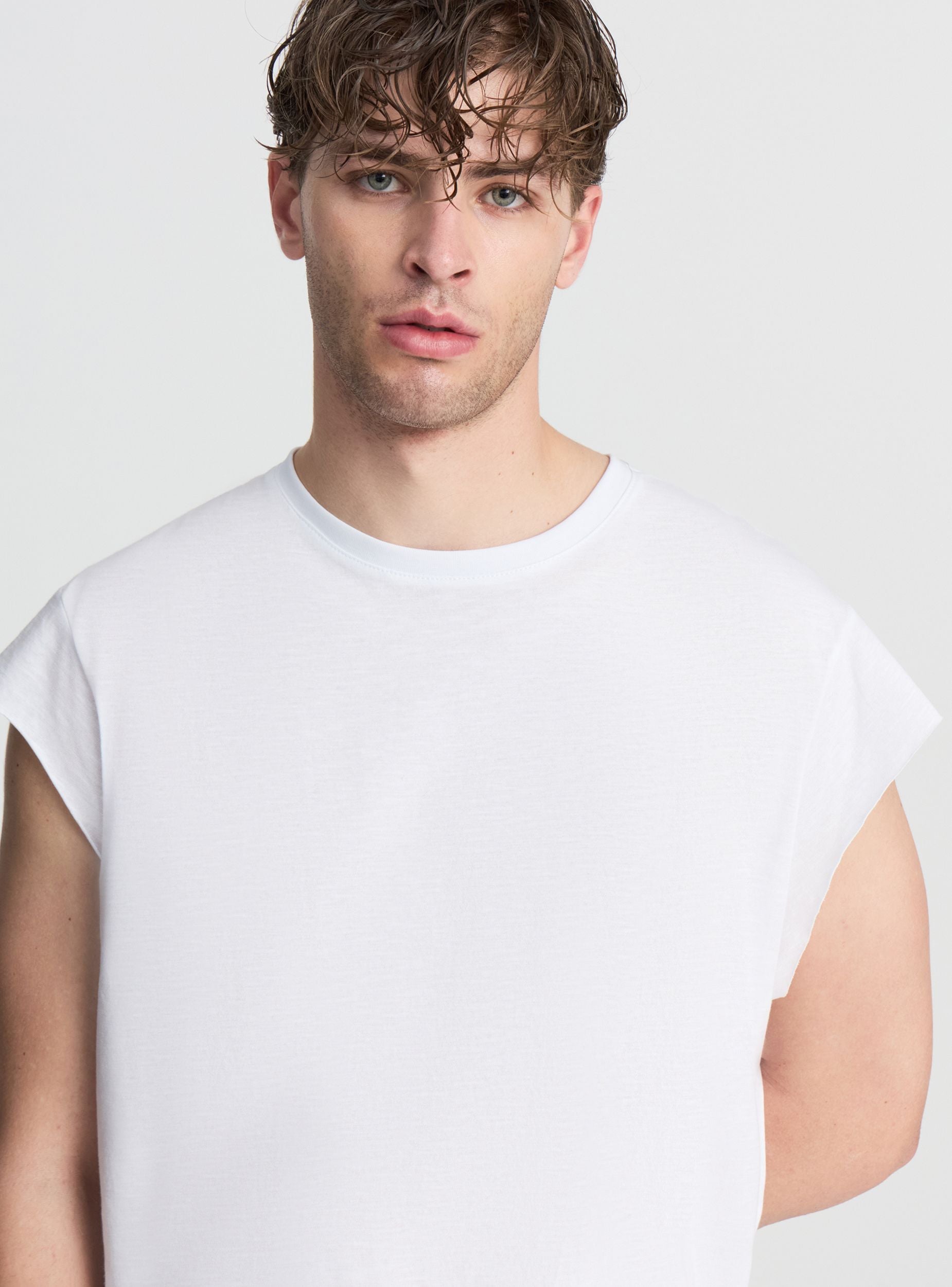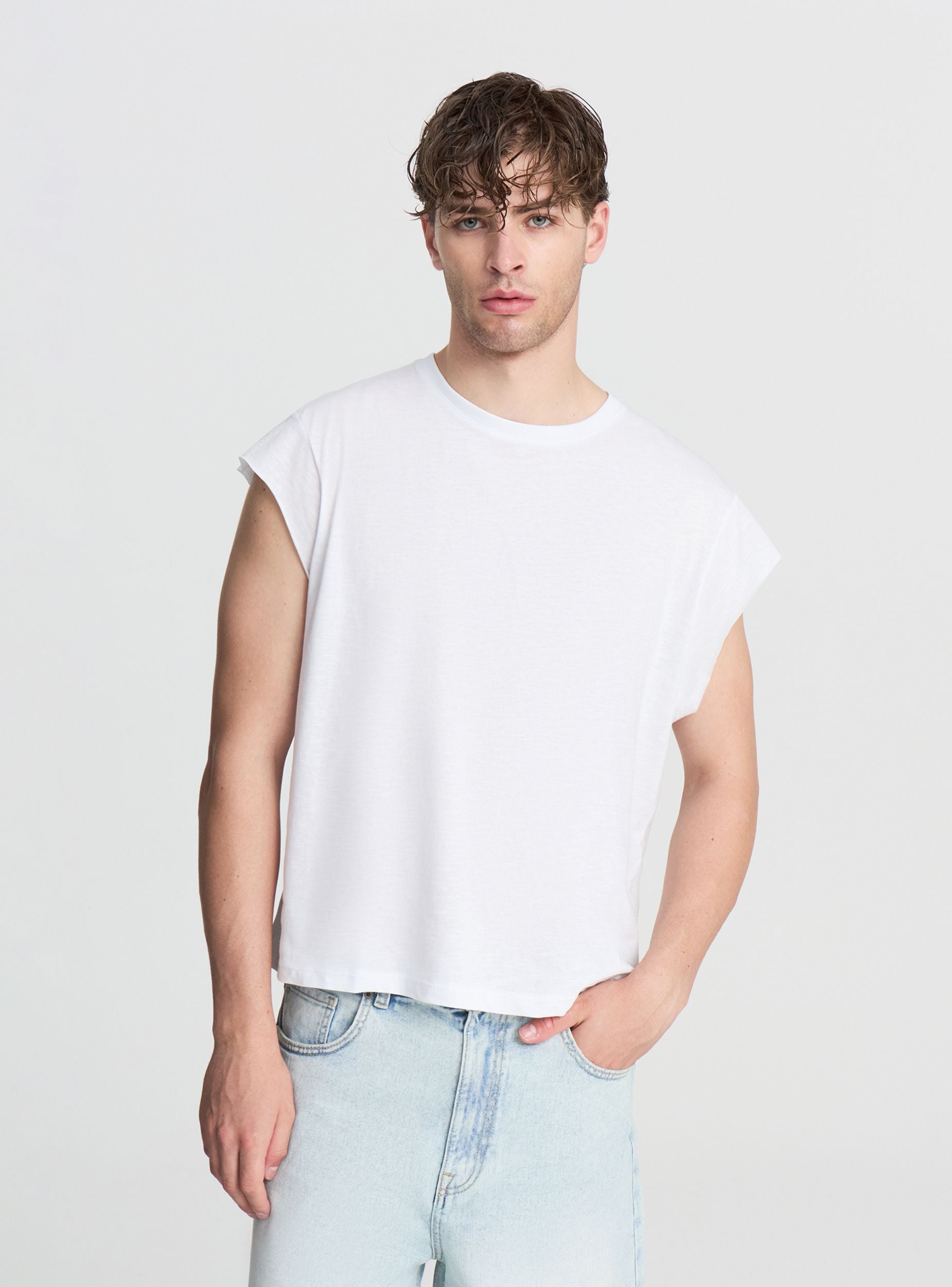 Canotta da uomo ideale per un look casual e moderno. Perfetta per giornate calde, questa canotta crop offre un design minimalista a tinta unita, con girocollo e spalle larghe. Si abbina facilmente a pantaloni sportivi o jeans per un outfit versatile e comodo. La vestibilità crop aggiunge un tocco di stile contemporaneo, rendendola adatta per diverse occasioni informali.