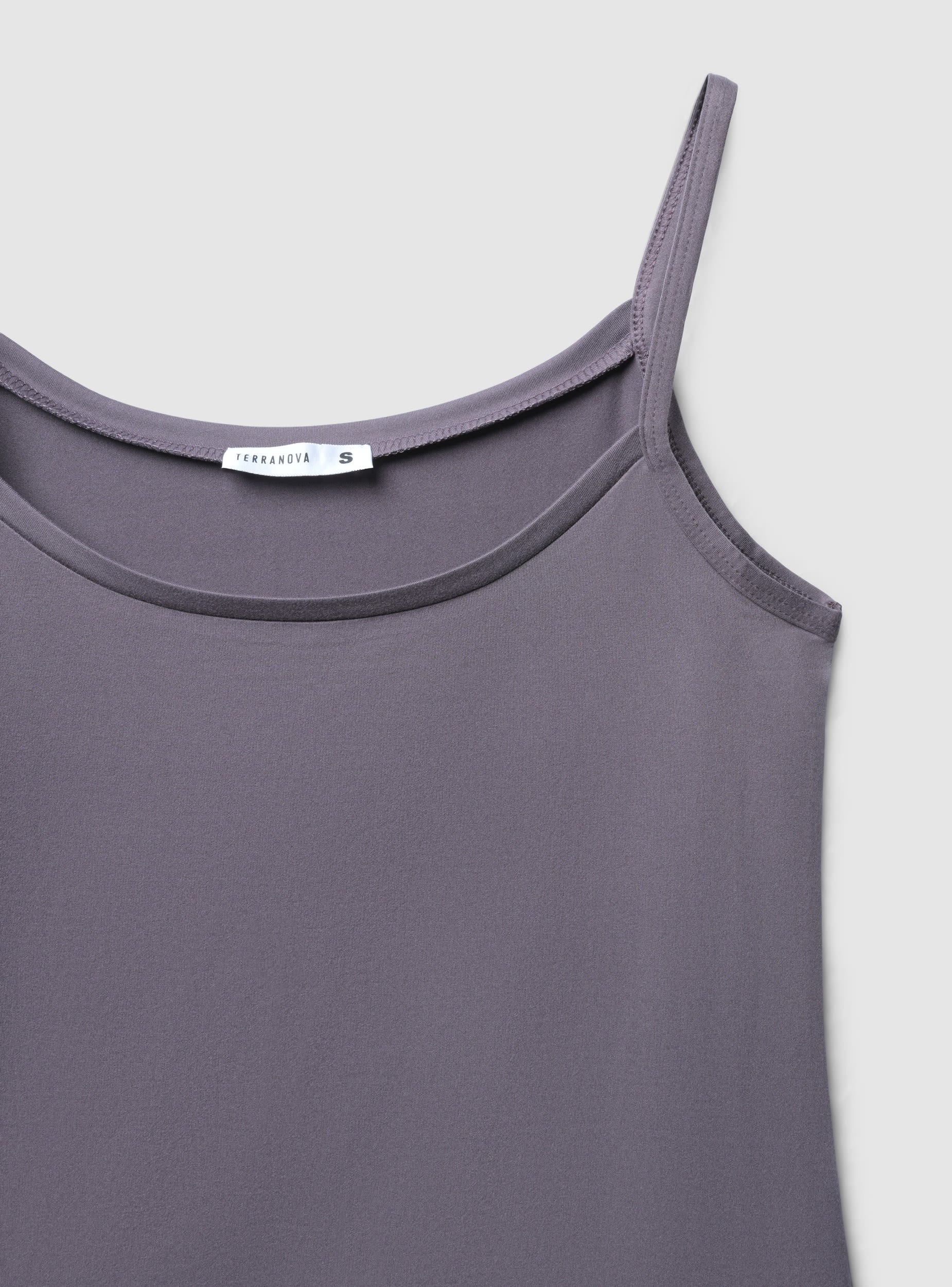 Canottiera thermal da donna in tinta unita, ideale per affrontare le giornate più fredde con comfort e discrezione. Il tessuto elasticizzato garantisce aderenza e libertà di movimento, rendendola perfetta da indossare come primo strato sotto maglie o maglioni. Le spalline sottili e la linea essenziale valorizzano la figura senza costringere. Un capo intimo caldo e versatile, pensato per l’inverno.Dettagli