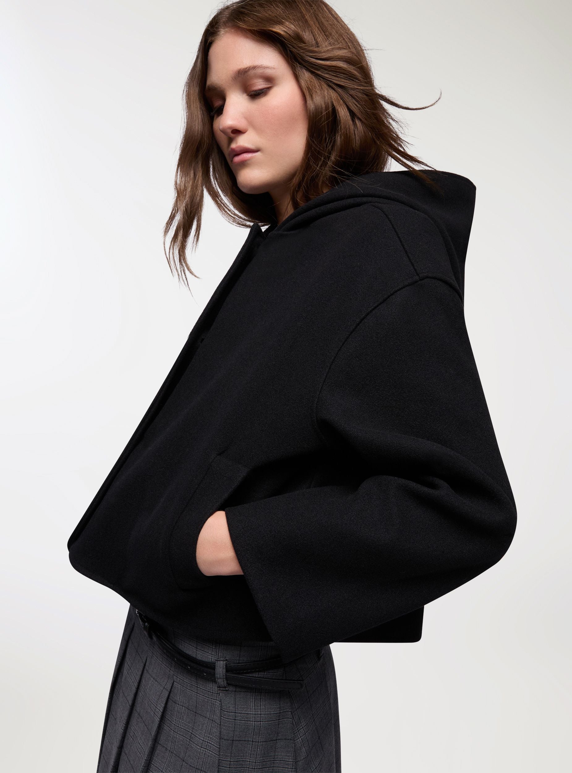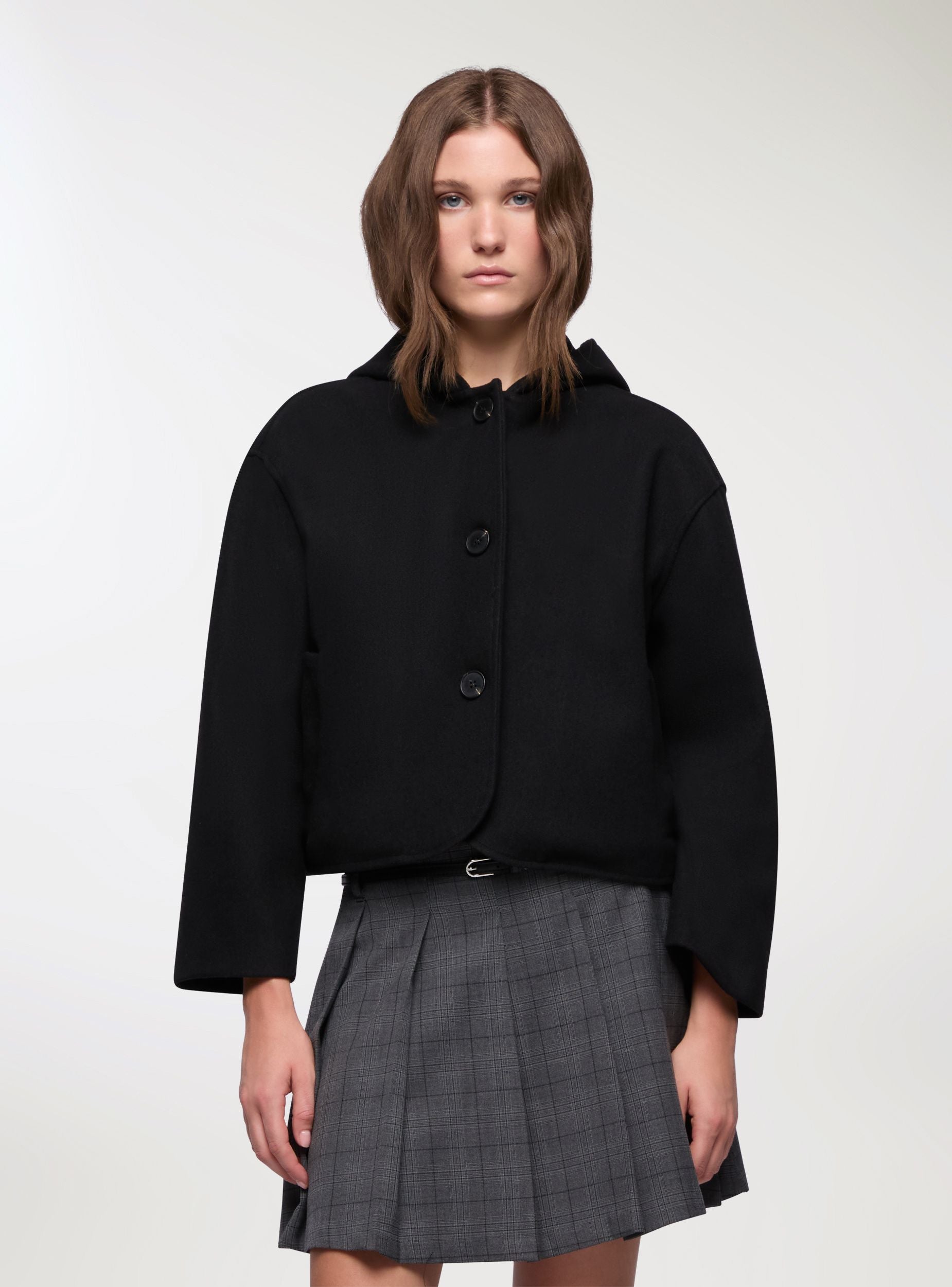 Giacca corta con cappuccio e bottoni