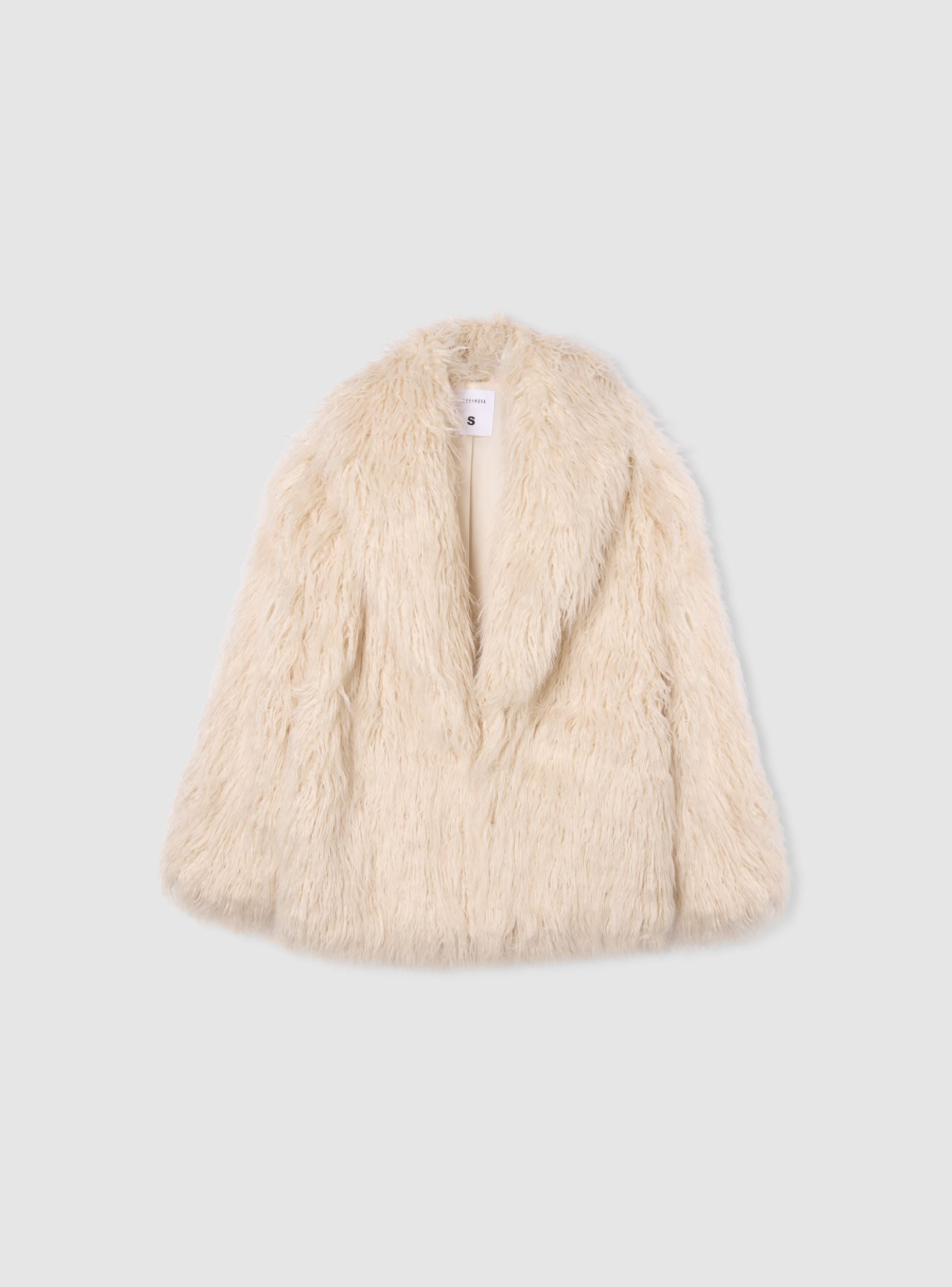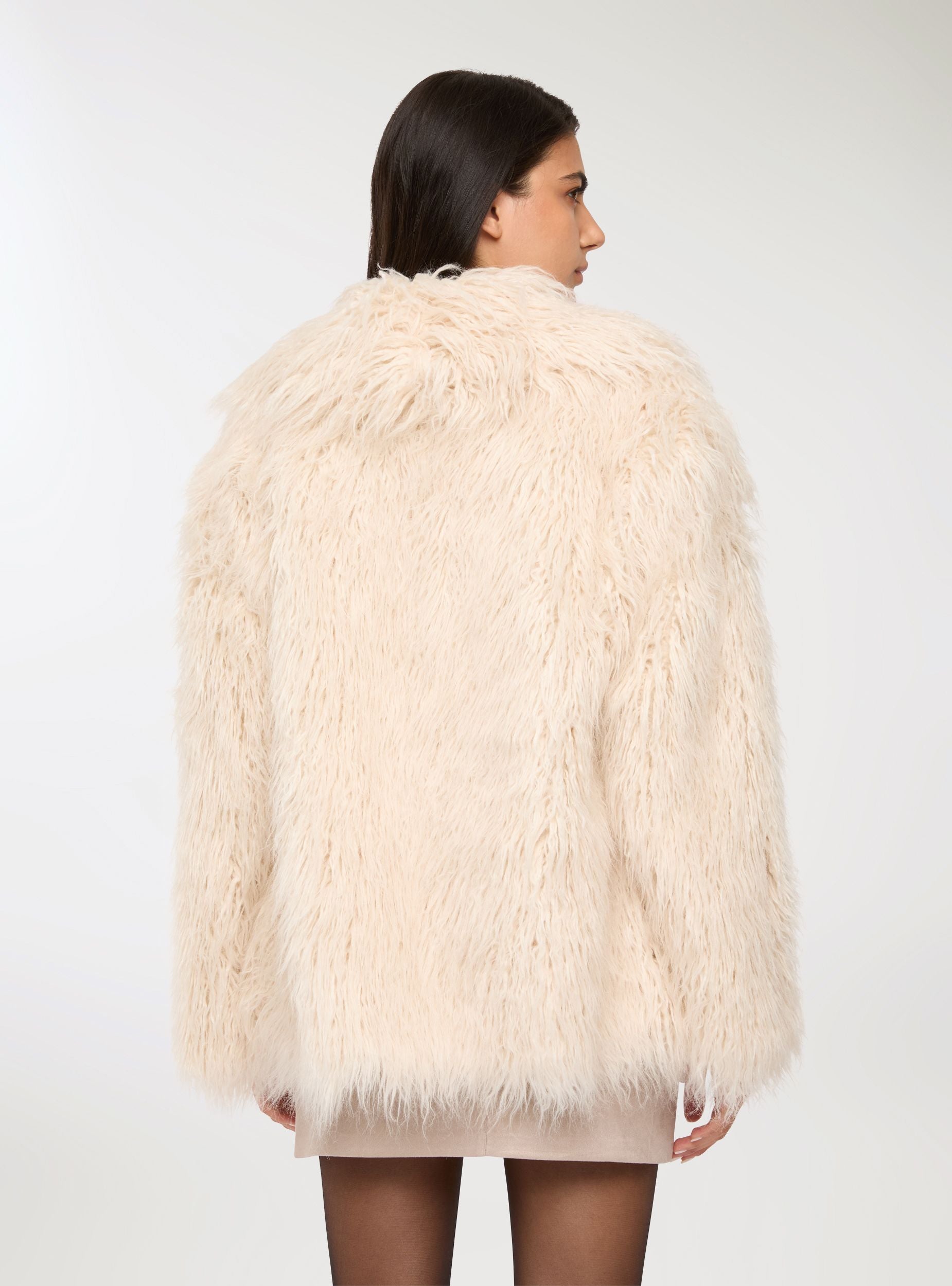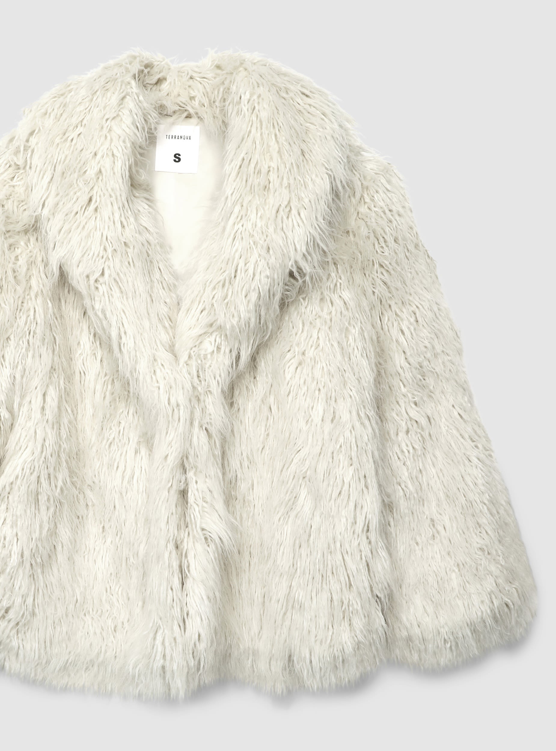 Cappotto da donna in similpelliccia, ideale per un look sofisticato e moderno. Presenta una vestibilità regolare, perfetto per completare outfit eleganti o casual. La chiusura frontale con gancio e il design tinta unita lo rendono versatile e adatto a diverse occasioni. Un capo che unisce stile e comfort, perfetto per affrontare le giornate più fredde con eleganza.Dettagli