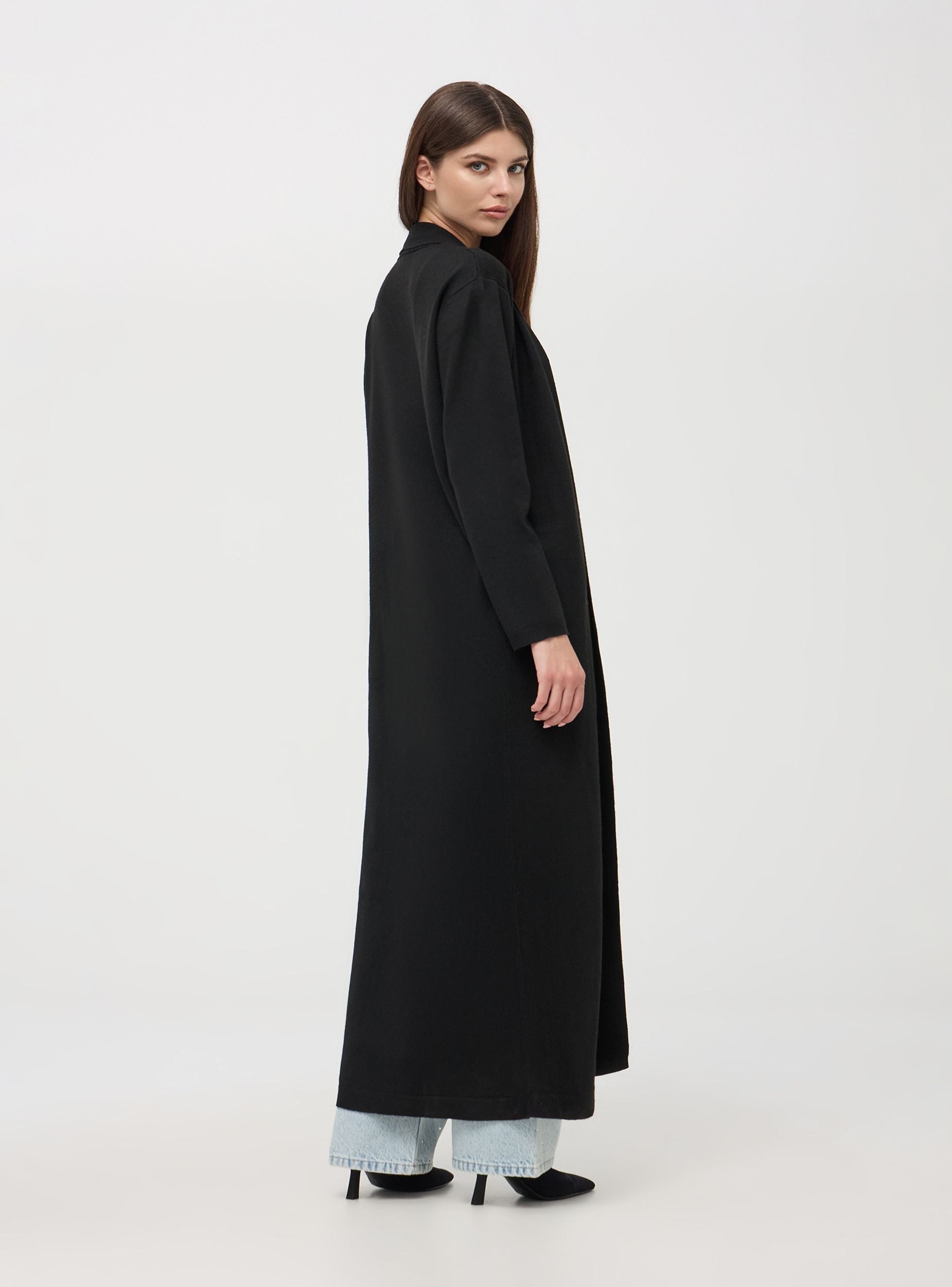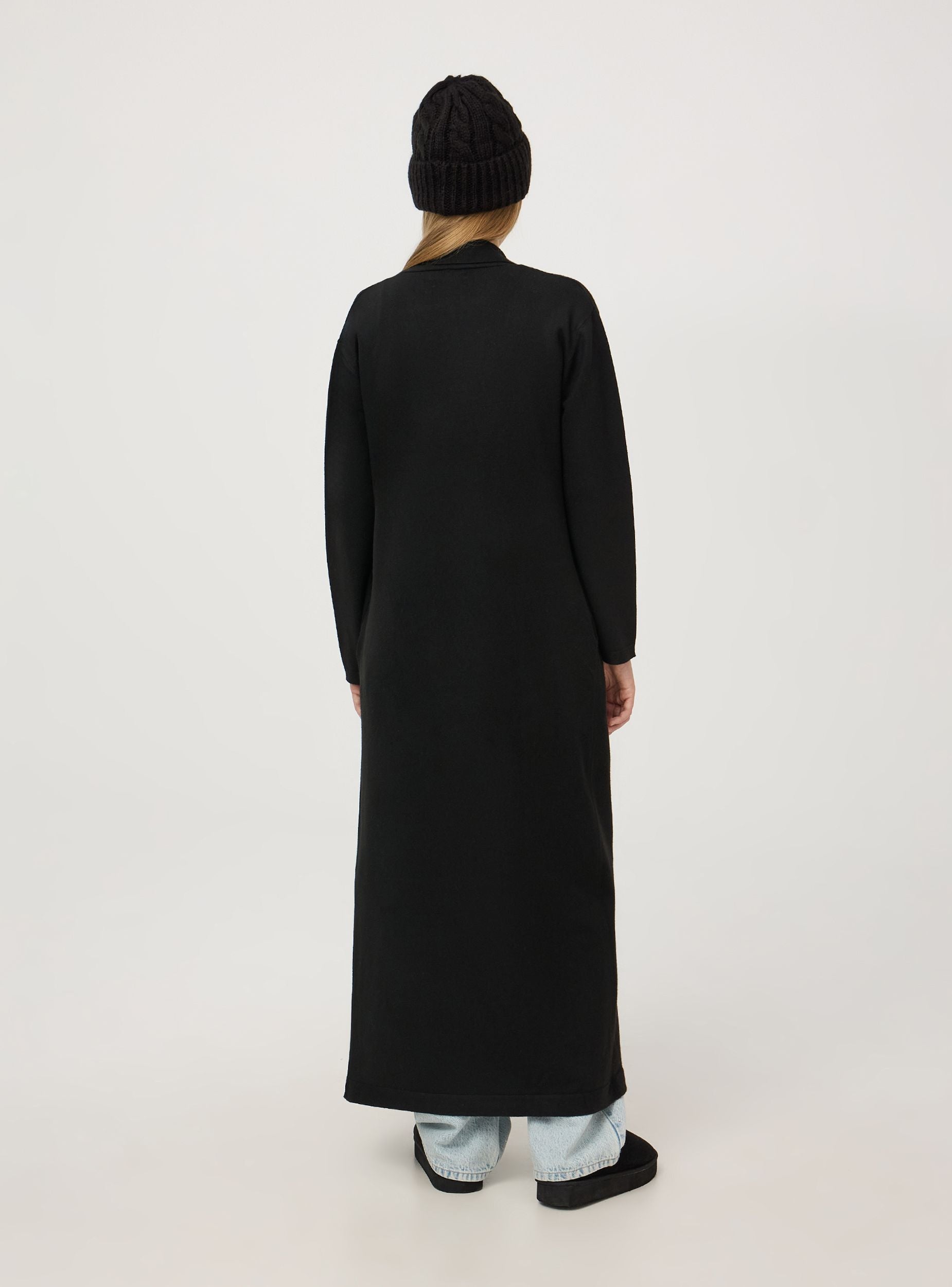 Cardigan lungo aperto da donna a tinta unita. Offre calore e comfort senza appesantire. Capo estremamente versatile, facile da abbinare a qualsiasi outfit. Il design minimalista senza bottoni o zip, con cuciture pulite e lineari, dona un look elegante e senza tempo. La vestibilità morbida e rilassata lo rende ideale per contesti casual o smart.Dettagli