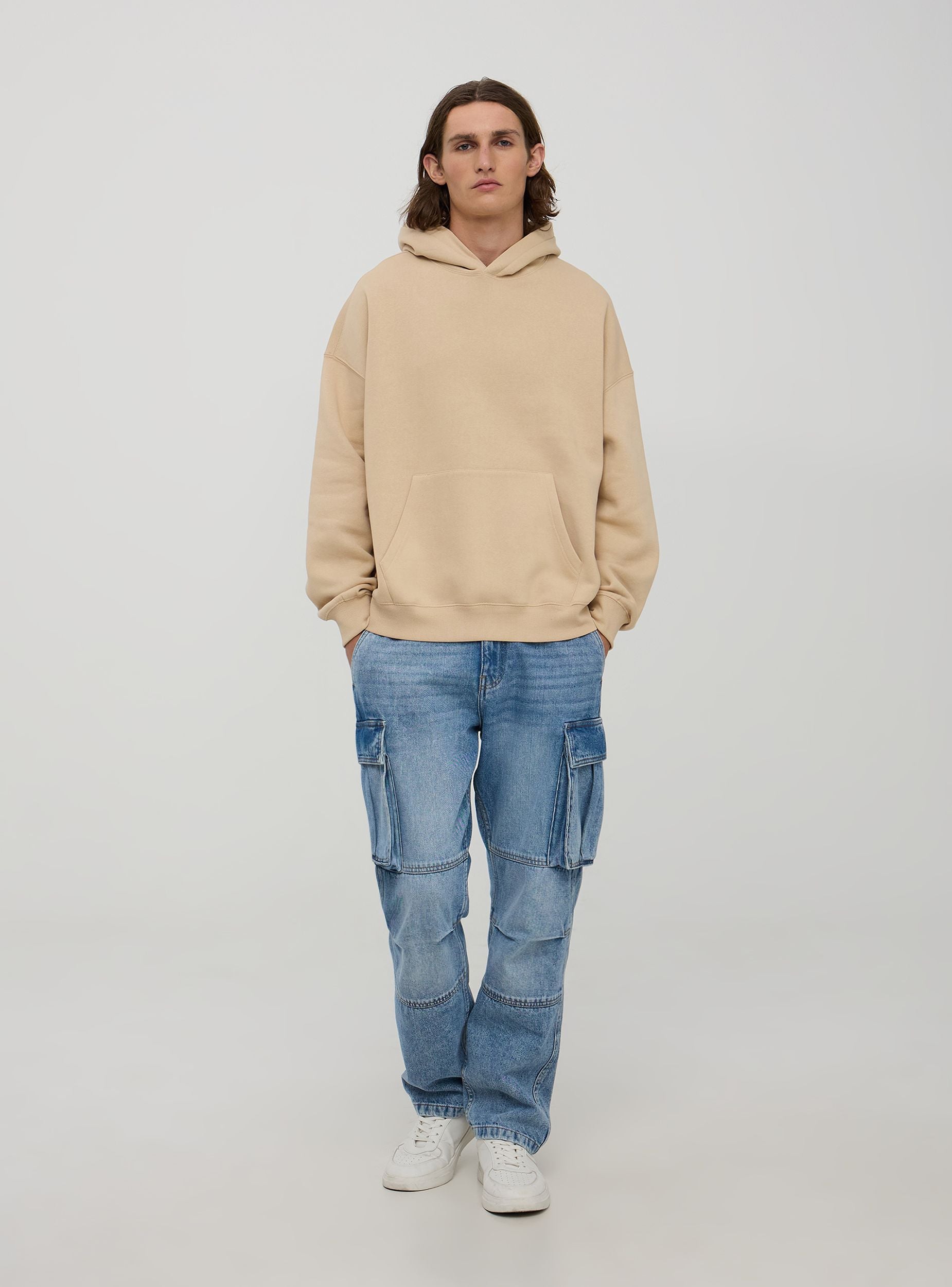 Felpa da uomo boxy fit, modello chiuso con cappuccio e tasca a marsupio anteriore, realizzata in tessuto pesante morbido e confortevole a tinta unita. Dotata di polsini e orlo a costine per una vestibilità comoda. Il design ampio garantisce libertà di movimento e un look moderno. Capo basic ideale per l'uso quotidiano. Questa felpa è perfetta per le giornate di relax o uscite informali. Si abbina facilmente a jeans o pantaloni sportivi, offrendo uno stile casual e pratico per ogni occasione.