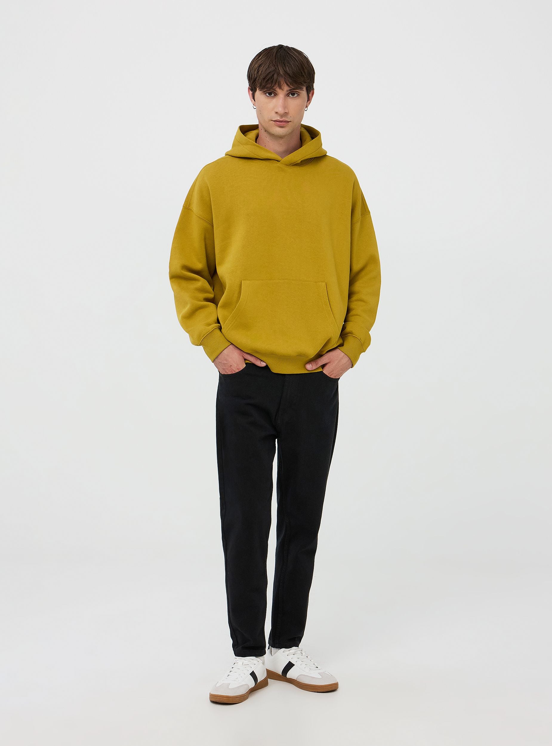 Felpa da uomo boxy fit, modello chiuso con cappuccio e tasca a marsupio anteriore, realizzata in tessuto pesante morbido e confortevole a tinta unita. Dotata di polsini e orlo a costine per una vestibilità comoda. Il design ampio garantisce libertà di movimento e un look moderno. Capo basic ideale per l'uso quotidiano. Questa felpa è perfetta per le giornate di relax o uscite informali. Si abbina facilmente a jeans o pantaloni sportivi, offrendo uno stile casual e pratico per ogni occasione.