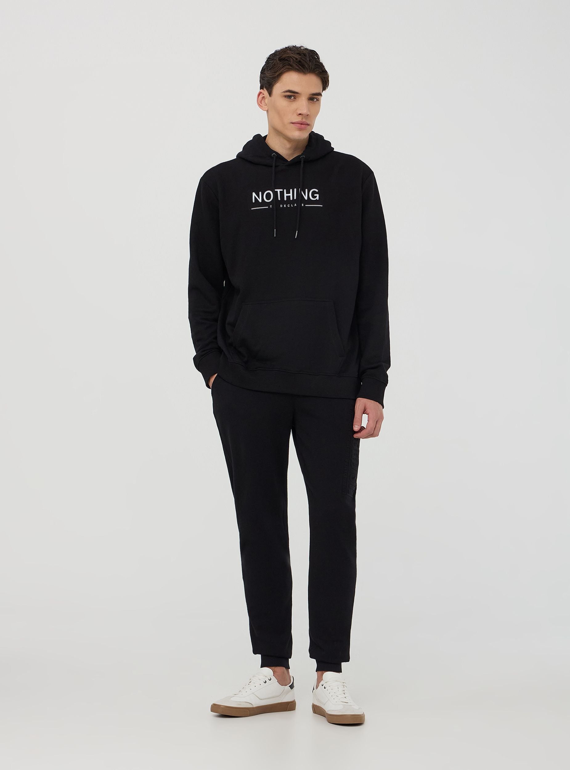 Felpa leggera da uomo a maniche lunghe, con cappuccio regolabile tramite coulisse e pratica tasca marsupio. La stampa frontale con scritta effetto 3D dona un tocco moderno e accattivante. Perfetta per outfit casual, si abbina facilmente a jeans e sneakers per il tempo libero o per un look rilassato e contemporaneo in ogni occasione informale.
