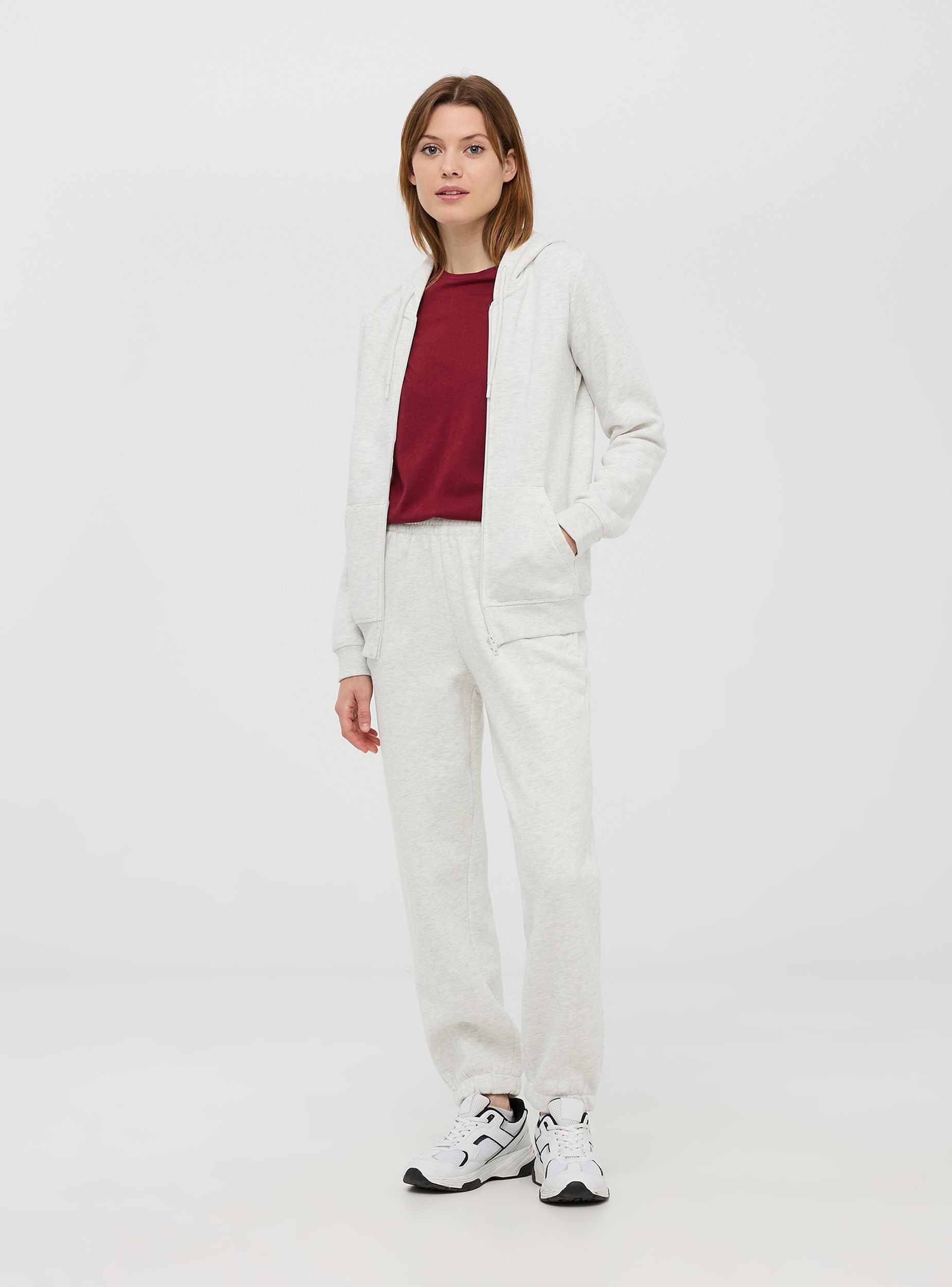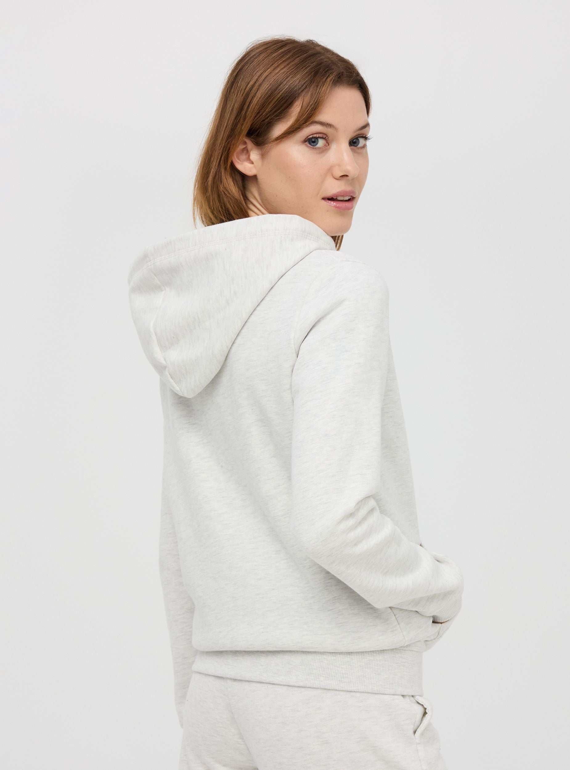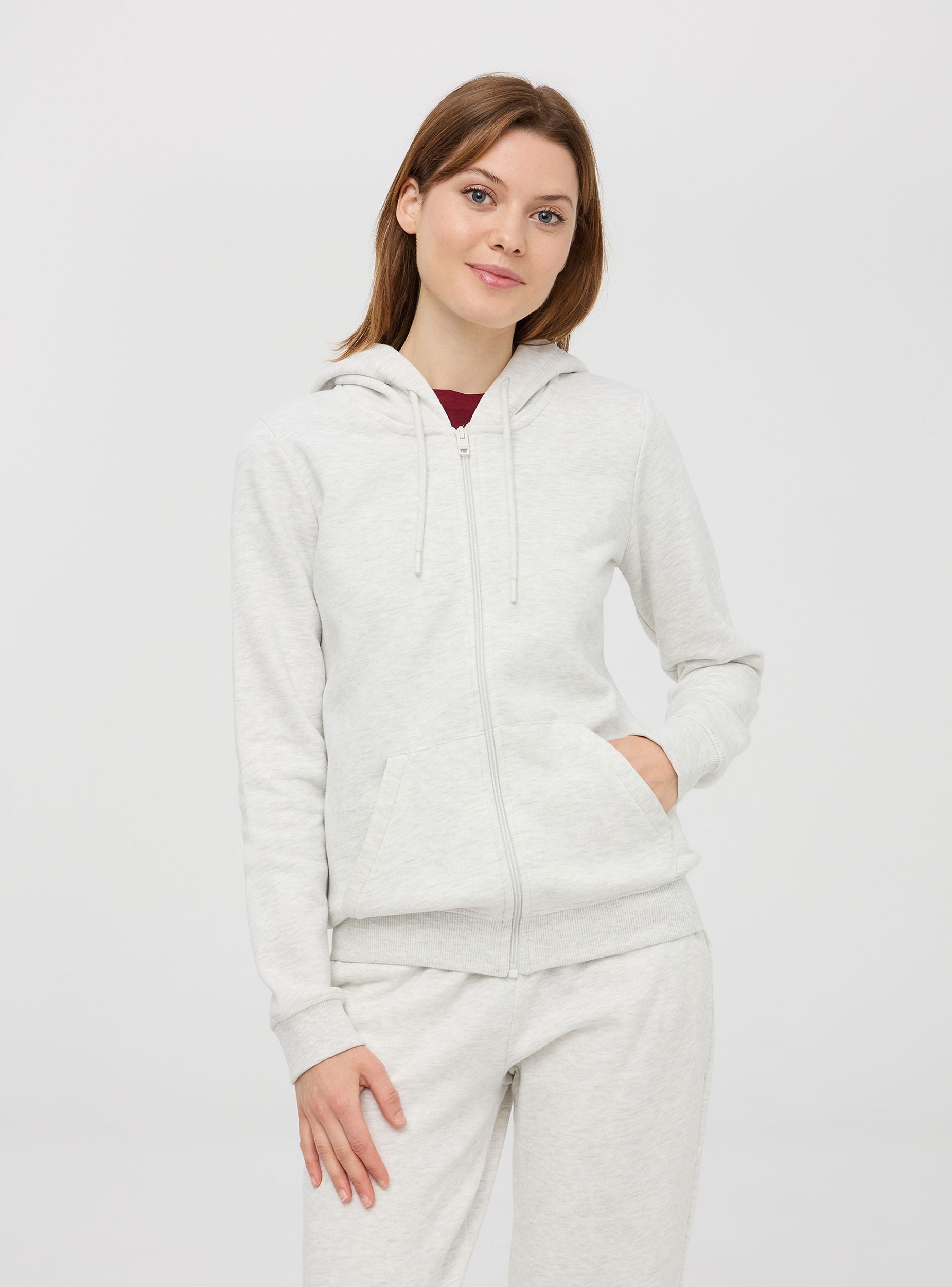 Felpa da donna con cappuccio e coulisse, chiusura con cerniera e tasche frontali a marsupio, in tessuto pesante a tinta unita. Capo basic indispensabile da avere nell'armadio, perfetto per look casual. Vestibilità regular.