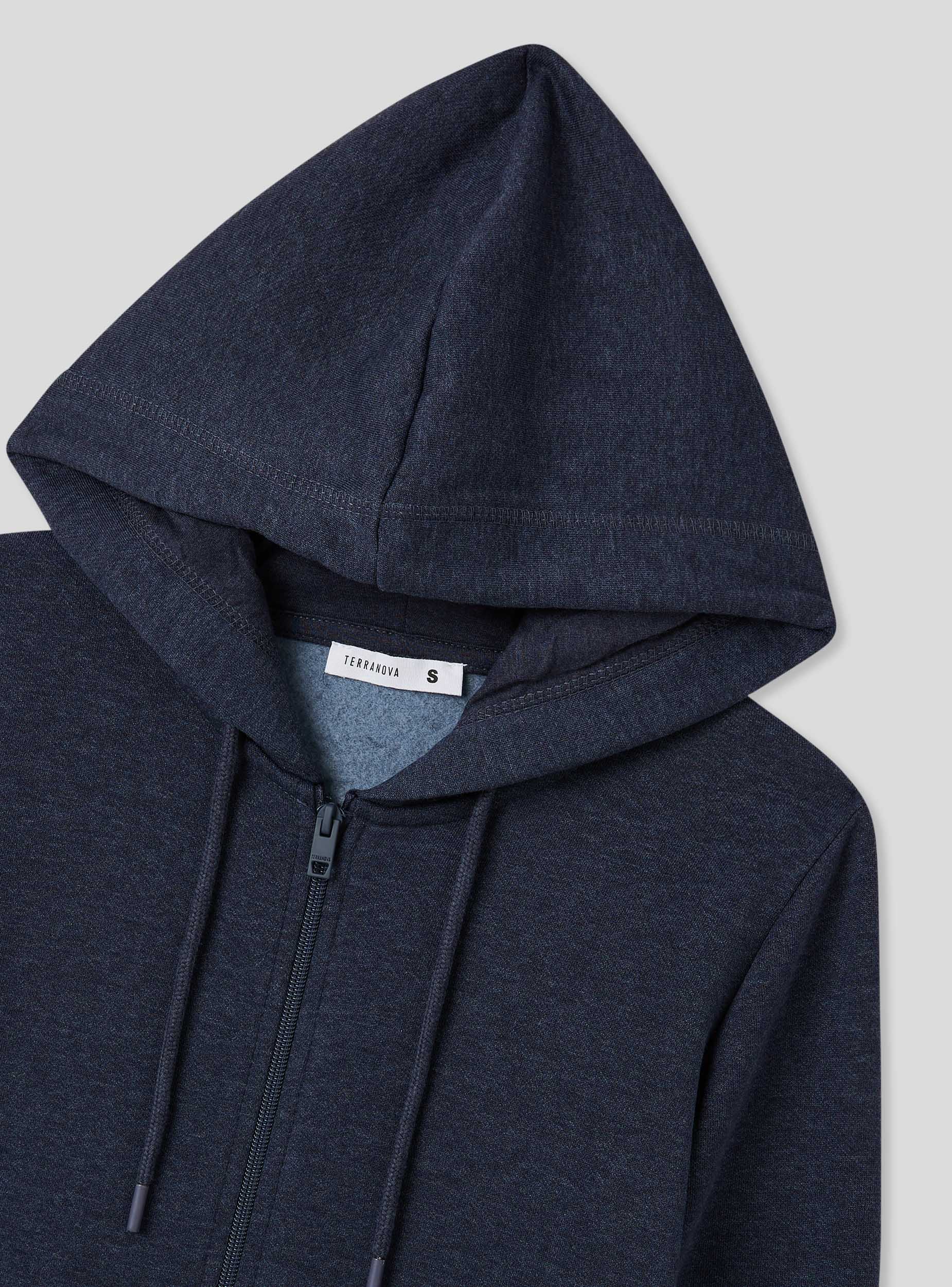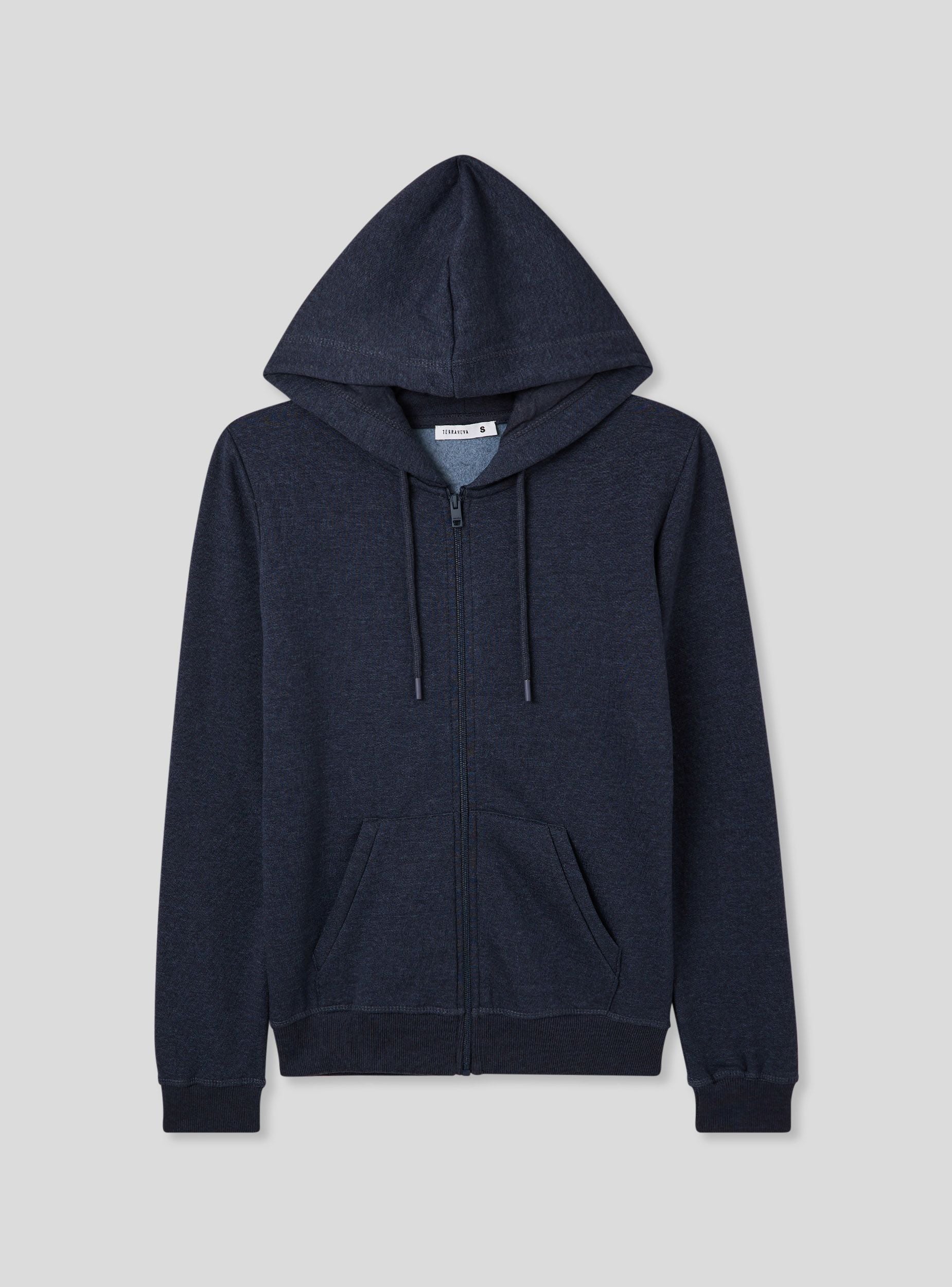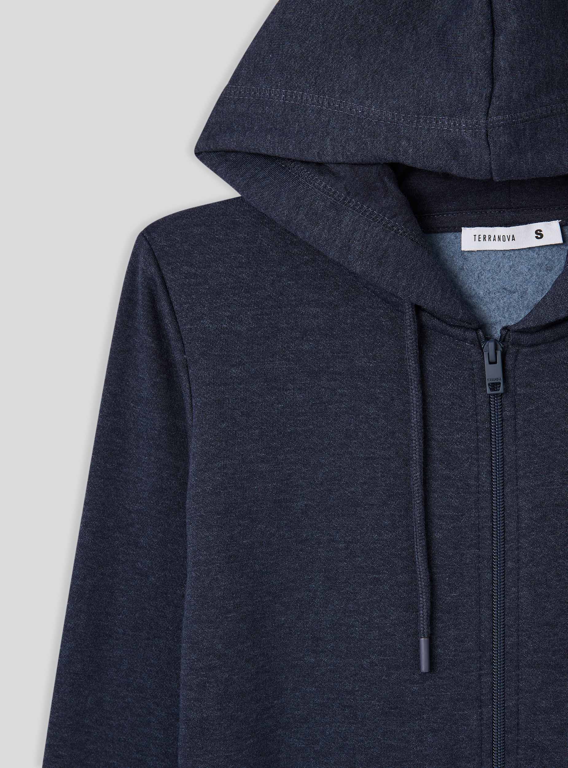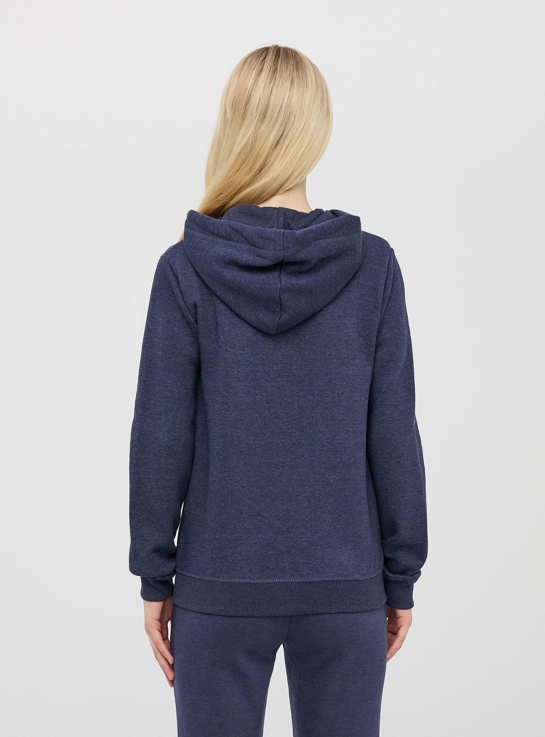Felpa da donna con cappuccio e coulisse, chiusura con cerniera e tasche frontali a marsupio, in tessuto pesante a tinta unita. Capo basic indispensabile da avere nell'armadio, perfetto per look casual. Vestibilità regular.