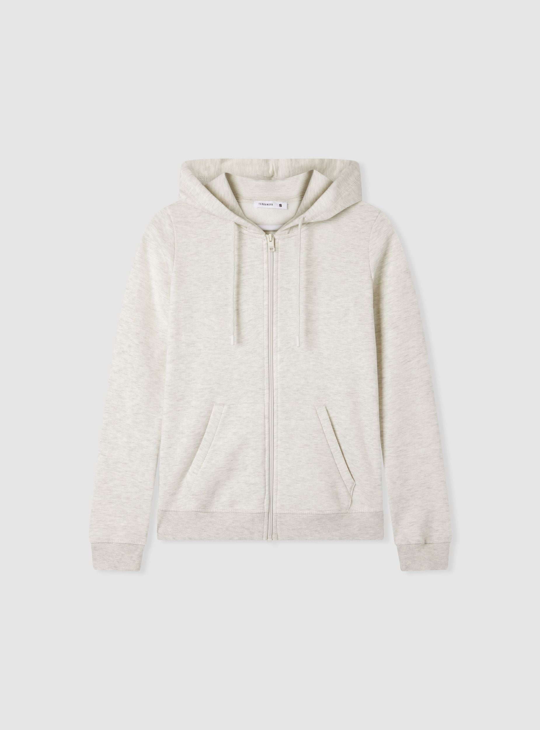 Felpa pesante tinta unita con cappuccio e zip