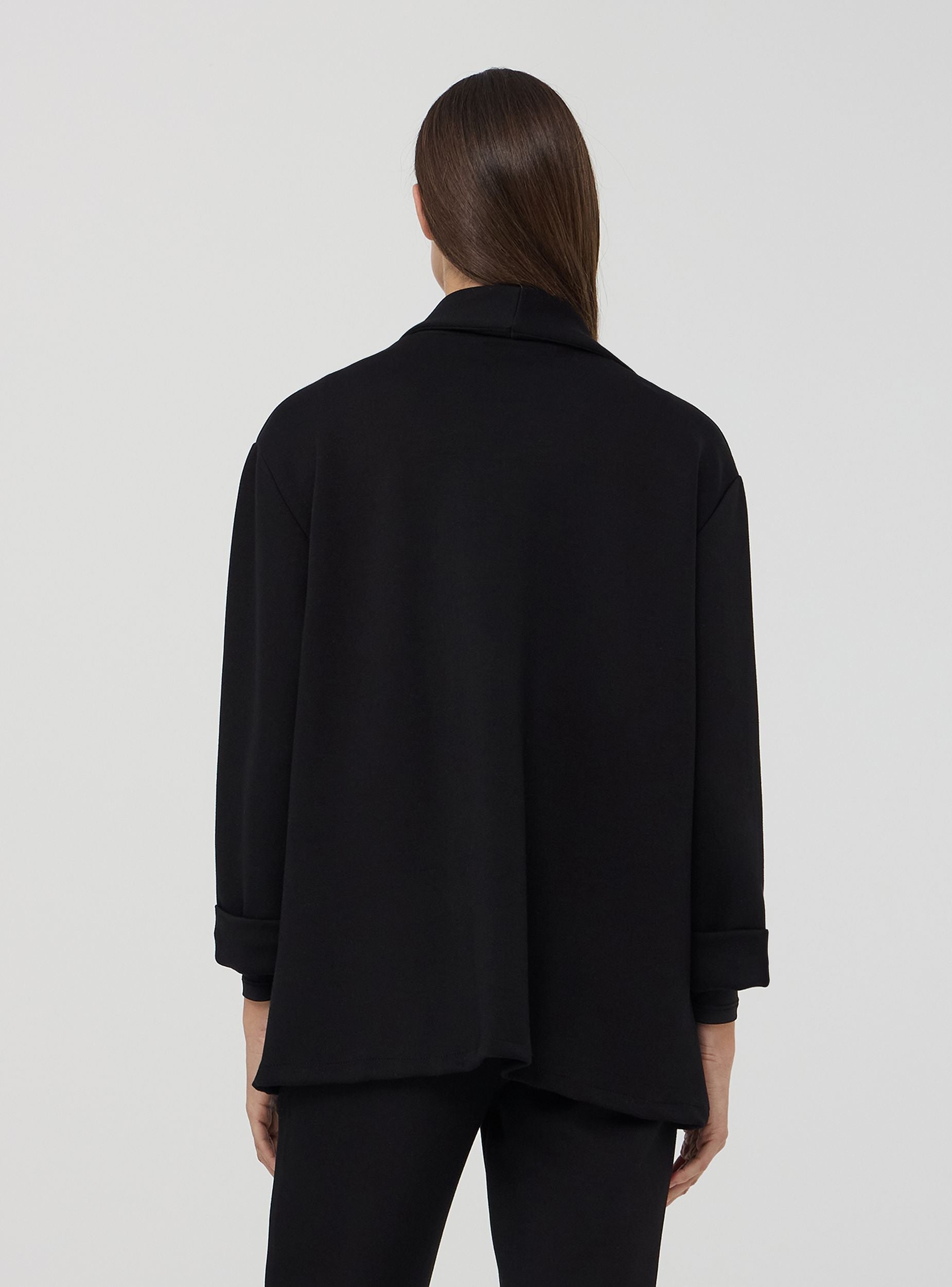 Giacca da donna dal design essenziale e versatile, realizzata in tessuto tecnico per garantire comfort e praticità. La tinta unita si adatta a diversi abbinamenti, mentre le maniche lunghe e le tasche applicate aggiungono funzionalità e stile. Perfetta per completare look casual o formali, offre un tocco di eleganza moderna a ogni outfit, ideale per ogni occasione.