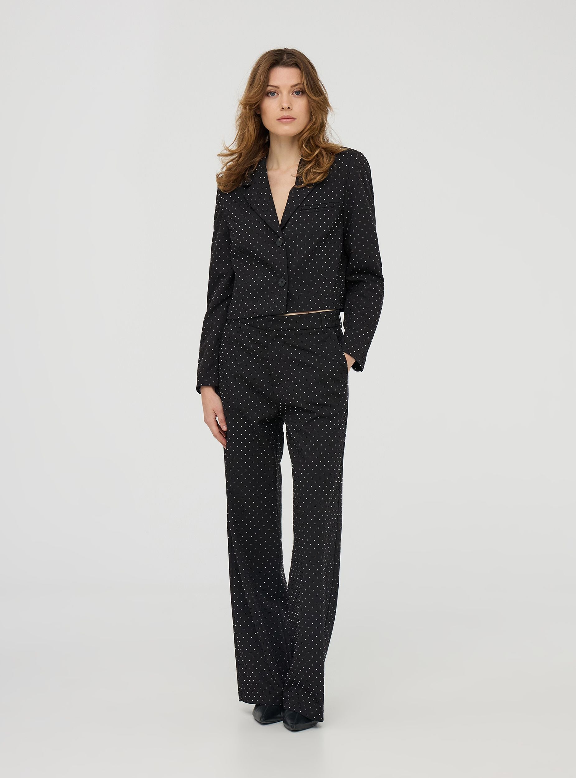 Fodera:100% Poliestere Tessuto Esterno:70% Poliestere 27% Viscosa 3% Elastan