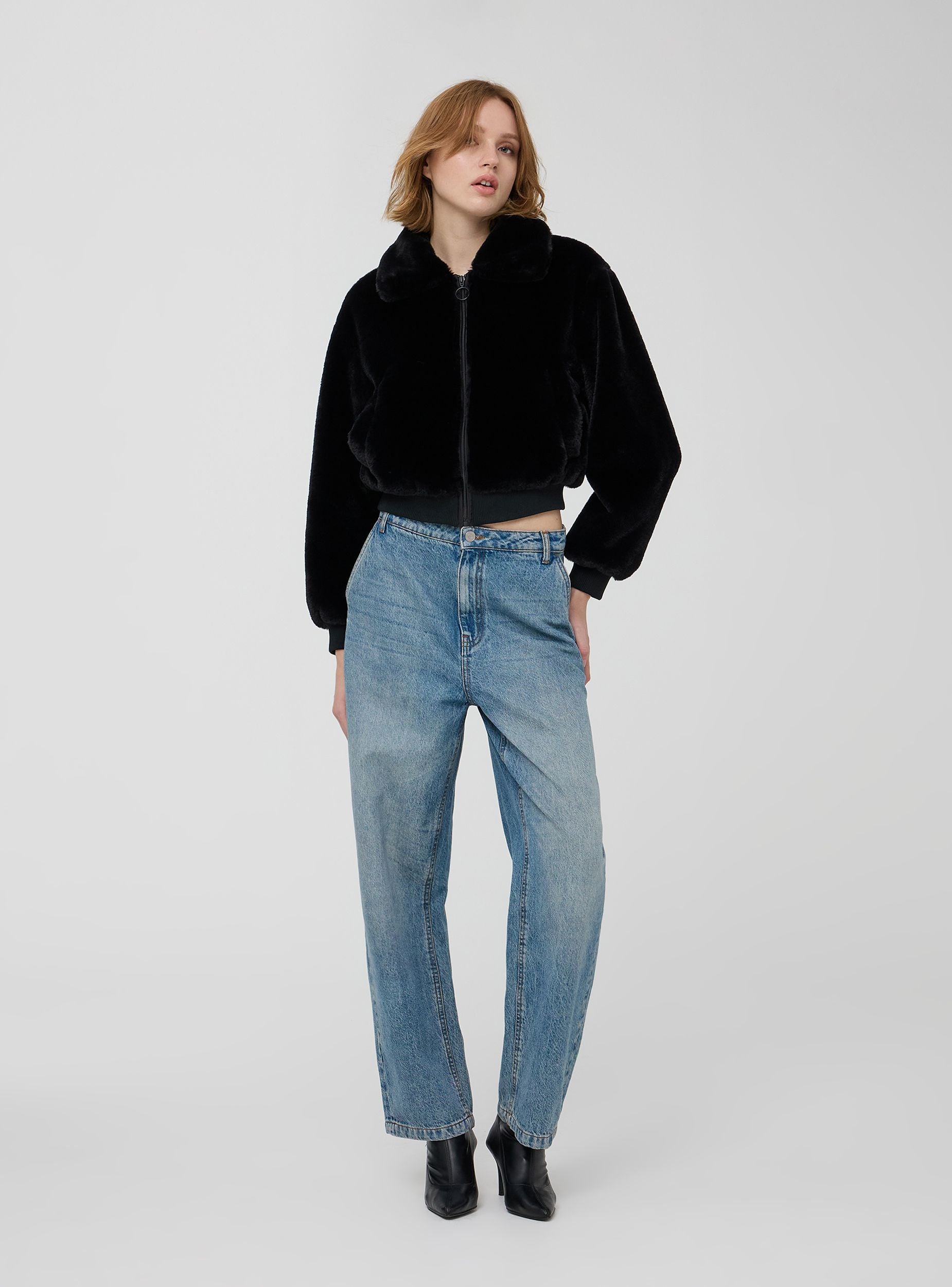 Questa giacca bomber da donna in pellicia sintetica è perfetta per l'inverno. Dotata di una chiusura con zip frontale, è caratterizzata da un fit comodo e alla moda. Le maniche ampie con polsini a coste assicurano una vestibilità comoda. Lo stile casual ma raffinato la rende adatta per eventi casual o serate eleganti. Un capo distintivo che non passerà inosservato.