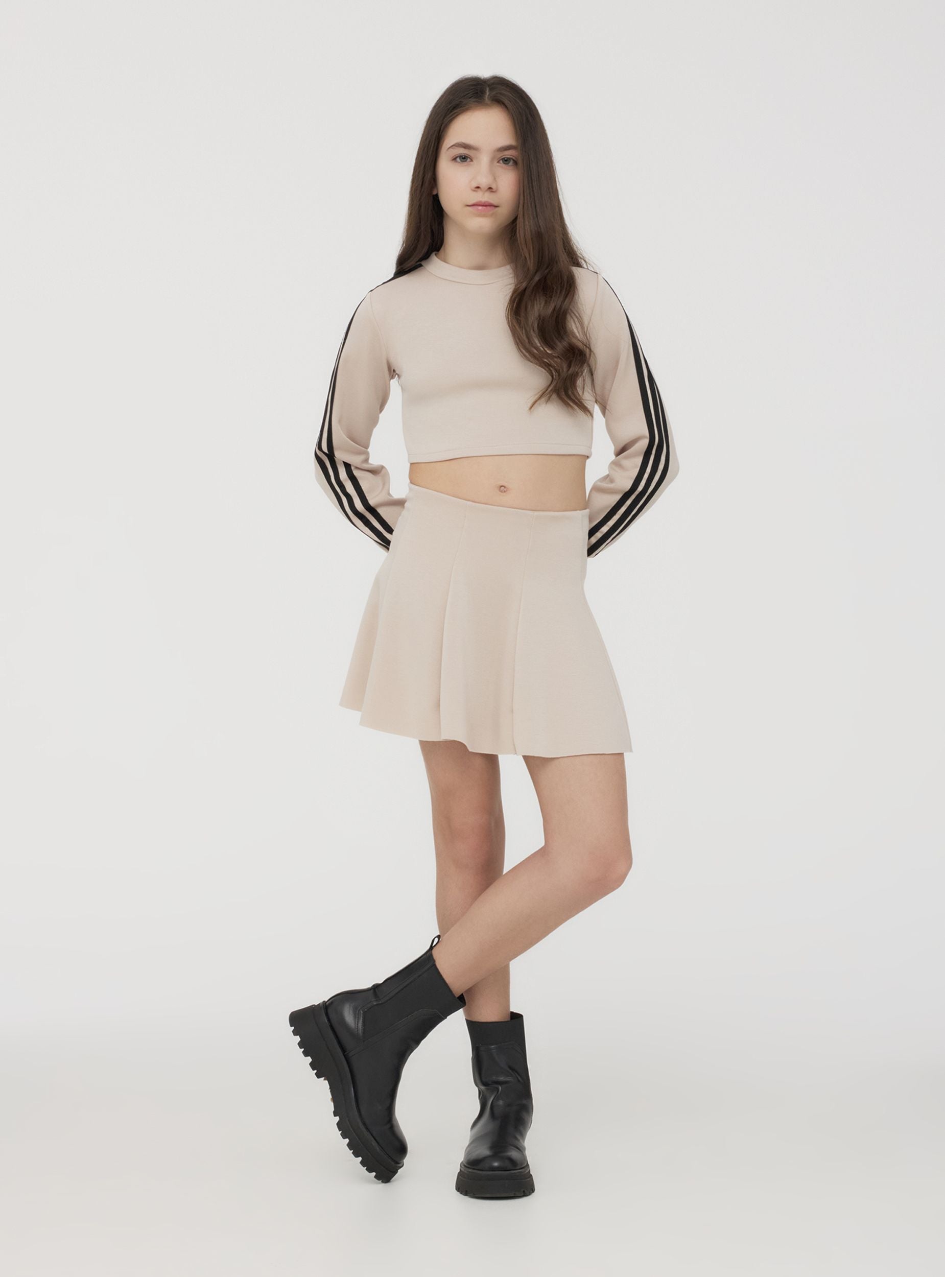 Gonna corta da bambina dallo stile raffinato e versatile, perfetta per ogni occasione. Il design a tinta unita la rende facile da abbinare, mentre il tessuto elasticizzato garantisce comfort e libertà di movimento. Le pieghe donano un tocco elegante e dinamico. Ideale con una blusa e ballerine per un look formale, oppure con una t-shirt e sneakers per un outfit più casual e comodo.