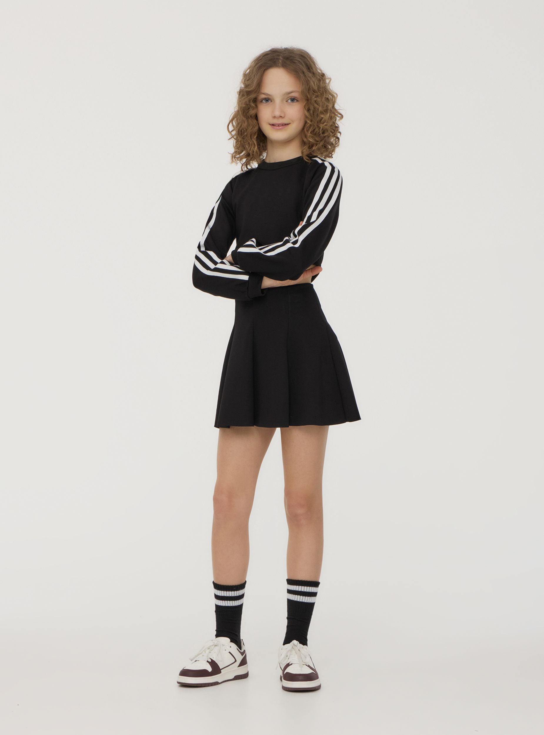 Gonna corta da bambina dallo stile raffinato e versatile, perfetta per ogni occasione. Il design a tinta unita la rende facile da abbinare, mentre il tessuto elasticizzato garantisce comfort e libertà di movimento. Le pieghe donano un tocco elegante e dinamico. Ideale con una blusa e ballerine per un look formale, oppure con una t-shirt e sneakers per un outfit più casual e comodo.Dettagli