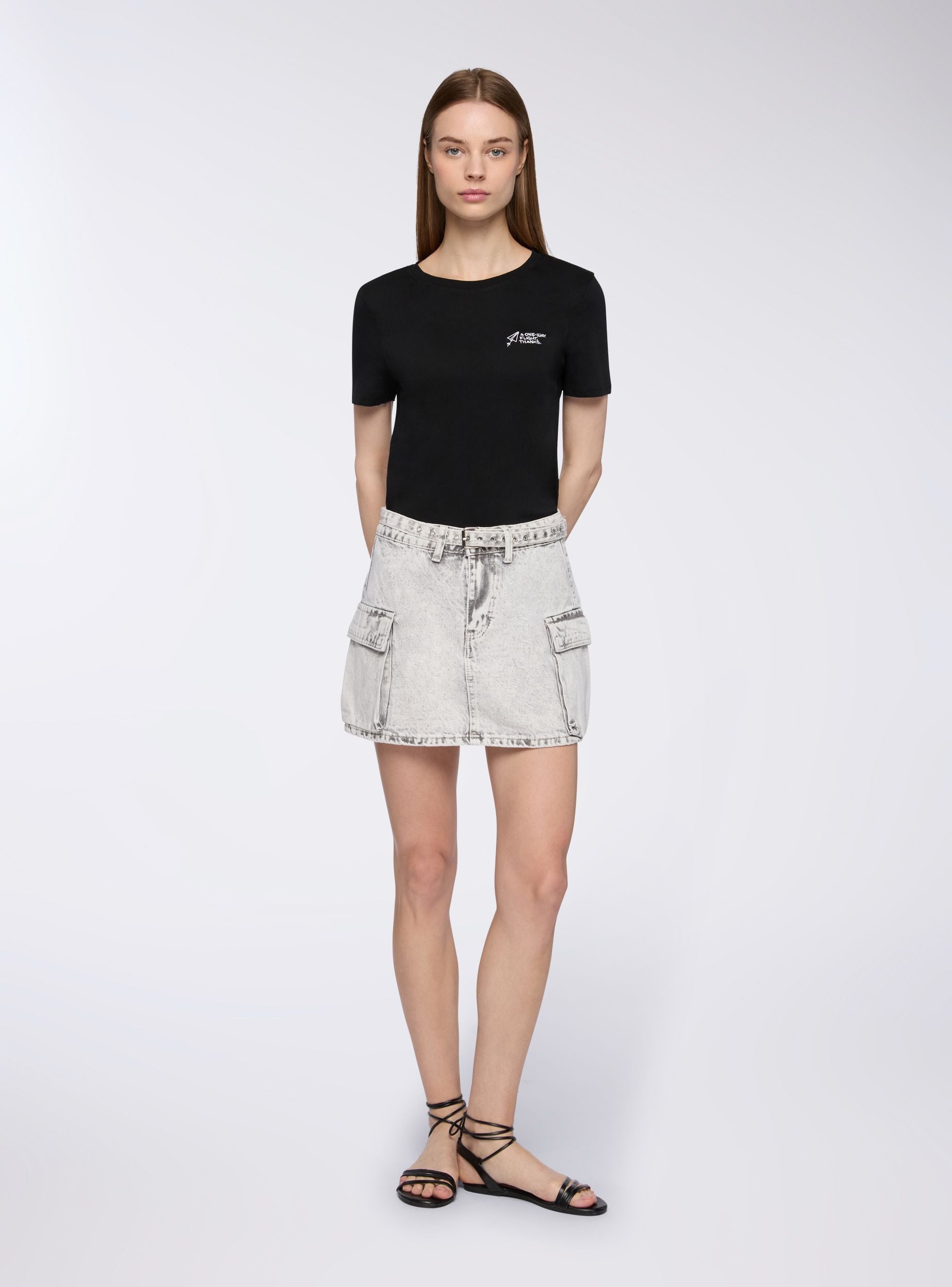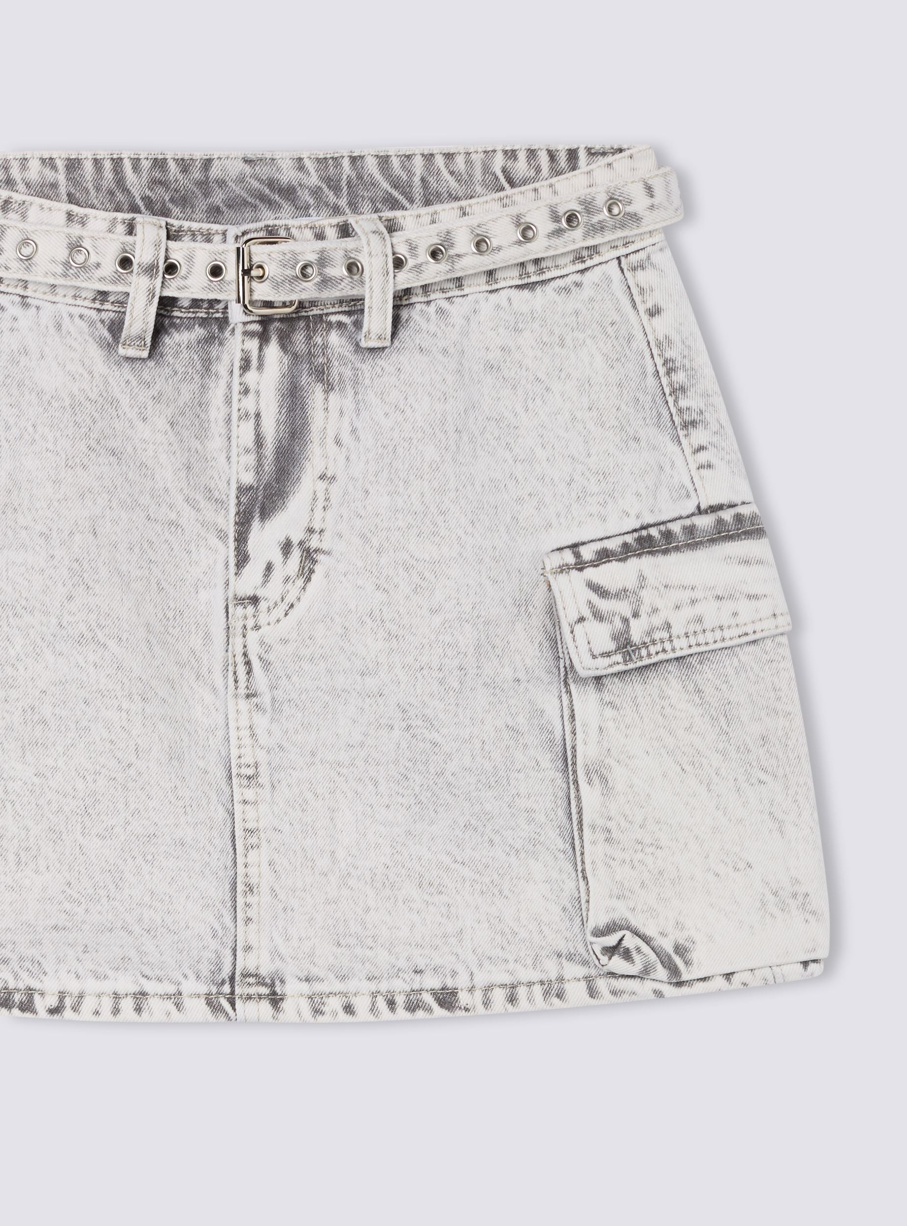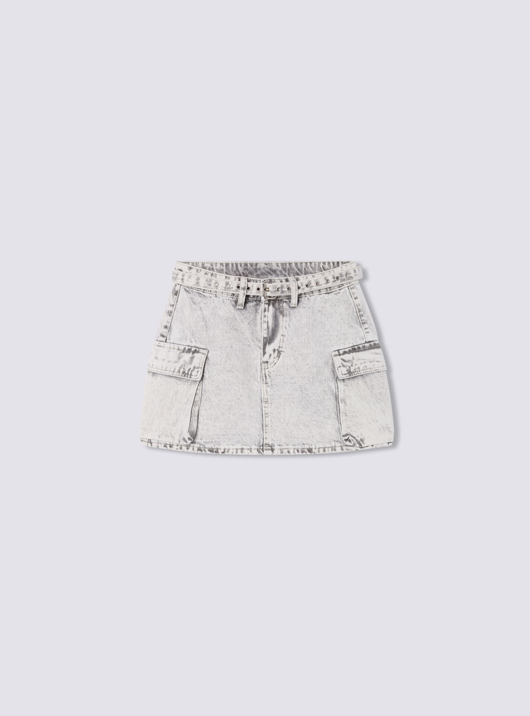 Gonna da donna con tasche applicate, ideale per un look casual e versatile. Presenta una cintura in denim in tono con fibbia per una vestibilità regolabile e tasche laterali che aggiungono un tocco pratico e moderno. Perfetta per abbinamenti con magliette o camicie per un outfit quotidiano.