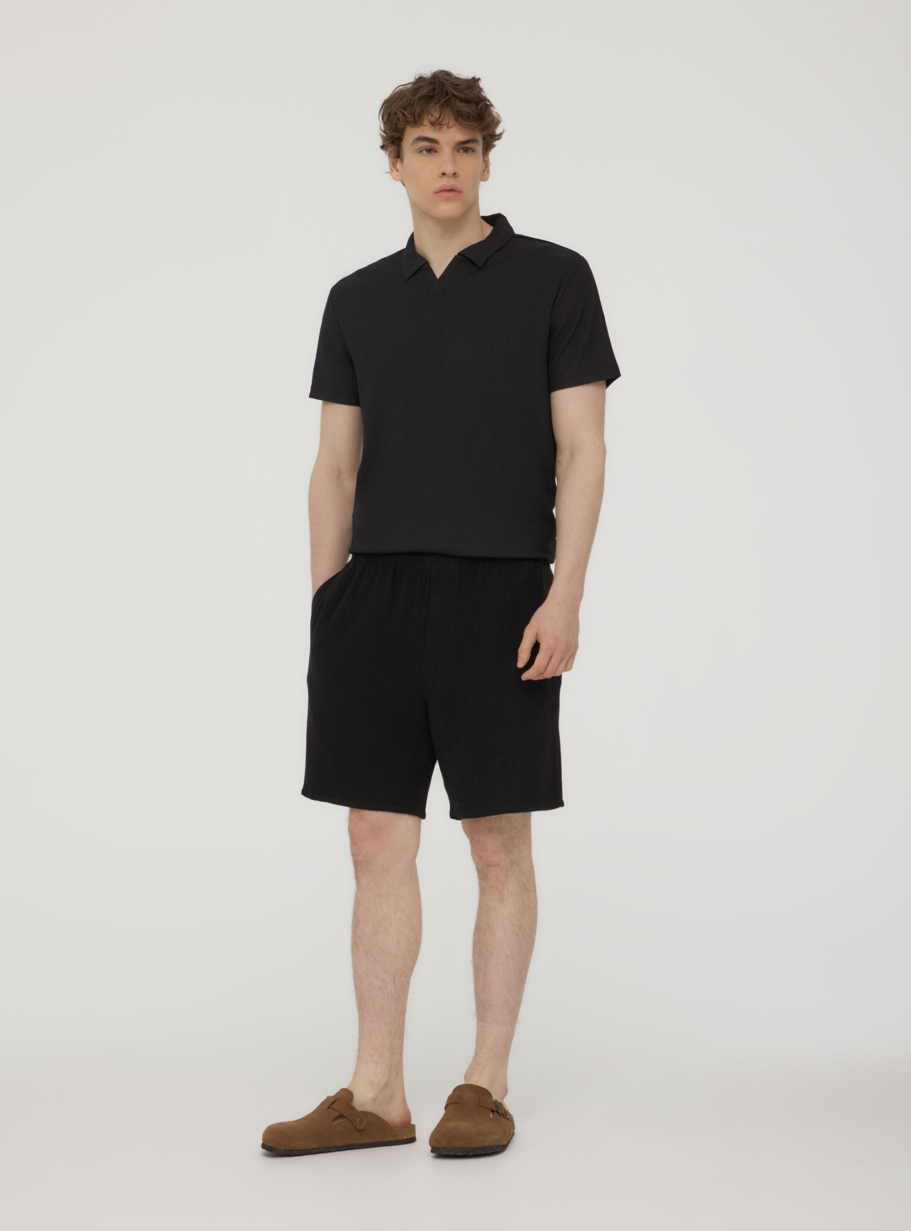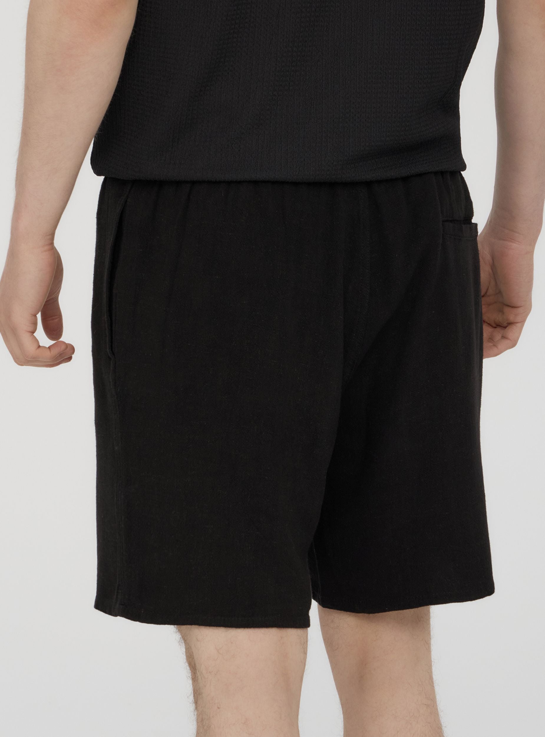 Pantaloncini da uomo, modello jogger in misto lino a tinta unita. Chiusura con coulisse in vita, ideali per il tempo libero, attività sportive o momenti di relax. Il design essenziale li rende facili da abbinare a t-shirt, canotte o felpe per uno stile casual e versatile. Pratici e comodi grazie alle tasche laterali, sono perfetti per la stagione calda.