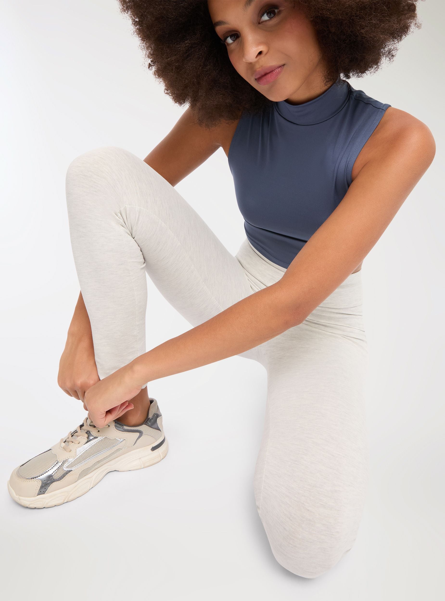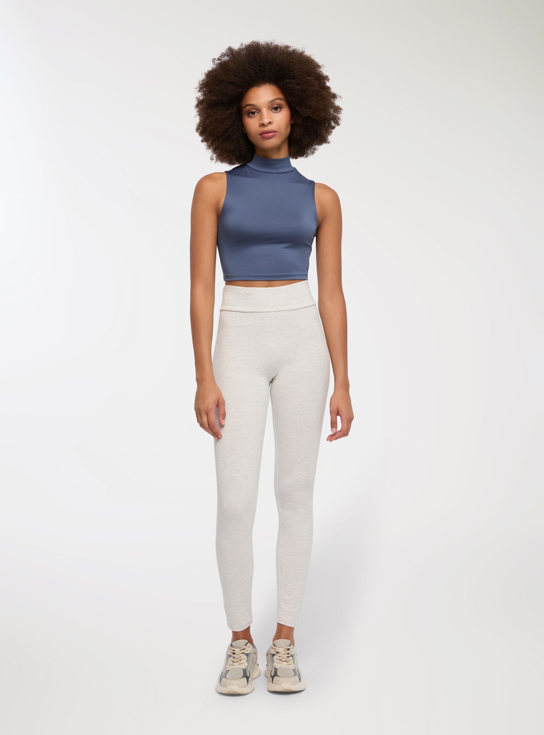 Leggings da donna ideali per un look versatile e confortevole. Il modello a vita alta offre una vestibilità aderente che valorizza la silhouette, perfetto per abbinamenti con maglie oversize, felpe o top corti. La linea essenziale senza tasche e il tessuto pesante a tinta unita li rendono adatti sia per il tempo libero che per momenti di relax, garantendo praticità e libertà di movimento.