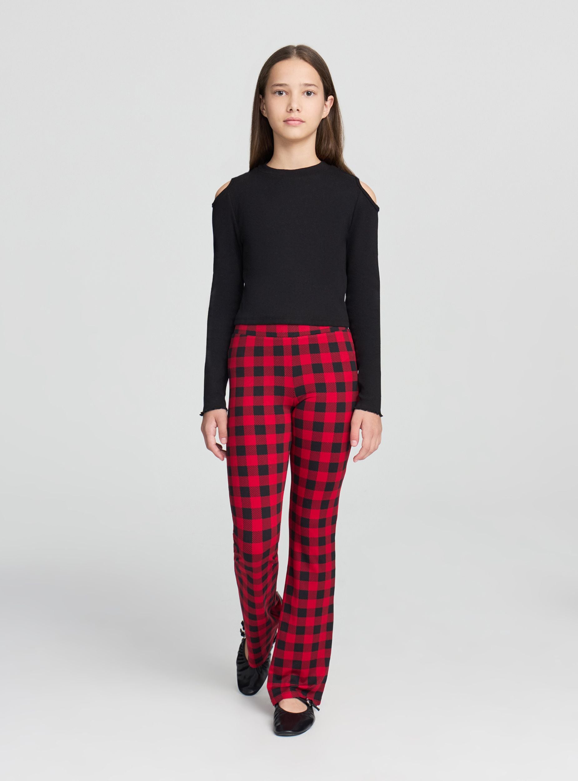 Tessuto extra caldo. Leggings da bambina a zampa, ideali per un look casual e alla moda. La vestibilità regolare garantisce comfort durante tutta la giornata. Perfetti da abbinare a magliette o felpe per un outfit pratico e versatile. Il design a quadri aggiunge un tocco di stile unico, rendendoli adatti per diverse occasioni informali.