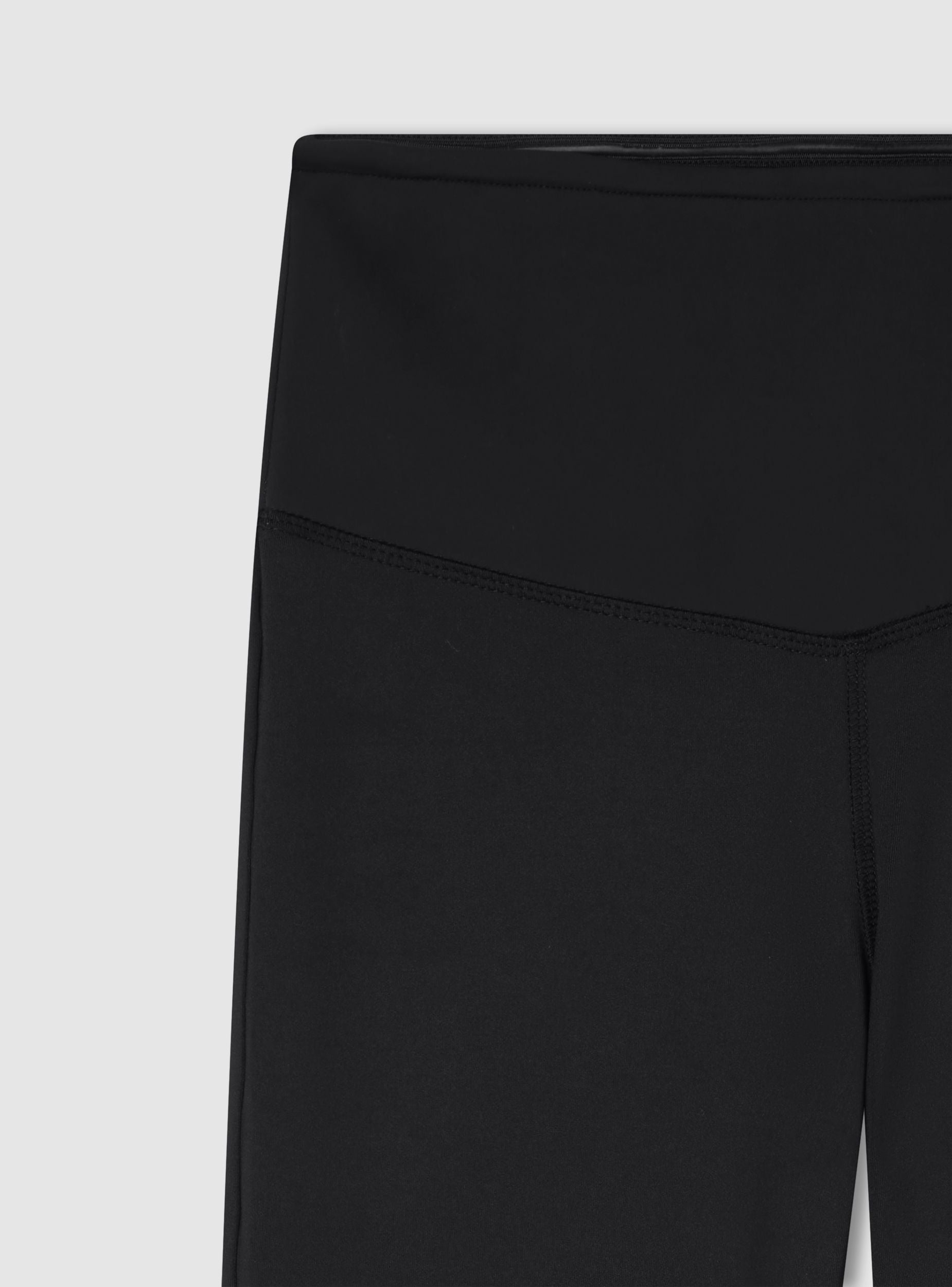 Leggings sportivi da donna con design a zampa, ideali per un look sportivo e casual. Presentano una vestibilità aderente che valorizza la silhouette, con vita alta per un maggiore comfort e supporto. Modellanti e senza cuciture. Perfetti per essere abbinati a magliette oversize o crop top per un outfit moderno e dinamico. Adatti per attività sportive o per il tempo libero. Linea Active.