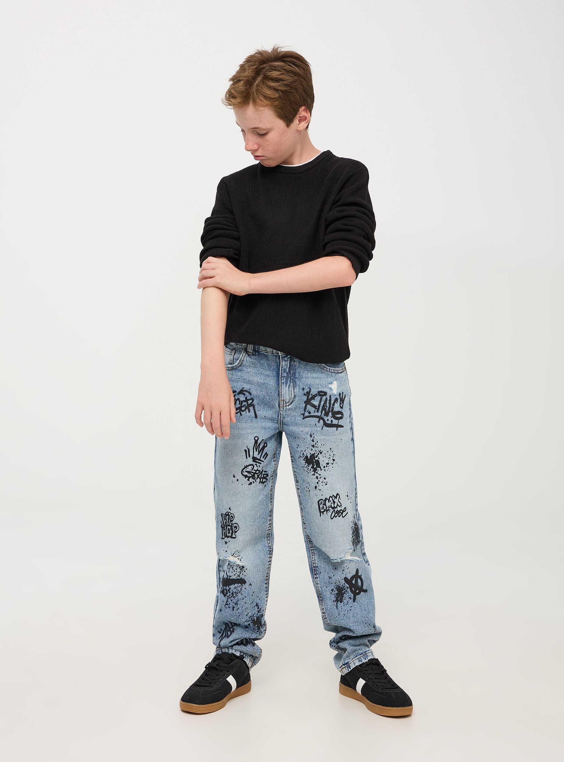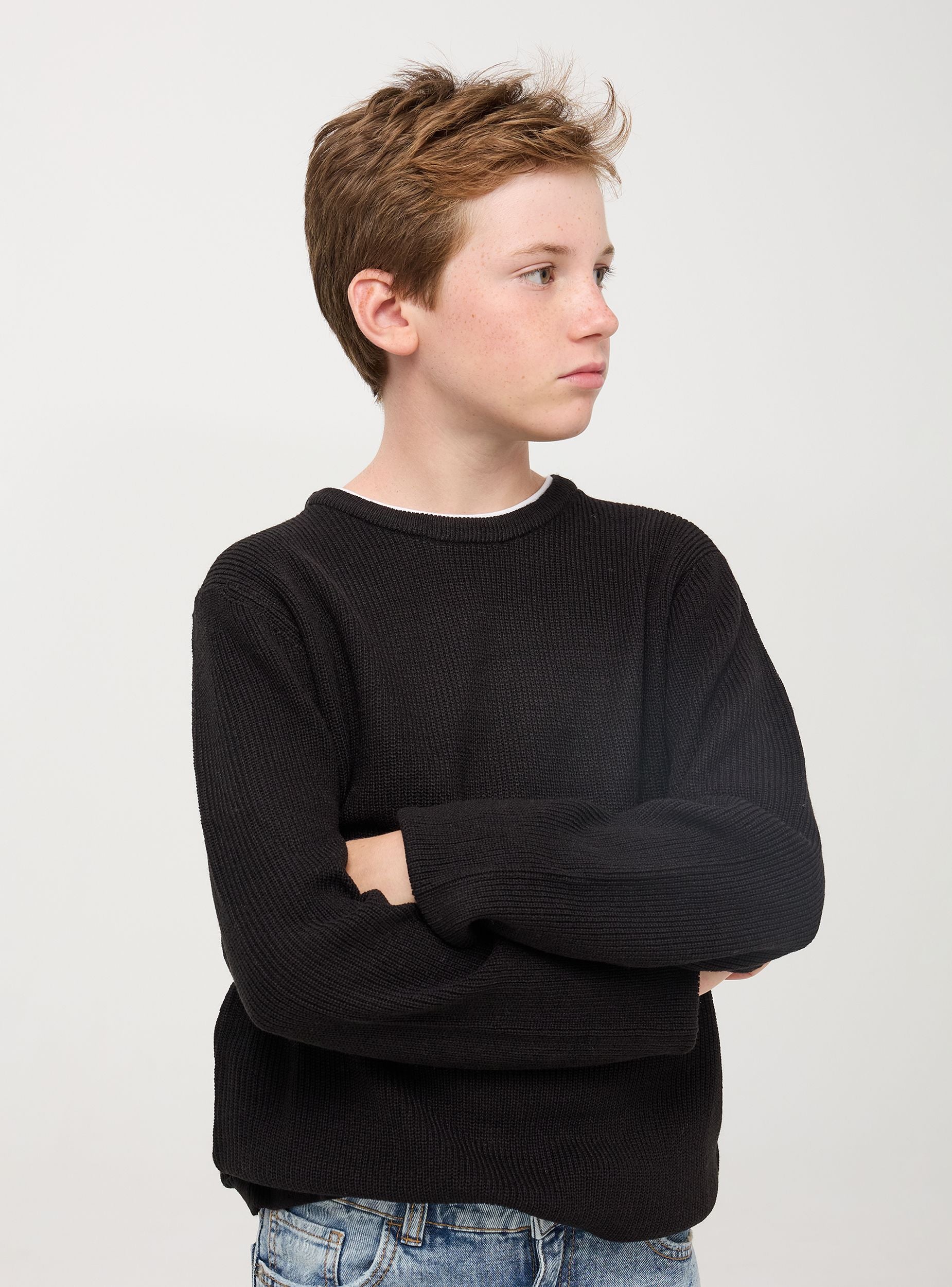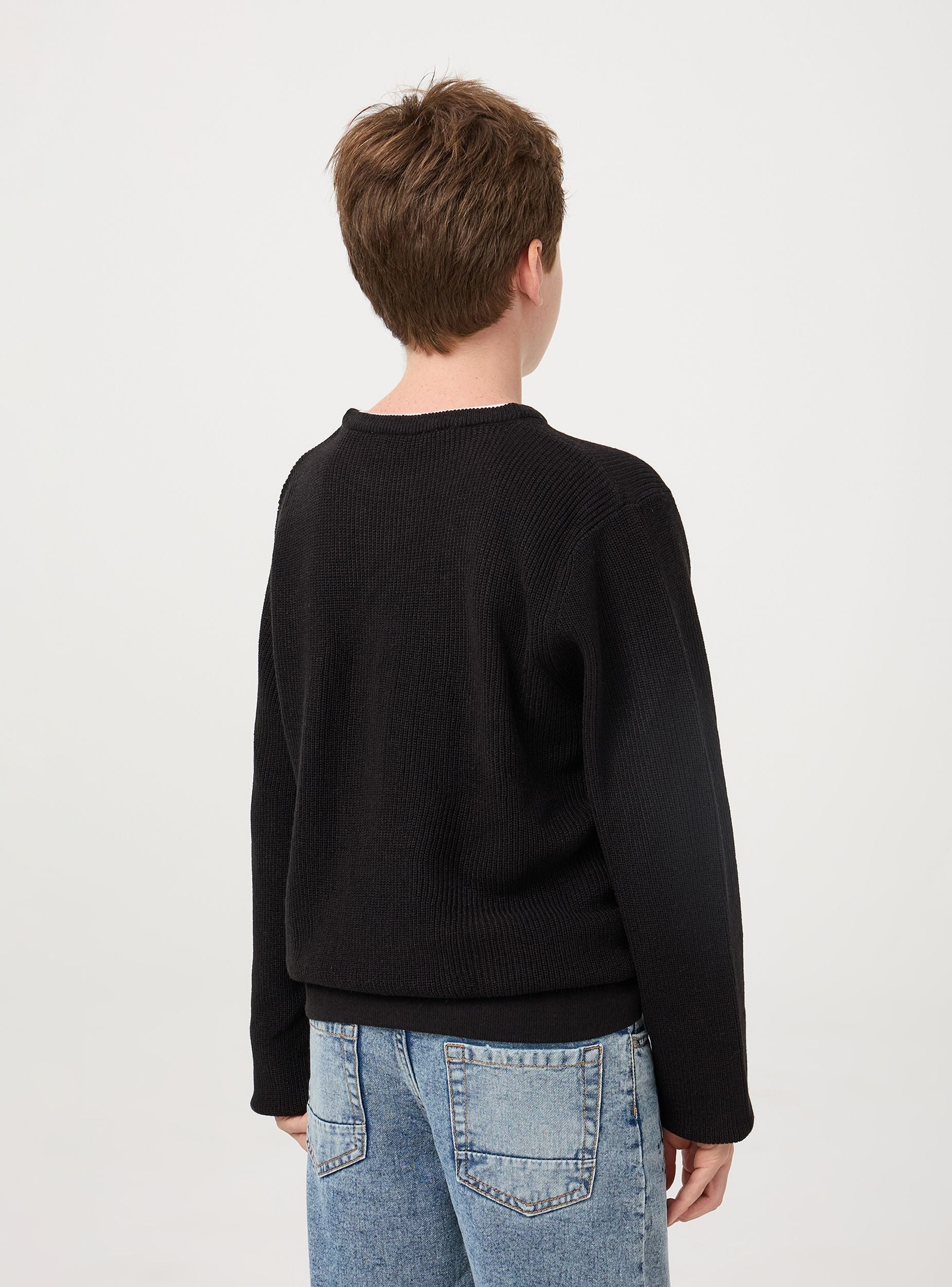 Maglia da bambino caratterizzata da una lavorazione a trama fine. Il dettaglio distintivo è il collo rotondo a contrasto in bianco che aggiunge un tocco di originalità. La vestibilità è comoda e regolare, adatta a un look casual ma curato. Le maniche lunghe e le cuciture raffinate assicurano durata e comfort. Ideale per occasioni casual, si abbina perfettamente con jeans o pantaloni.