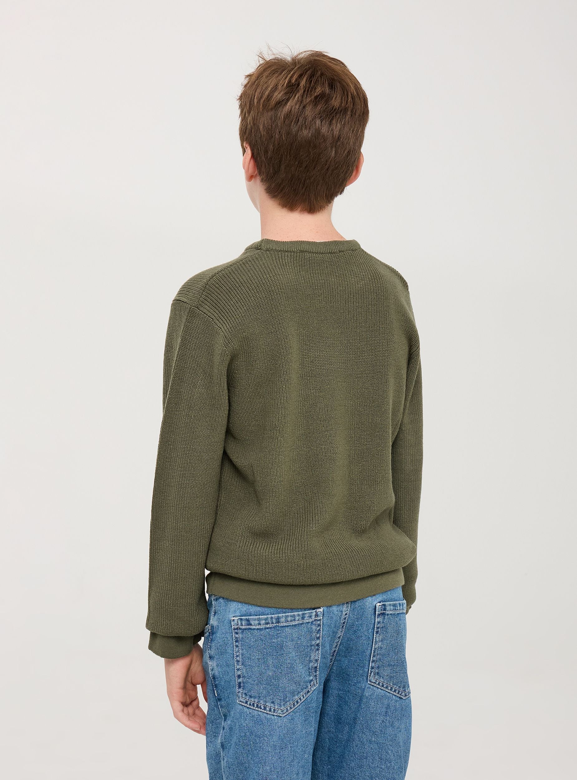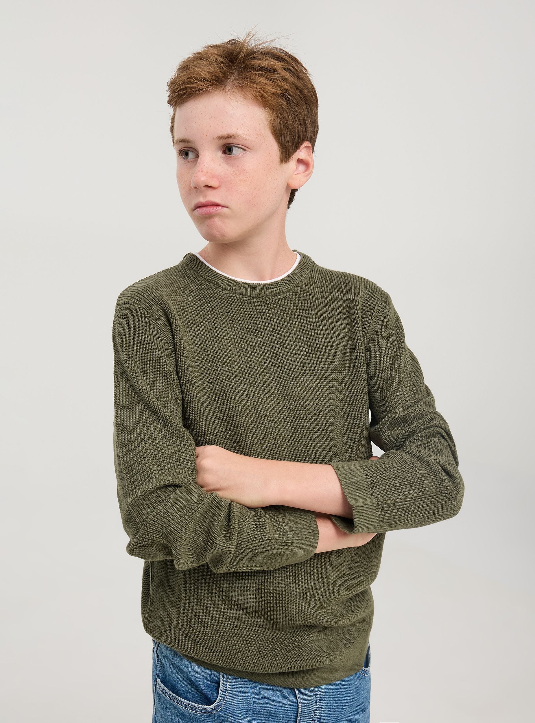 Maglia da bambino caratterizzata da una lavorazione a trama fine. Il dettaglio distintivo è il collo rotondo a contrasto in bianco che aggiunge un tocco di originalità. La vestibilità è comoda e regolare, adatta a un look casual ma curato. Le maniche lunghe e le cuciture raffinate assicurano durata e comfort. Ideale per occasioni casual, si abbina perfettamente con jeans o pantaloni.