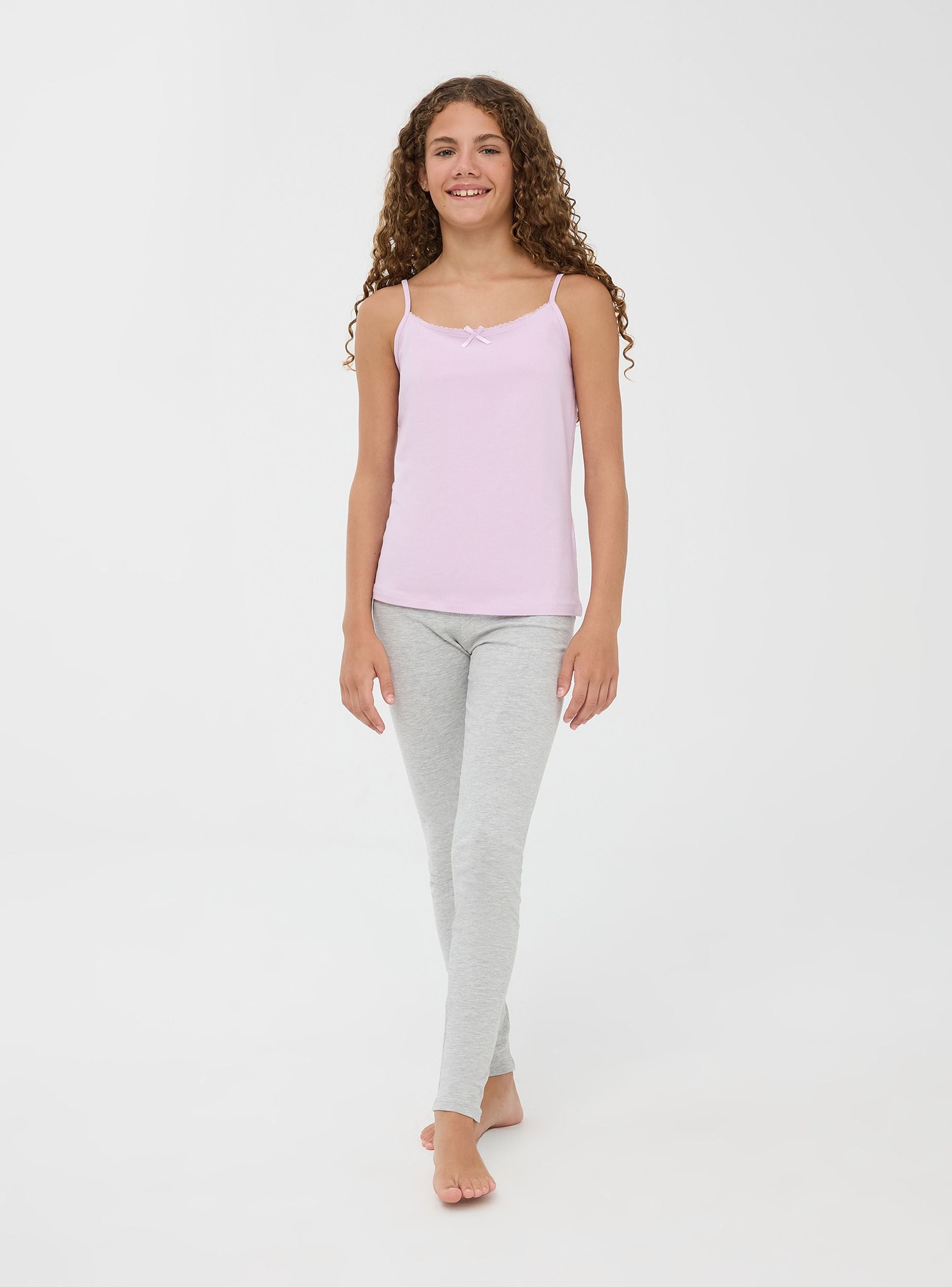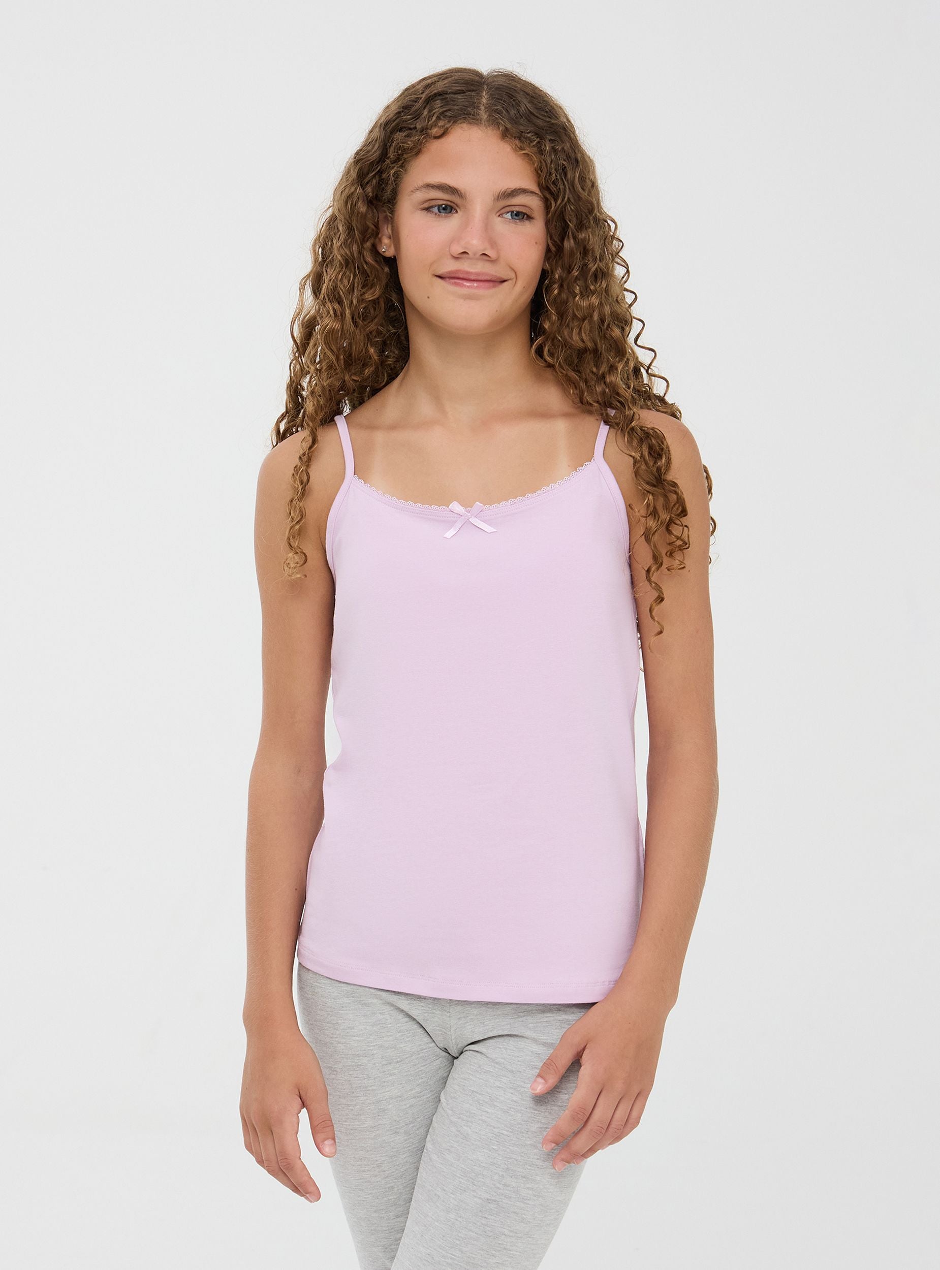 Confezione composta da due canotte da bambina a tinta unita, con spalline sottili e fiocchetto decorativo applicato. Ideale per offrire comfort e stile. Perfette per essere indossate sotto altri capi o da sole. Un'aggiunta essenziale al guardaroba di ogni bambina, garantendo comfort e libertà di movimento.