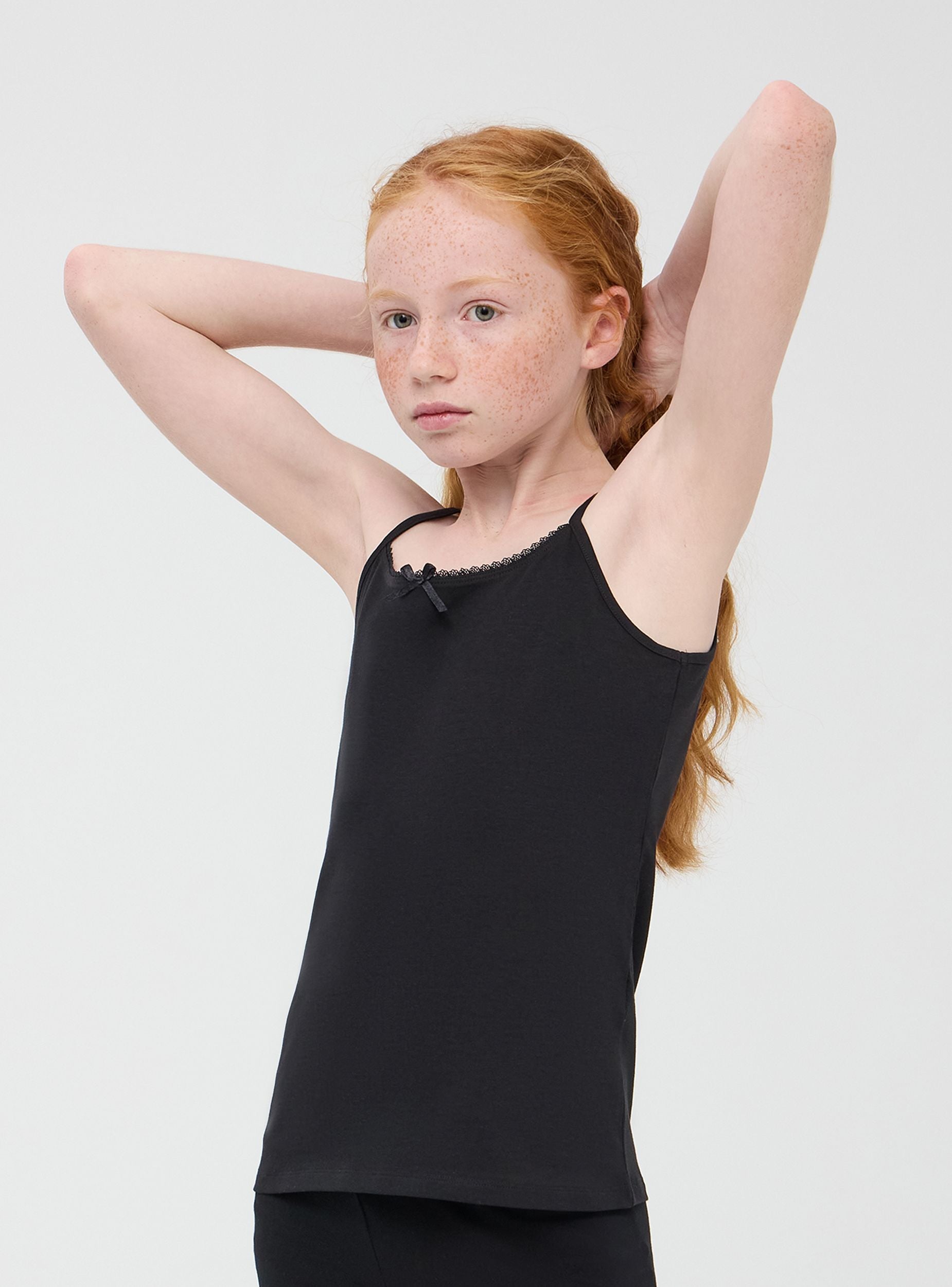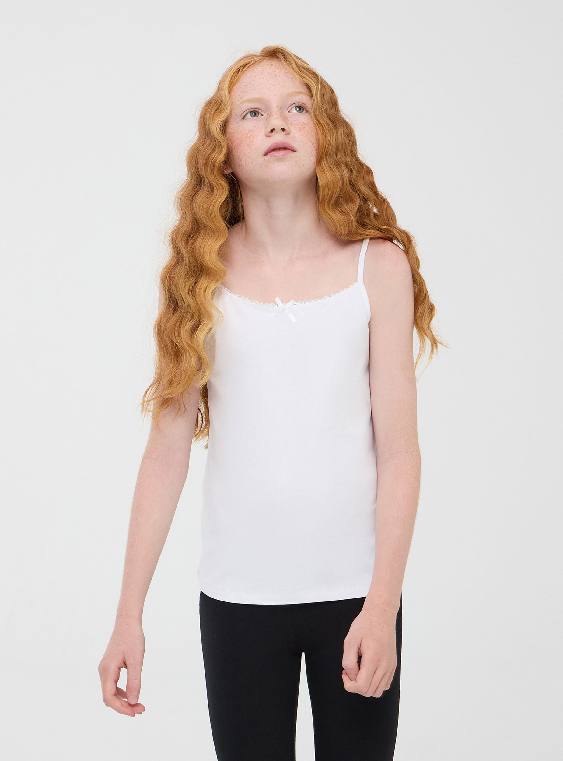 Confezione composta da due canotte da bambina a tinta unita, con spalline sottili e fiocchetto decorativo applicato. Ideale per offrire comfort e stile. Perfette per essere indossate sotto altri capi o da sole. Un'aggiunta essenziale al guardaroba di ogni bambina, garantendo comfort e libertà di movimento.
