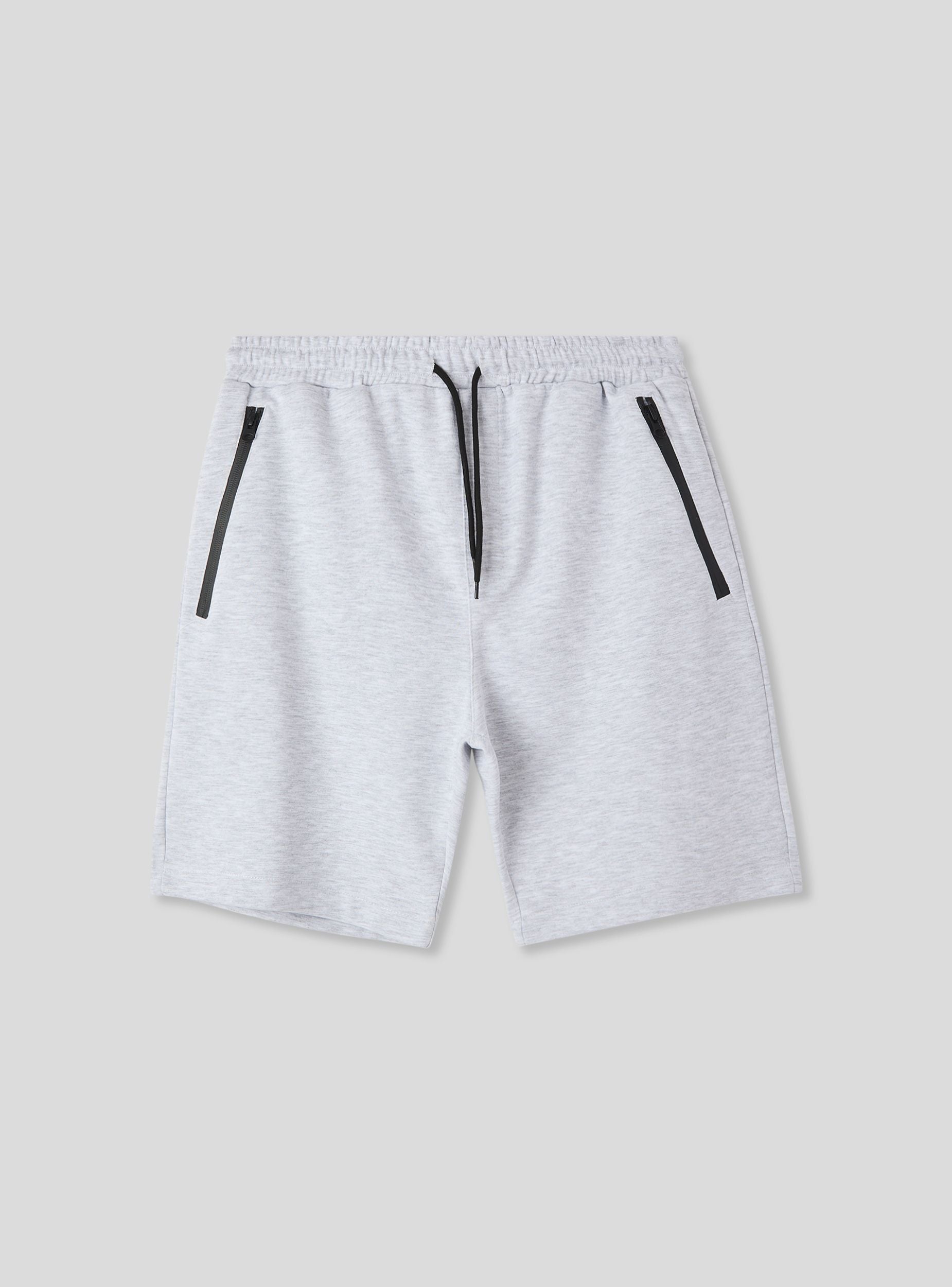 Pantaloncini tecnici da uomo realizzati in tessuto pesante ideali per attività sportive e momenti di relax. Presentano una vita elasticizzata con coulisse regolabile per un comfort ottimale. Dotati di tasche laterali con chiusura a zip, offrono praticità e sicurezza per piccoli oggetti. La lunghezza sopra il ginocchio li rende perfetti per la stagione calda. Design semplice e versatile, adatto a diverse occasioni casual.