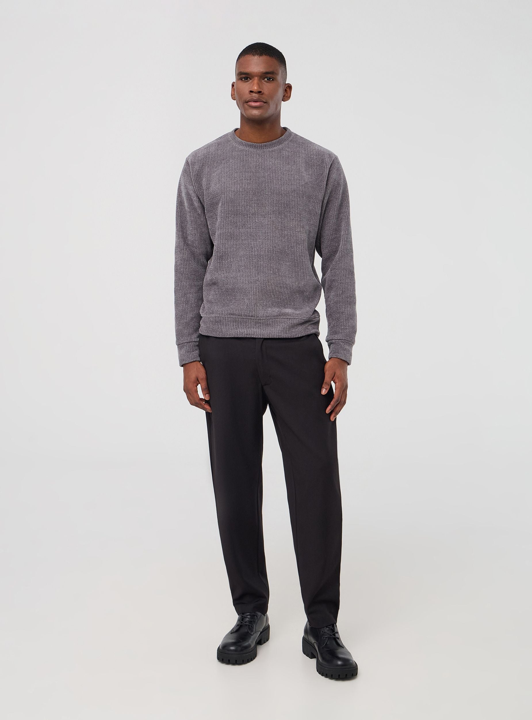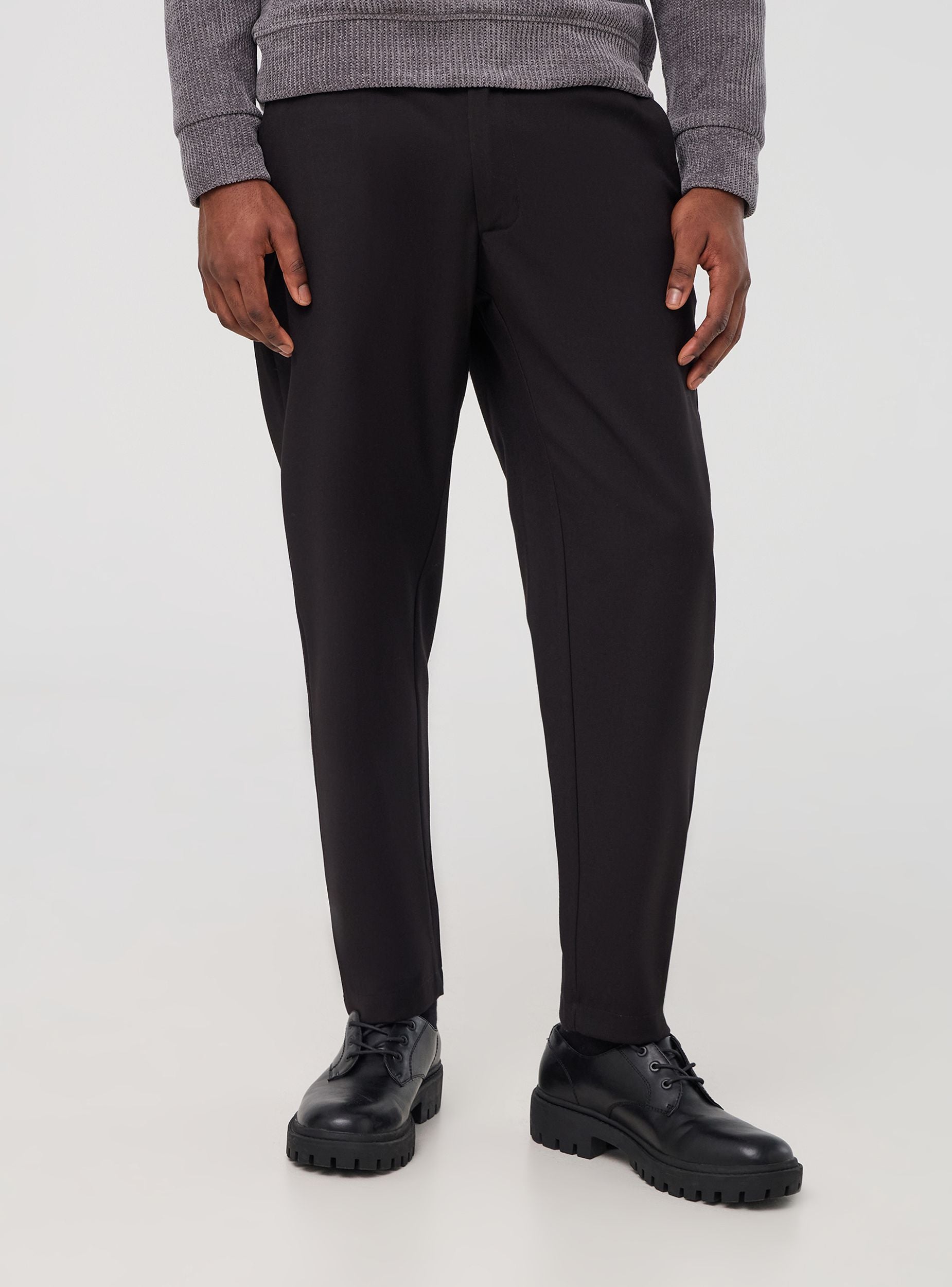 Pantaloni da uomo modello chino realizzati in tessuto di poliviscosa elasticizzato a tinta unita. Modello dotato di elastico in vita, passanti per la cintura, tasche laterali e chiusura frontale con bottone. Pantaloni versatili adatti a diversi contesti, da quelli più formali a quelli casual.Dettagli