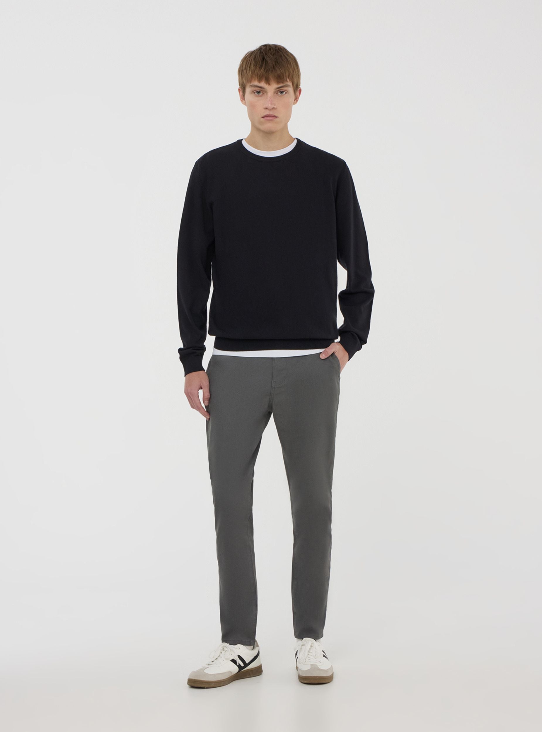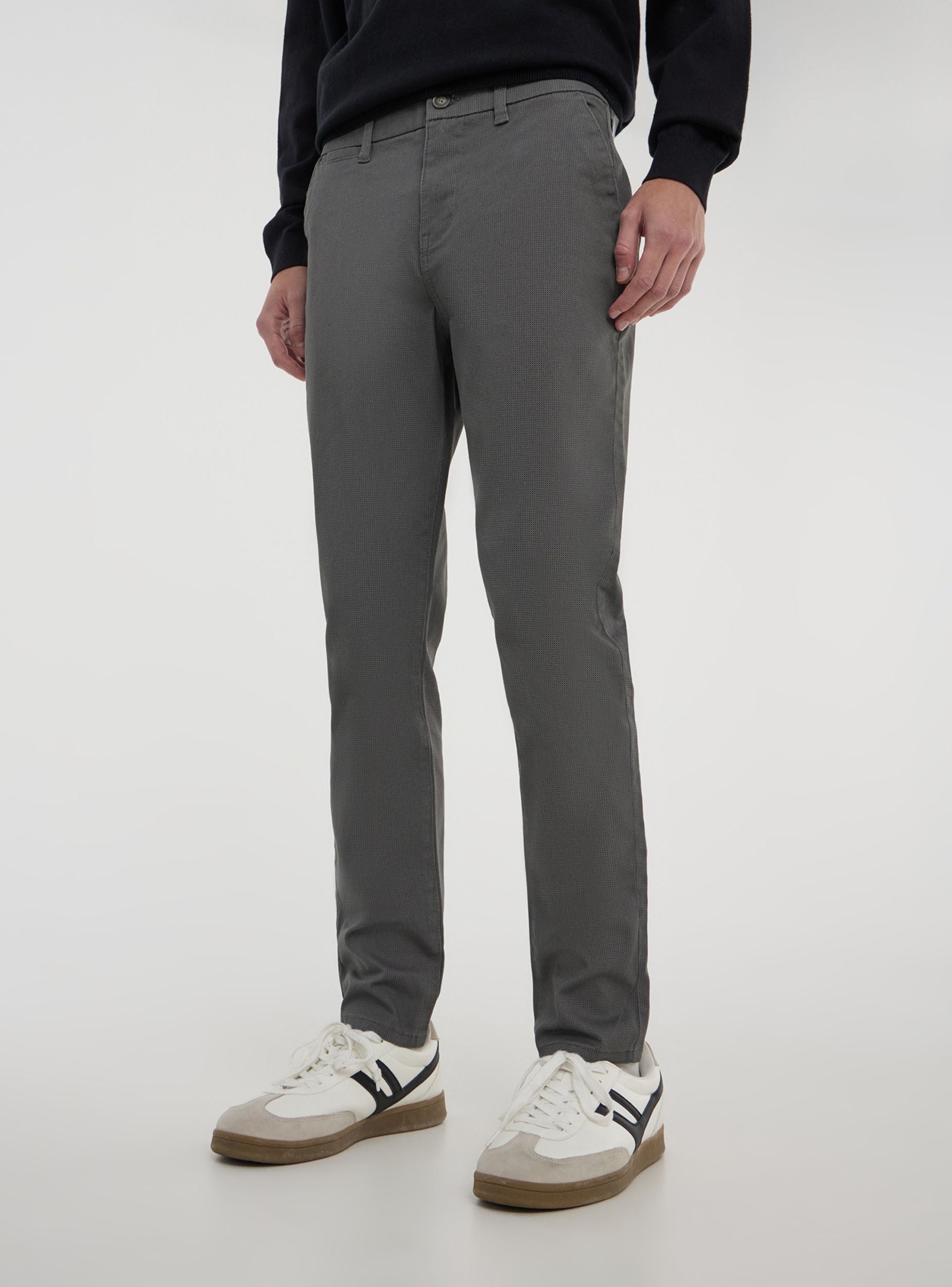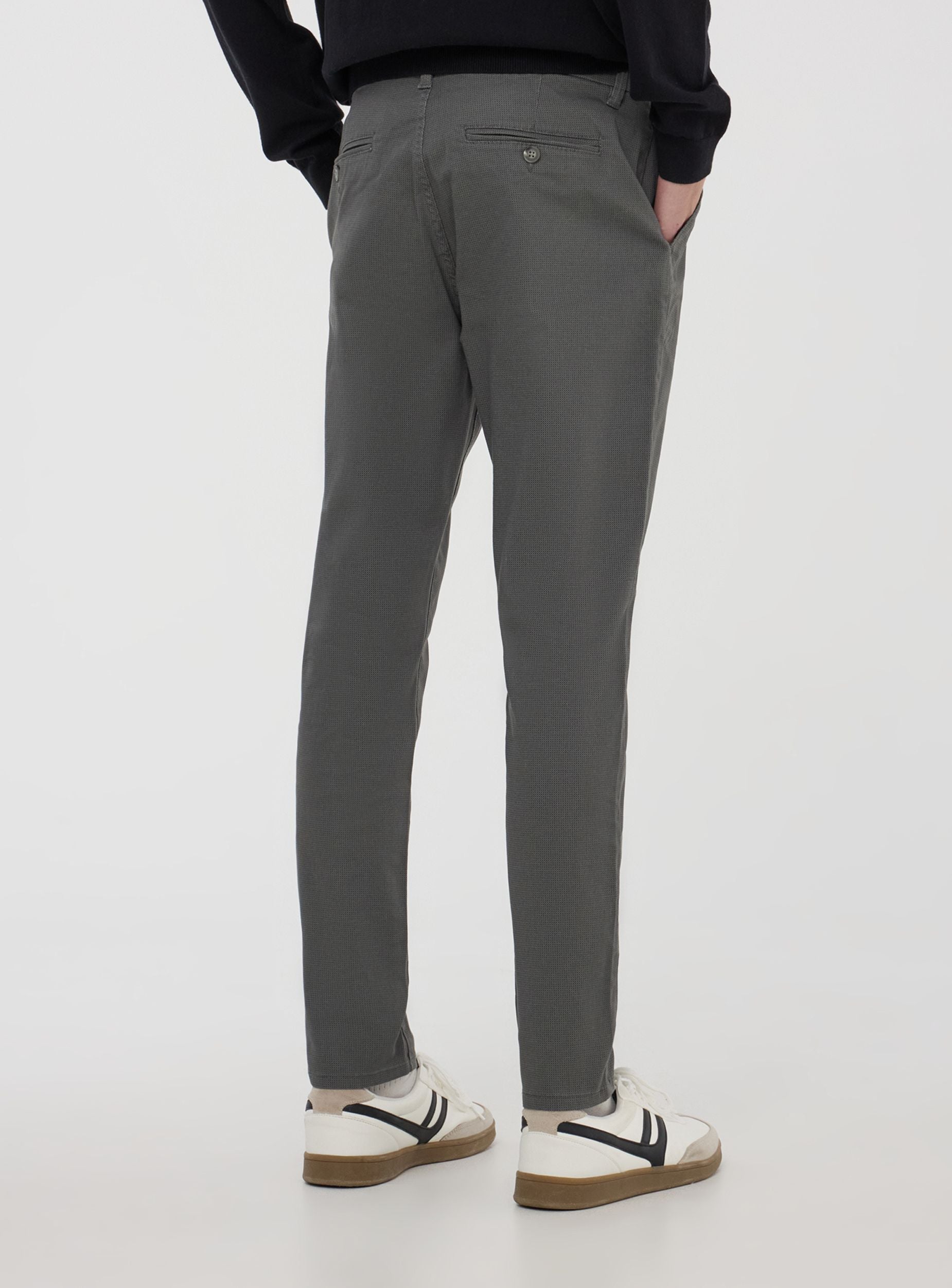 Pantaloni da uomo modello chino con fit skinny e microfantasia, ideali per un look moderno e curato. Dotati di chiusura con bottone e zip, passanti in vita e pratiche tasche, offrono stile e funzionalità. Perfetti per l’ufficio, abbinati a camicie e mocassini, o per il tempo libero con maglie casual e sneakers, garantendo versatilità in ogni occasione.