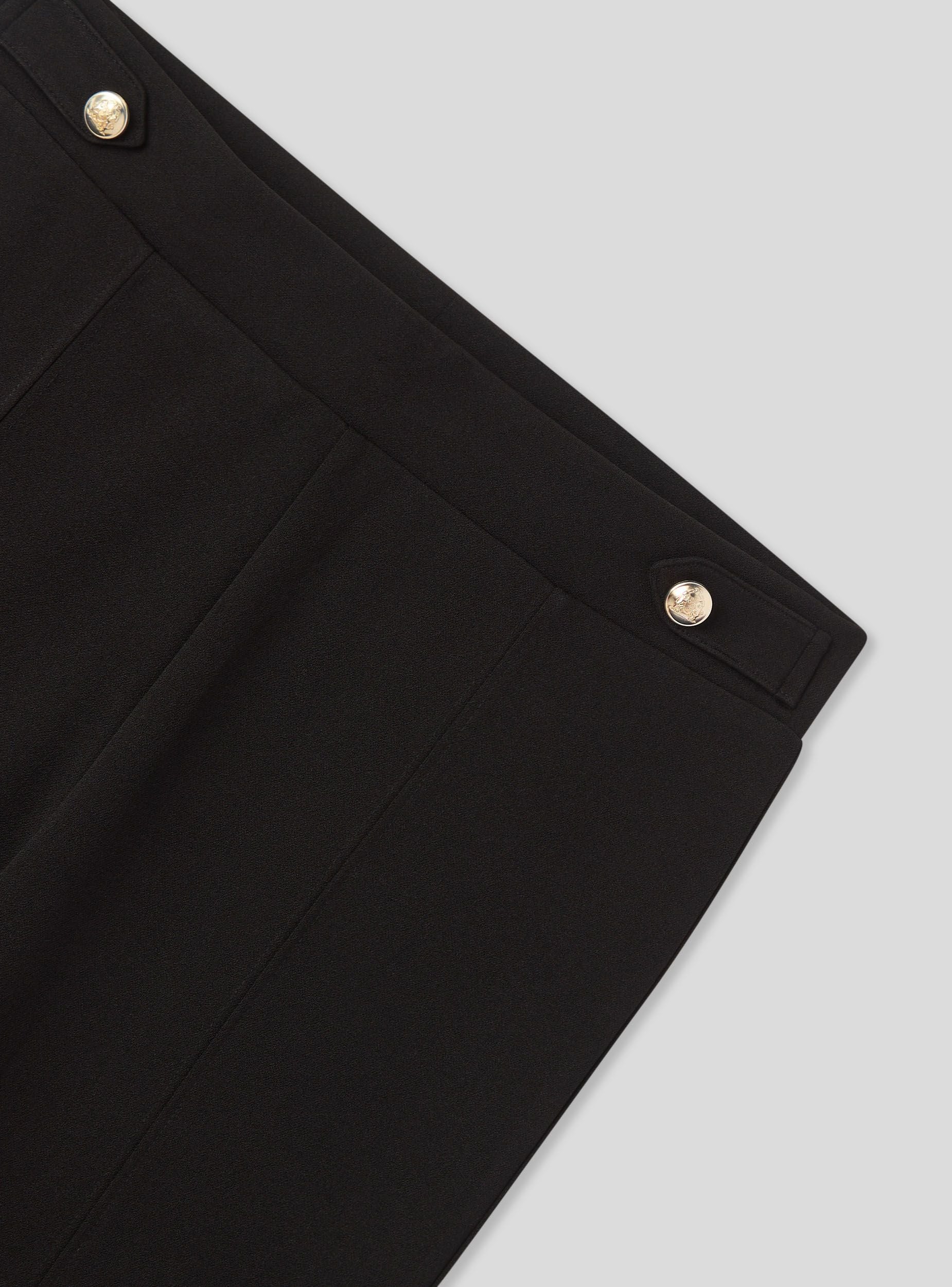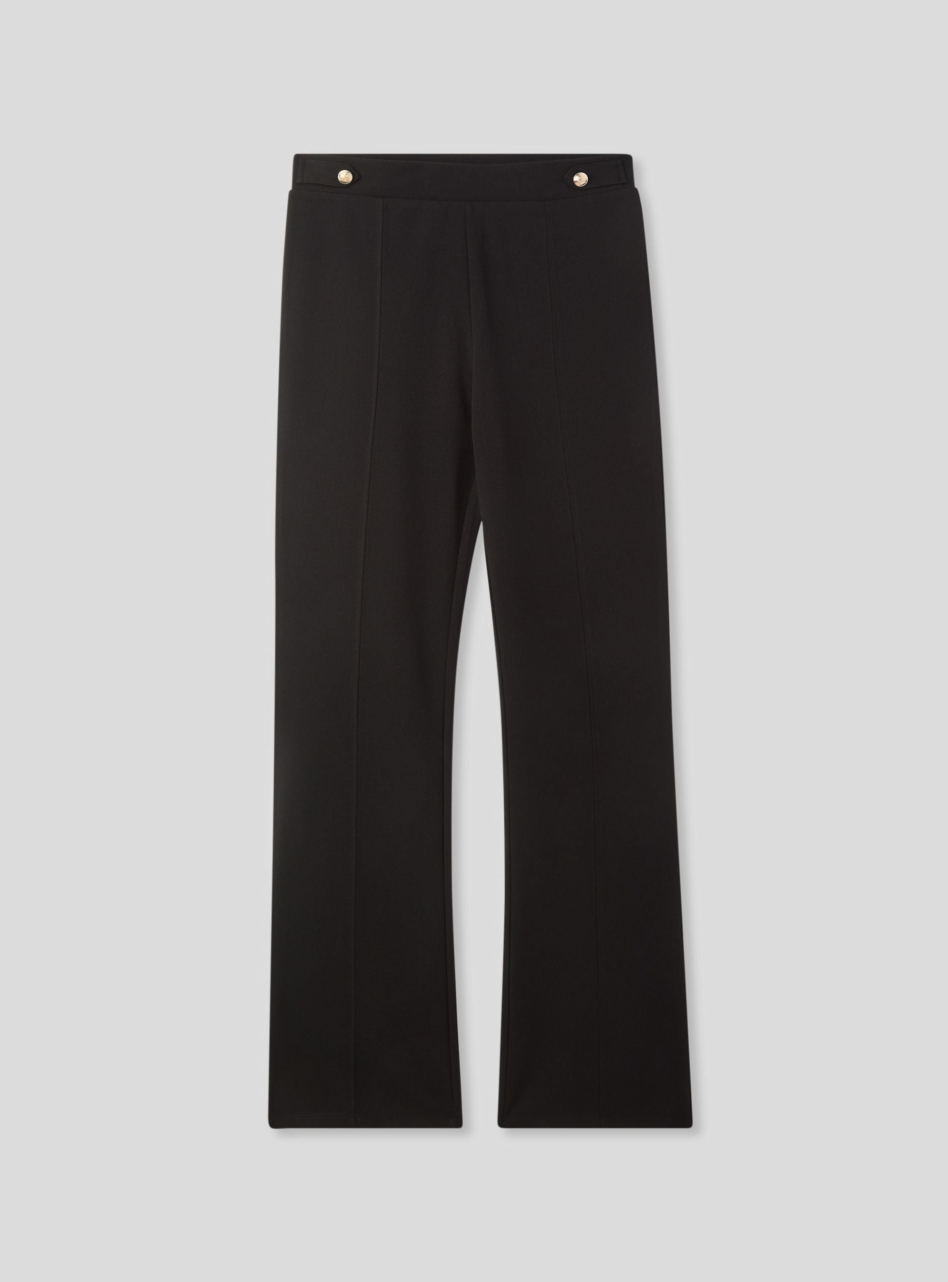 Pantaloni da bambina con taglio a zampa che si distinguono per il dettaglio decorativo con bottoni in vita, aggiungendo un tocco di stile raffinato. Il design moderno è caratterizzato da una vestibilità confortevole, ideale per il movimento quotidiano. La linea svasata crea un effetto elegante e versatile, perfetto per essere abbinato a una varietà di outfit, offrendo un look fresco e contemporaneo.Dettagli