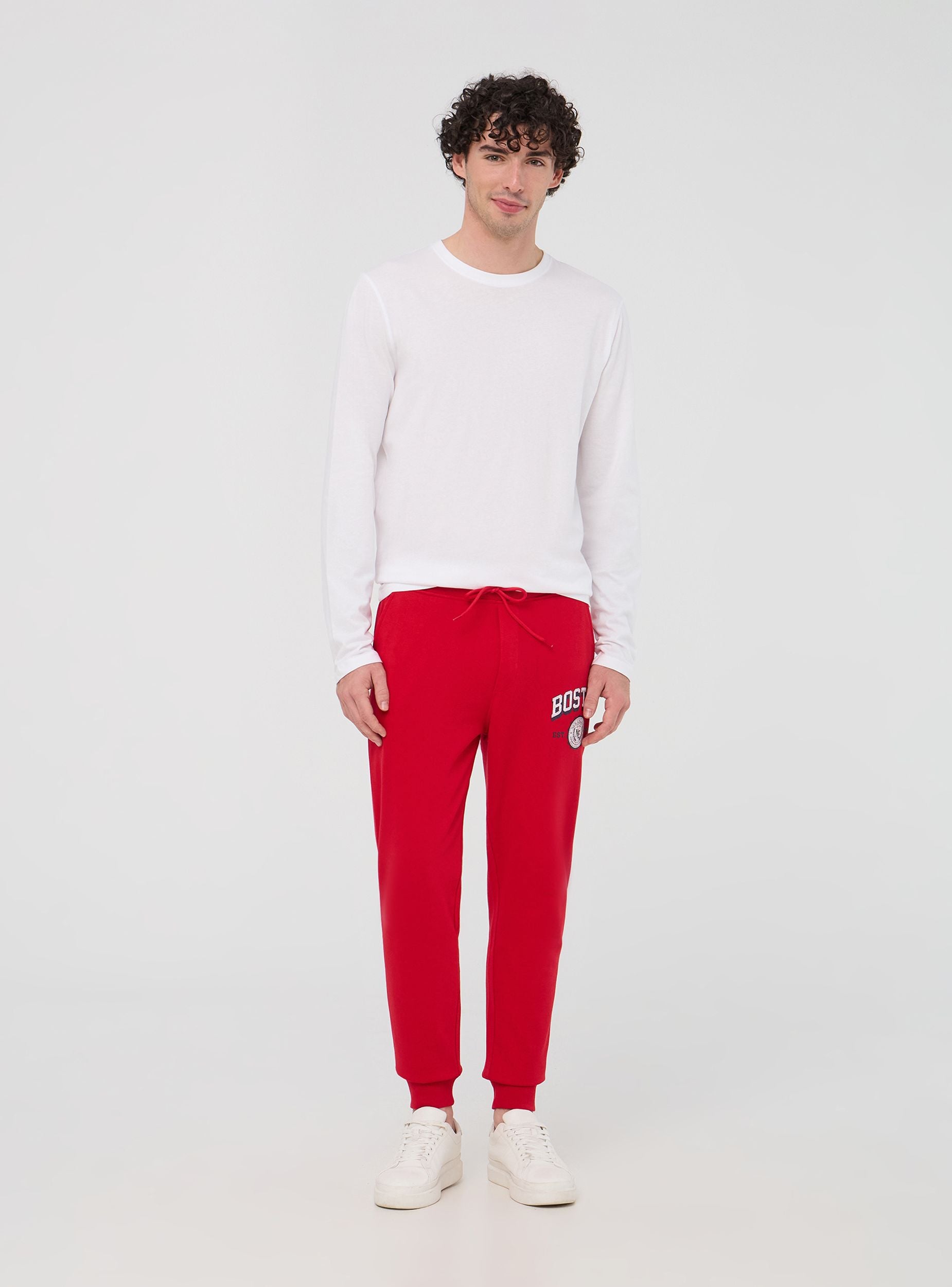 Pantaloni della tuta leggeri da uomo a tinta unita con coulisse regolabile in vita, arricchiti da una stampa sportiva che aggiunge un tocco dinamico. Dotati di tasca posteriore, sono ideali per attività sportive o momenti di relax. Perfetti da abbinare a t-shirt e sneakers per un look casual e funzionale, adatti sia per il tempo libero che per allenamenti leggeri.Dettagli