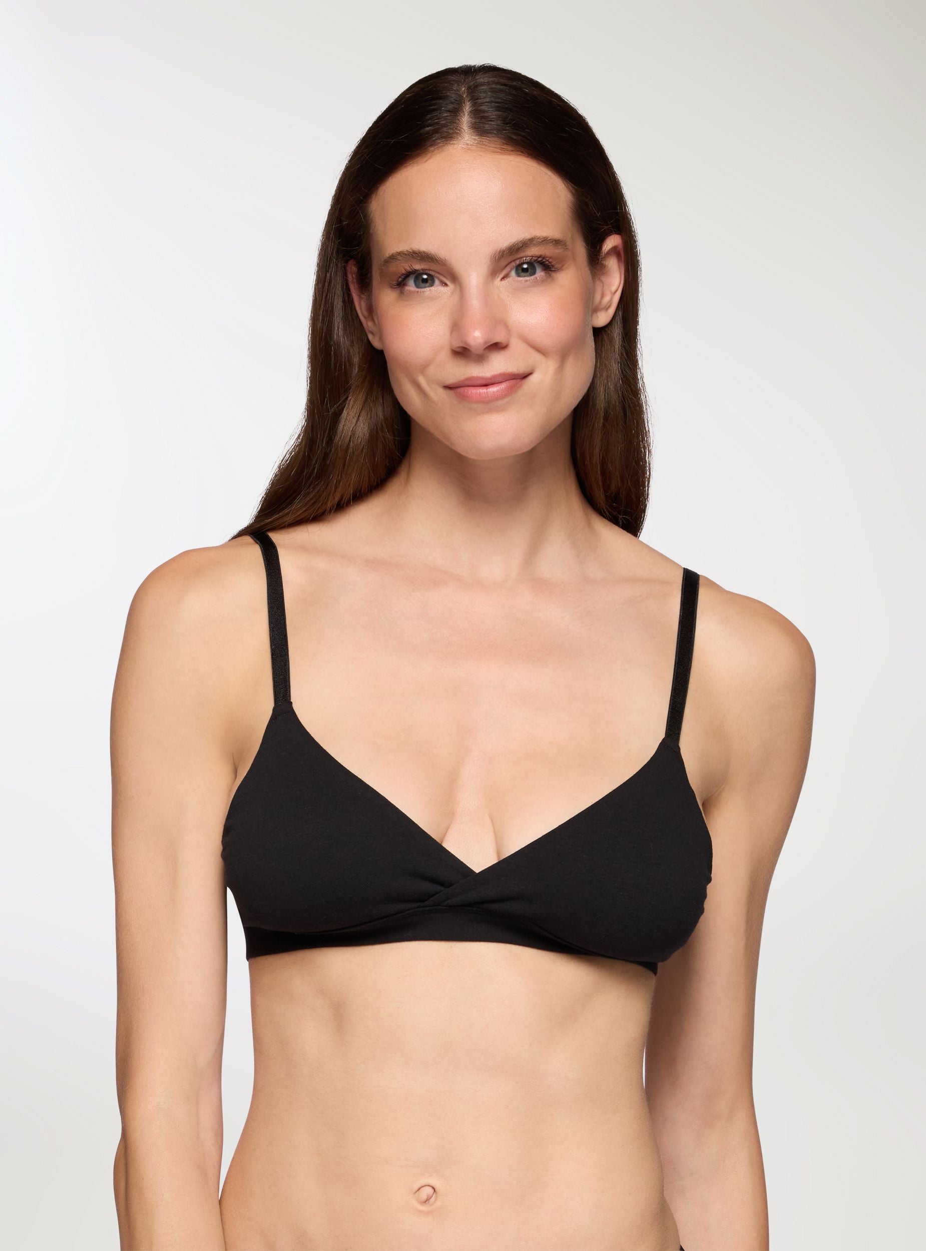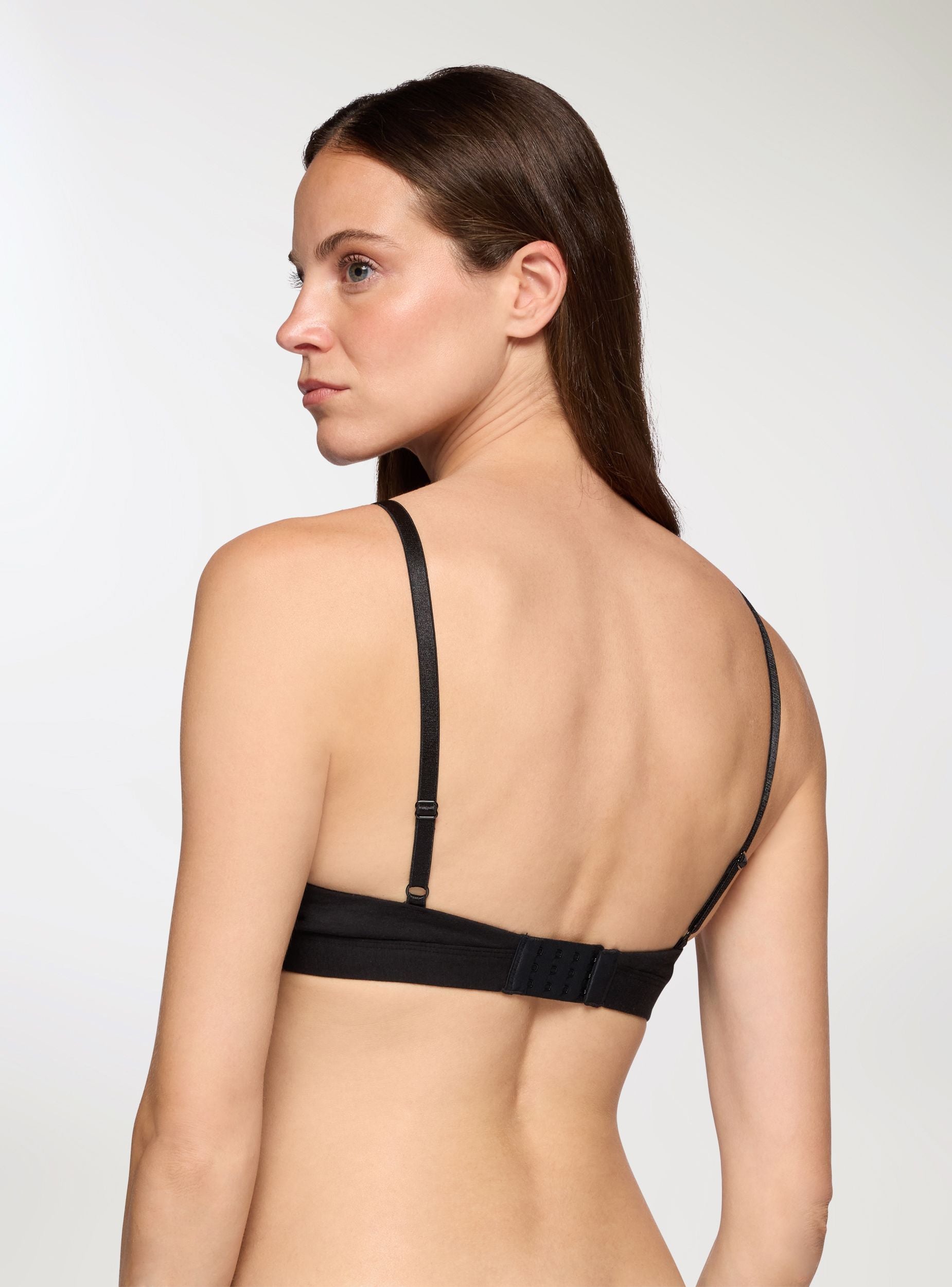 Reggiseno da donna a triangolo ideale per un comfort quotidiano. Il design senza ferretto e le spalline sottili regolabili lo rendono perfetto da indossare sotto maglie aderenti o abiti leggeri. Chiusura posteriore con gancetto e design a tinta unita per uno stile semplice e versatile. Si adatta a diverse occasioni, garantendo sostegno leggero e libertà di movimento.