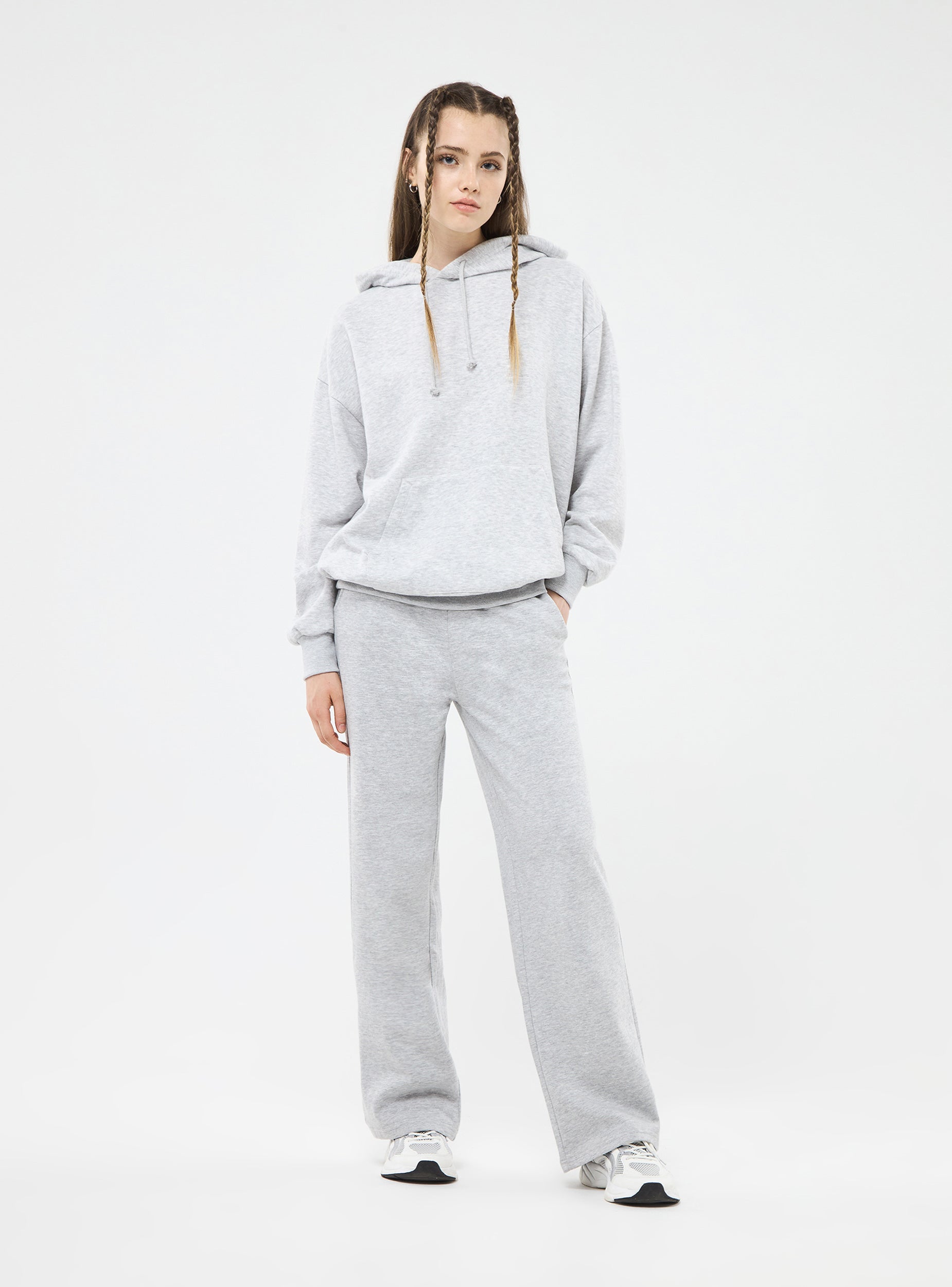 Pantaloni tuta da donna modello a gamba ampia. Fascia elastica in vita, tasche laterali oblique. Tessuto pesante a tinta unita, Vestibilità regular.La modella è alta 1,75 e indossa la taglia S.Dettagli
