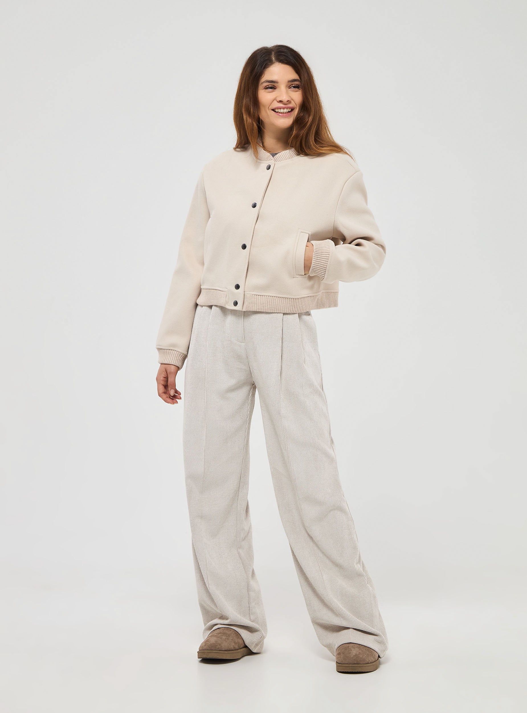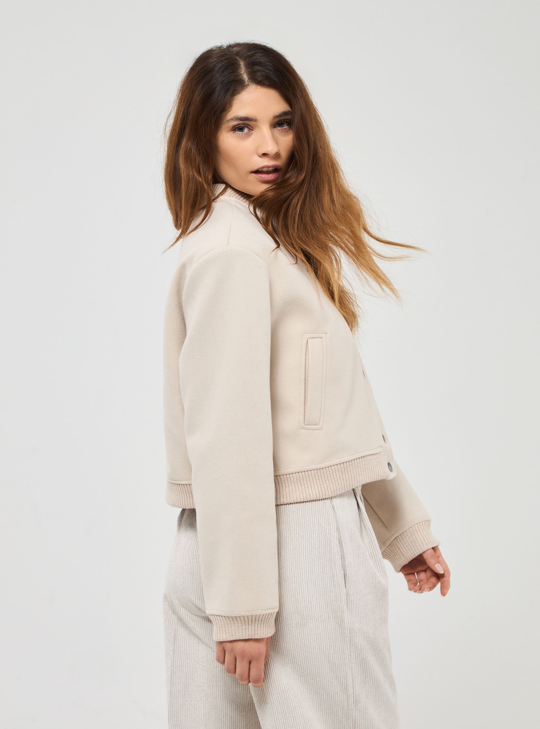 Giubbotto da donna in velour tinta unita , modello bomber corto con bottoni a pressione