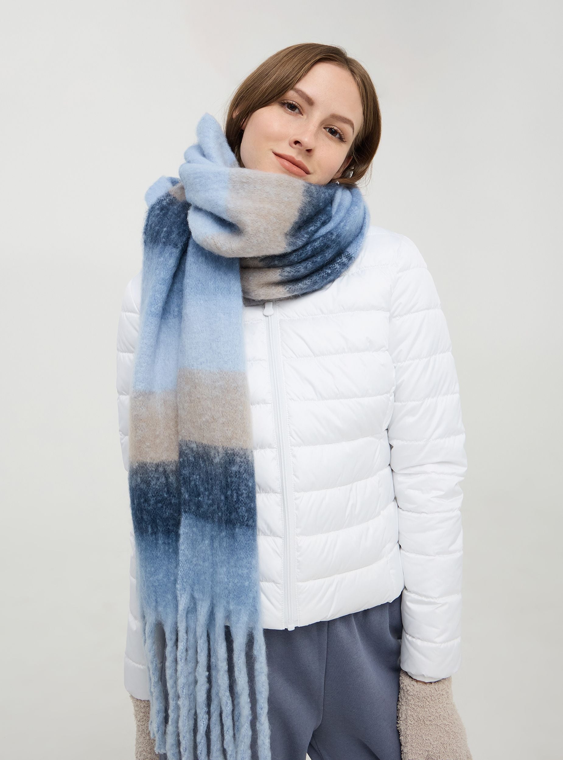 Maxi sciarpa da donna, ideale per affrontare il freddo con stile. Il tessuto offre calore e comfort, mentre le righe sfumate aggiungono un tocco di eleganza. Le frange alle estremità contribuiscono a un look trendy e sofisticato. Questo accessorio è perfetto per occasioni casual e giornate di lavoro all’aperto, donando un tocco di classe ad ogni outfit.Dettagli