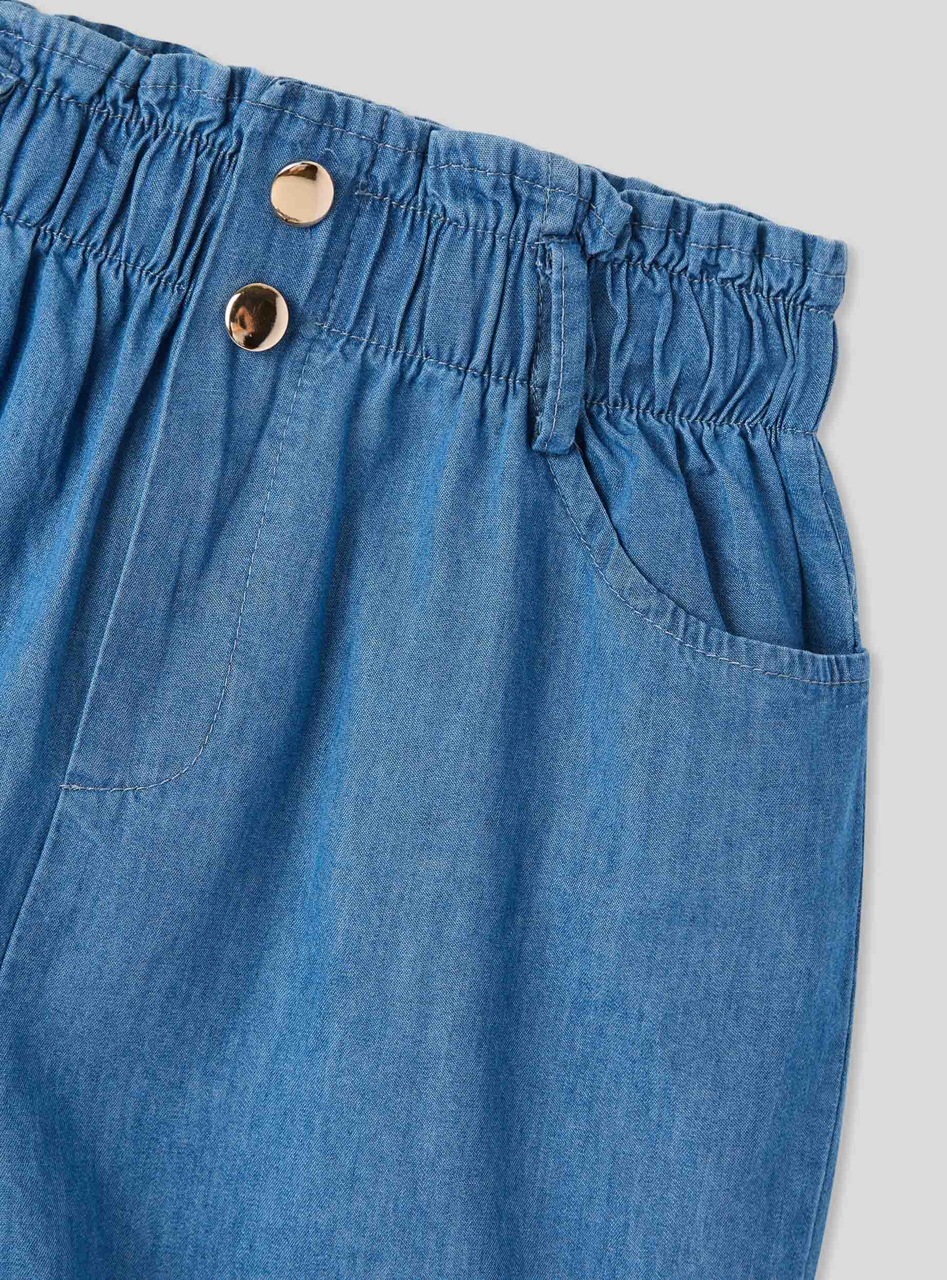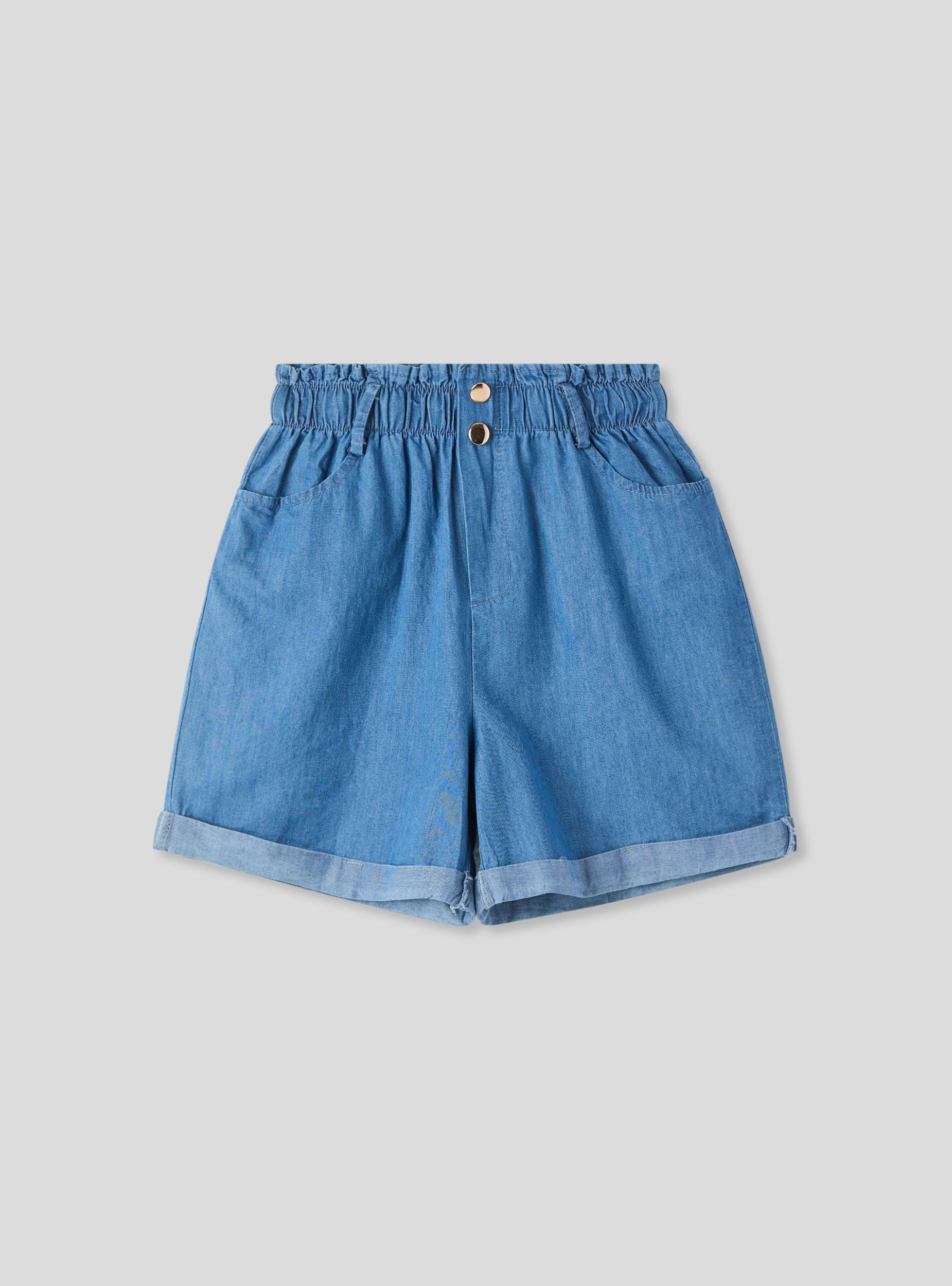 Pantaloncini da bambina ideali per un look casual e comodo. Presentano una vita elasticizzata con chiusura a bottoni, offrendo una vestibilità pratica e confortevole. Dotati di tasche laterali, sono perfetti per abbinamenti con magliette e sandali per giornate estive. Il design semplice e versatile li rende adatti a molteplici occasioni.