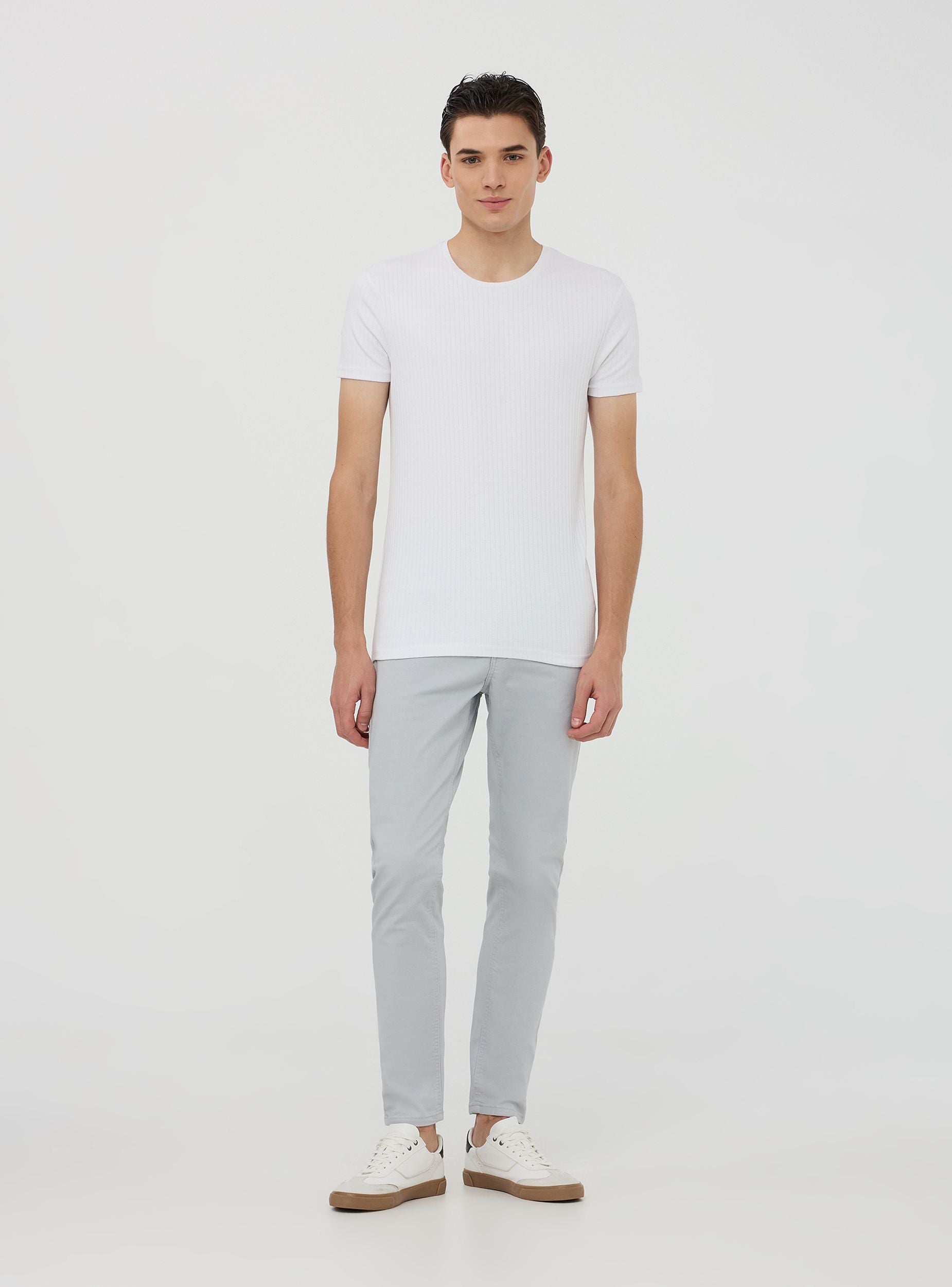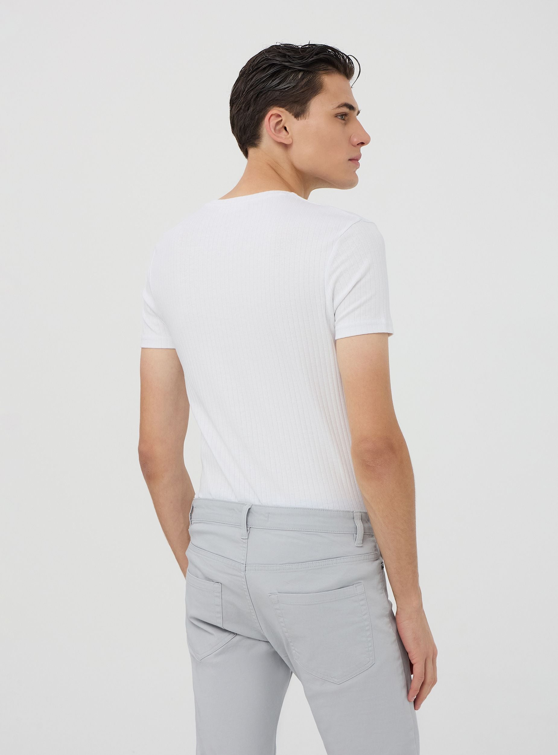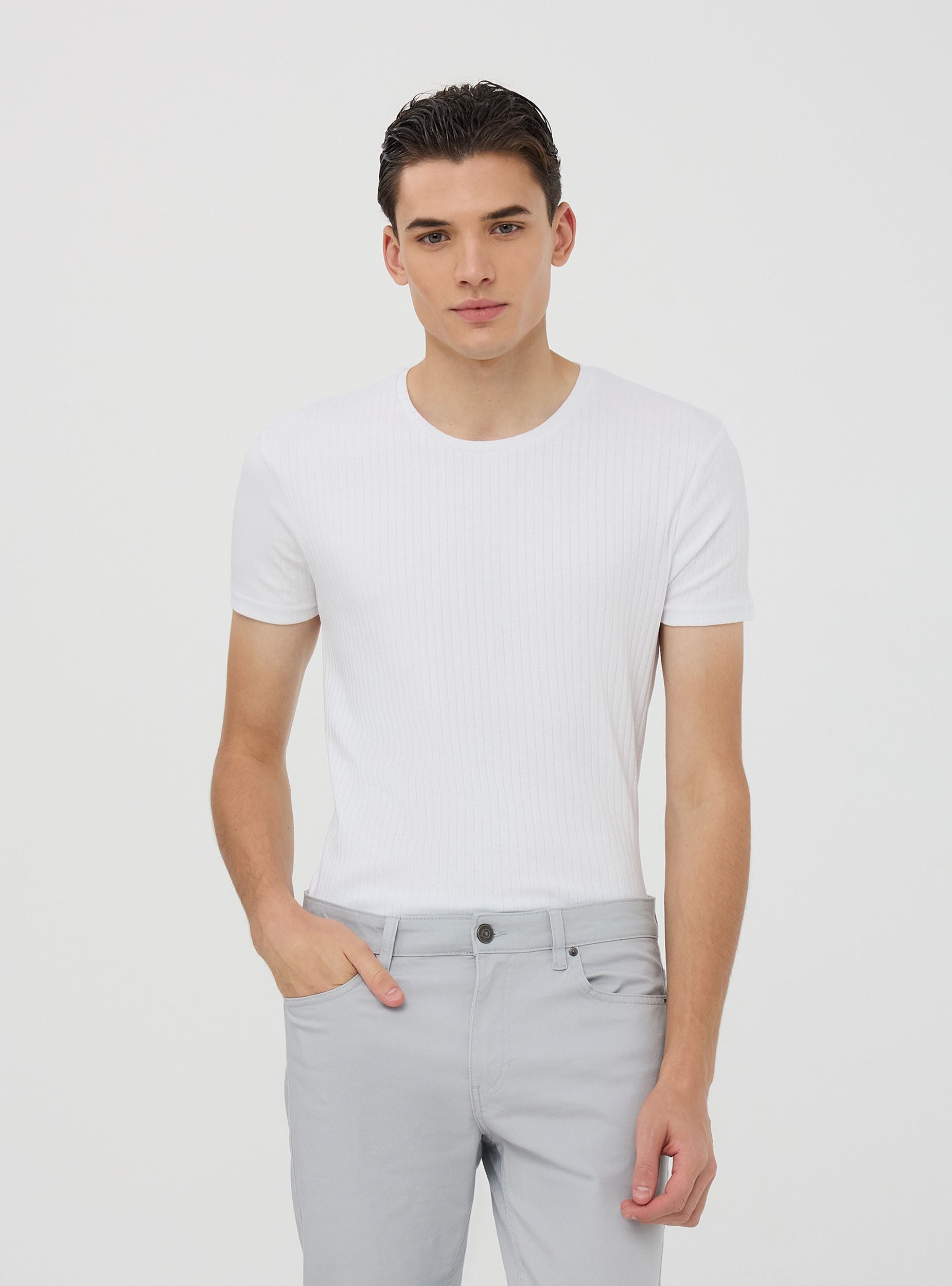 Maglietta da uomo con maniche corte e girocollo, ideale per un look essenziale e versatile. Il design in costina aggiunge una texture distintiva e piacevole al tatto, mentre la tinta unita la rende facilmente abbinabile con diversi stili. Perfetta per garantire comfort e leggerezza durante tutto il giorno, questa t-shirt è un capo indispensabile per completare il guardaroba quotidiano con semplicità e praticità.Dettagli