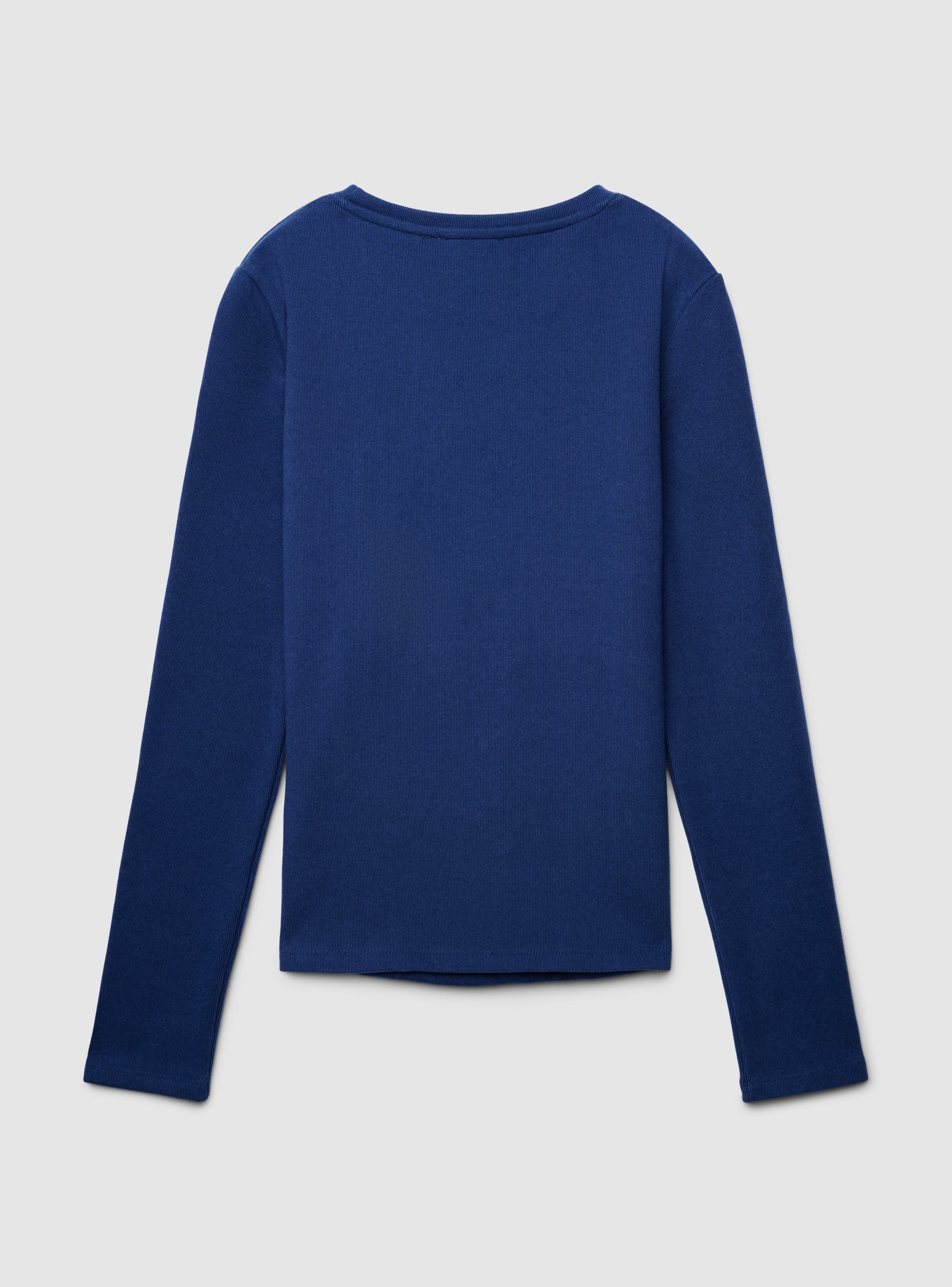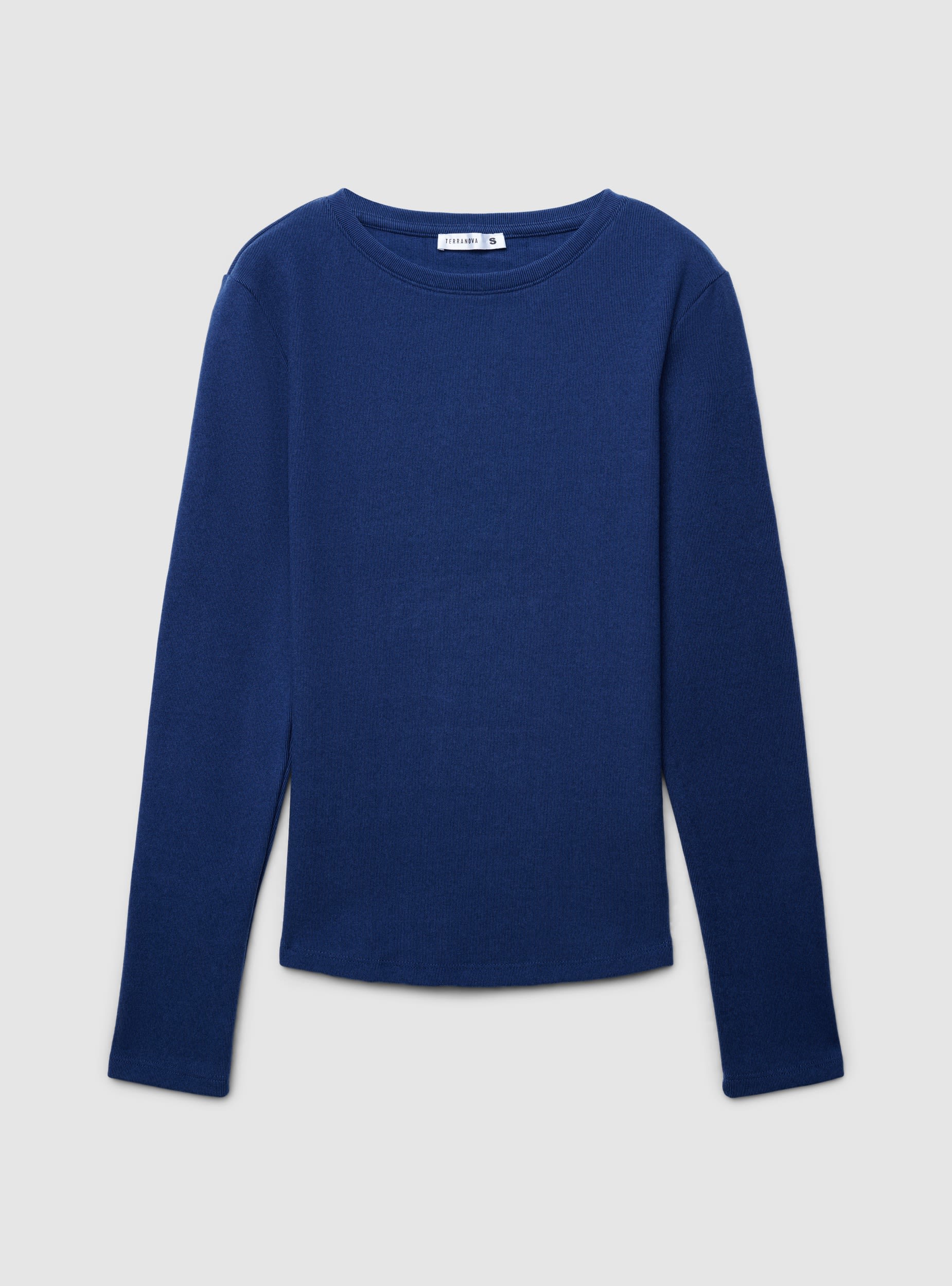 Maglietta da donna a manica lunga, perfetta per l’uso quotidiano e per il layering nelle mezze stagioni. Linea regular con scollo tondo e bordi rifiniti, design a tinta unita facile da abbinare sotto cardigan, blazer o jeans a vita alta. Il tessuto morbidamente elasticizzato offre comfort e libertà nei movimenti. Ideale per look casual, urban o per l’ufficio informale, con pantaloni, gonne o pantaloncini.