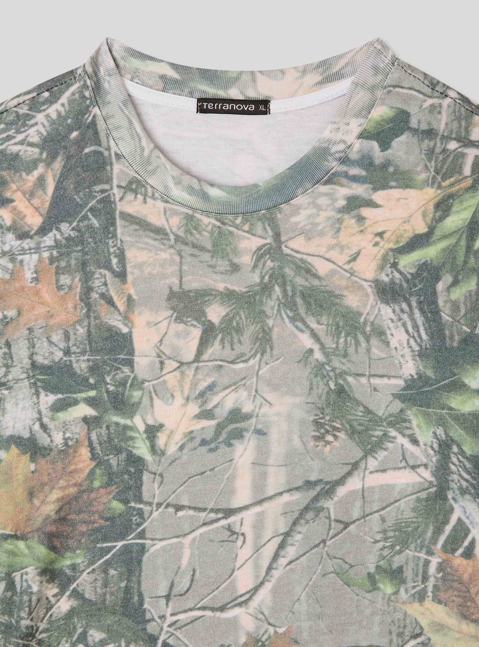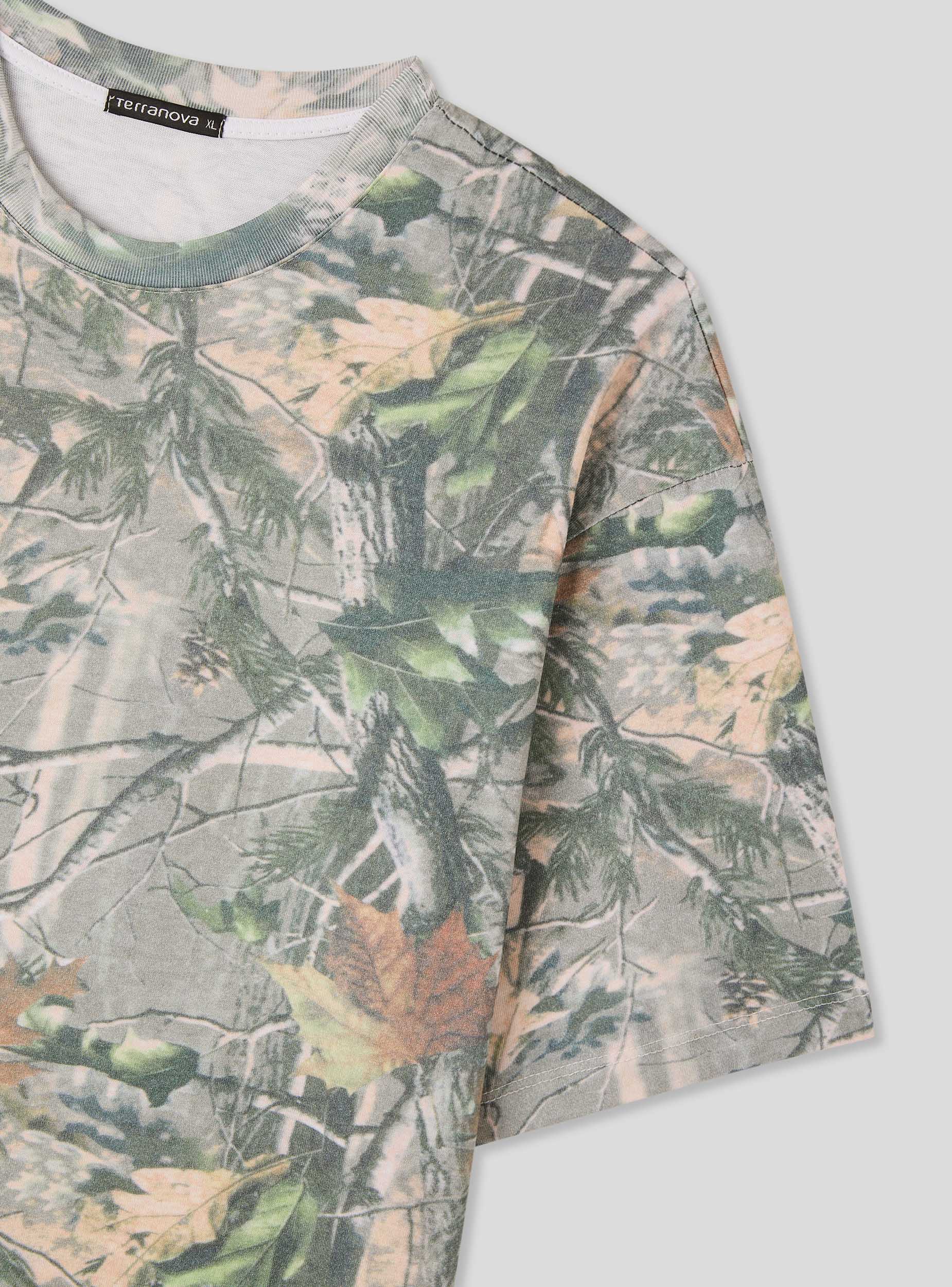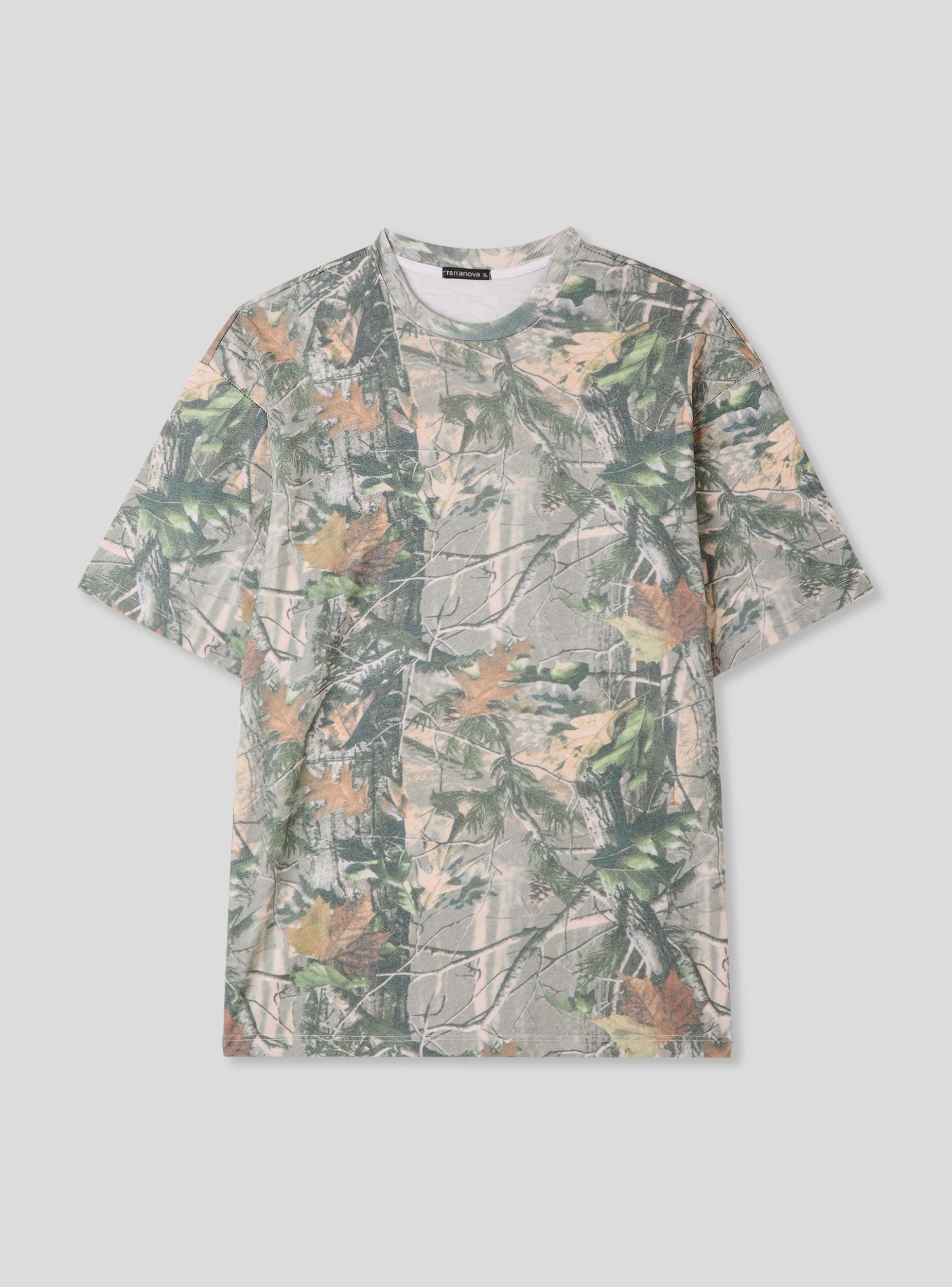 Maglietta da uomo con stampa fogliame, ideale per un look casual e rilassato. Presenta una vestibilità boxy e maniche corte, perfetta per essere abbinata a jeans o pantaloni sportivi. Il girocollo aggiunge un tocco casual, mentre il design unico la rende adatta per passeggiate all'aperto o momenti di relax.