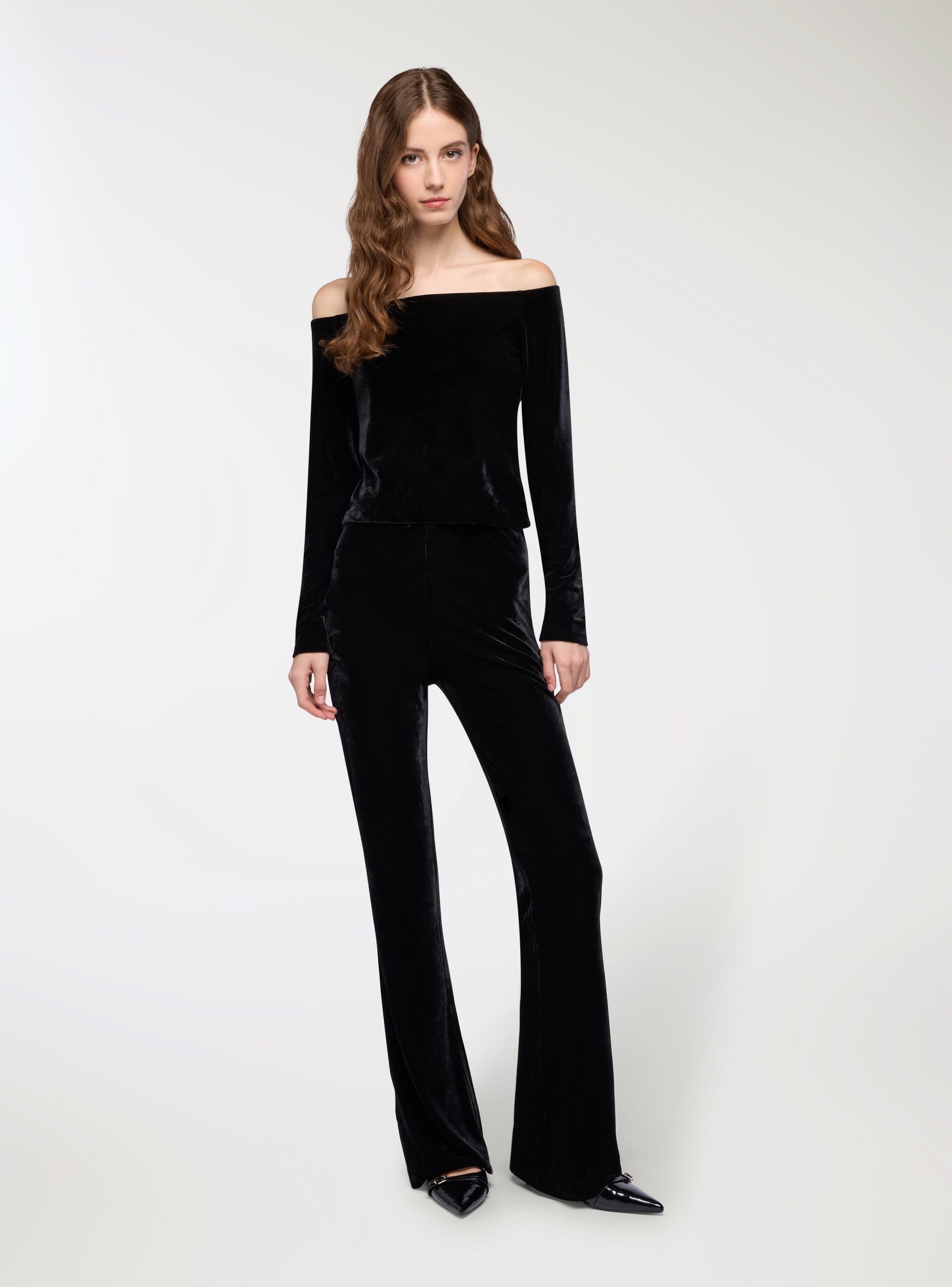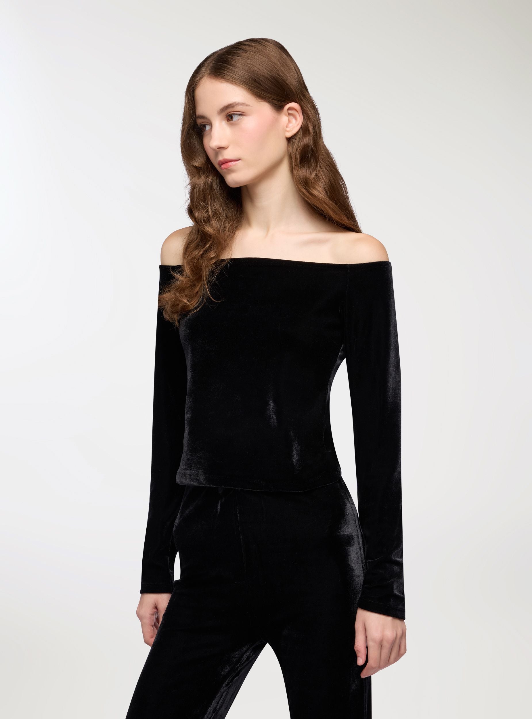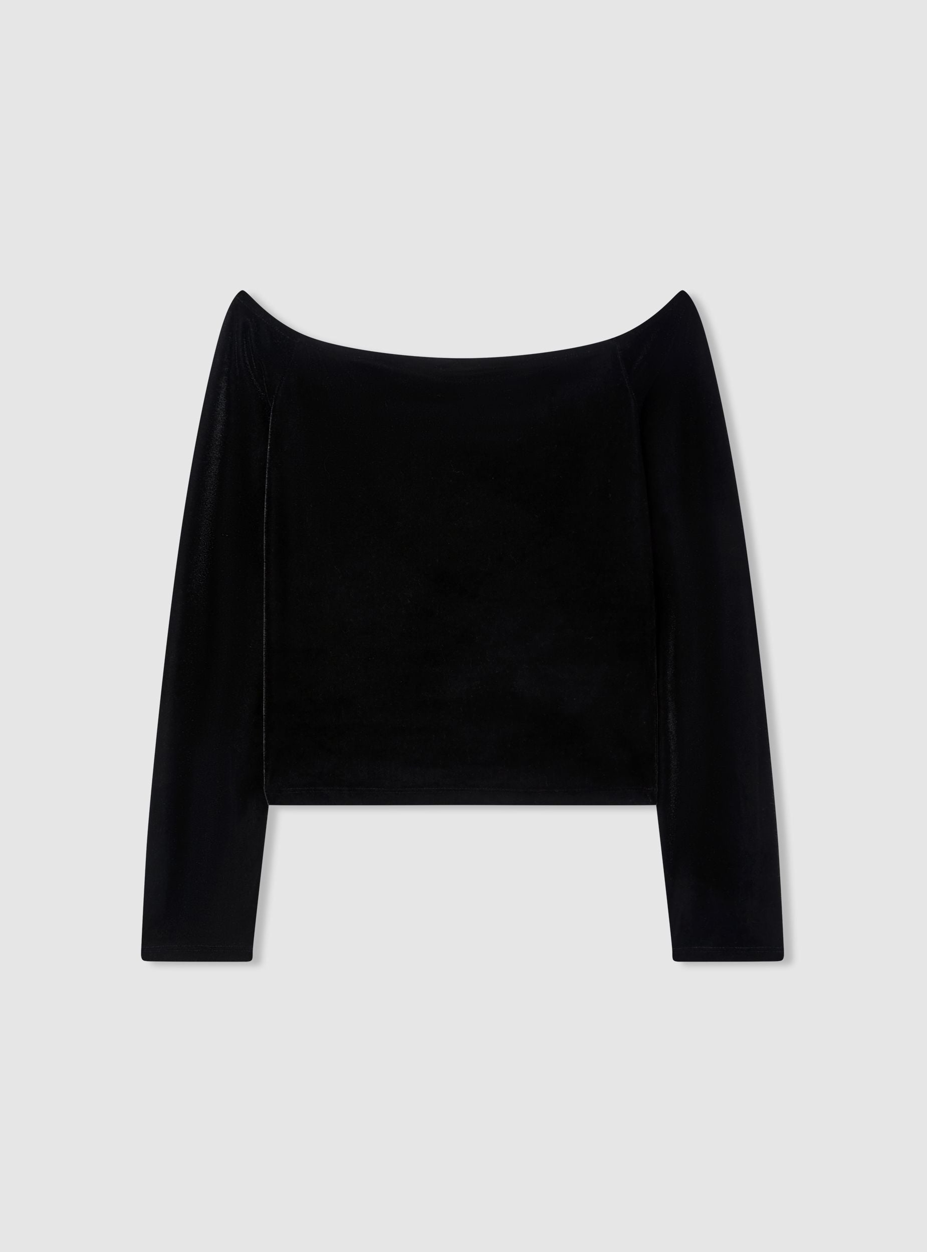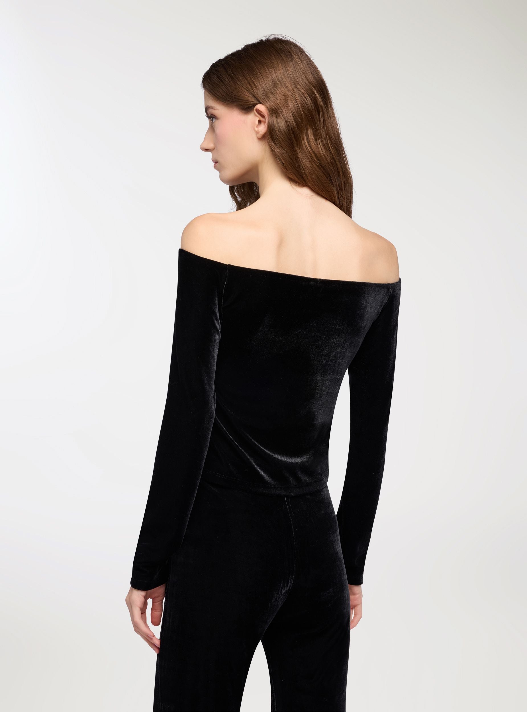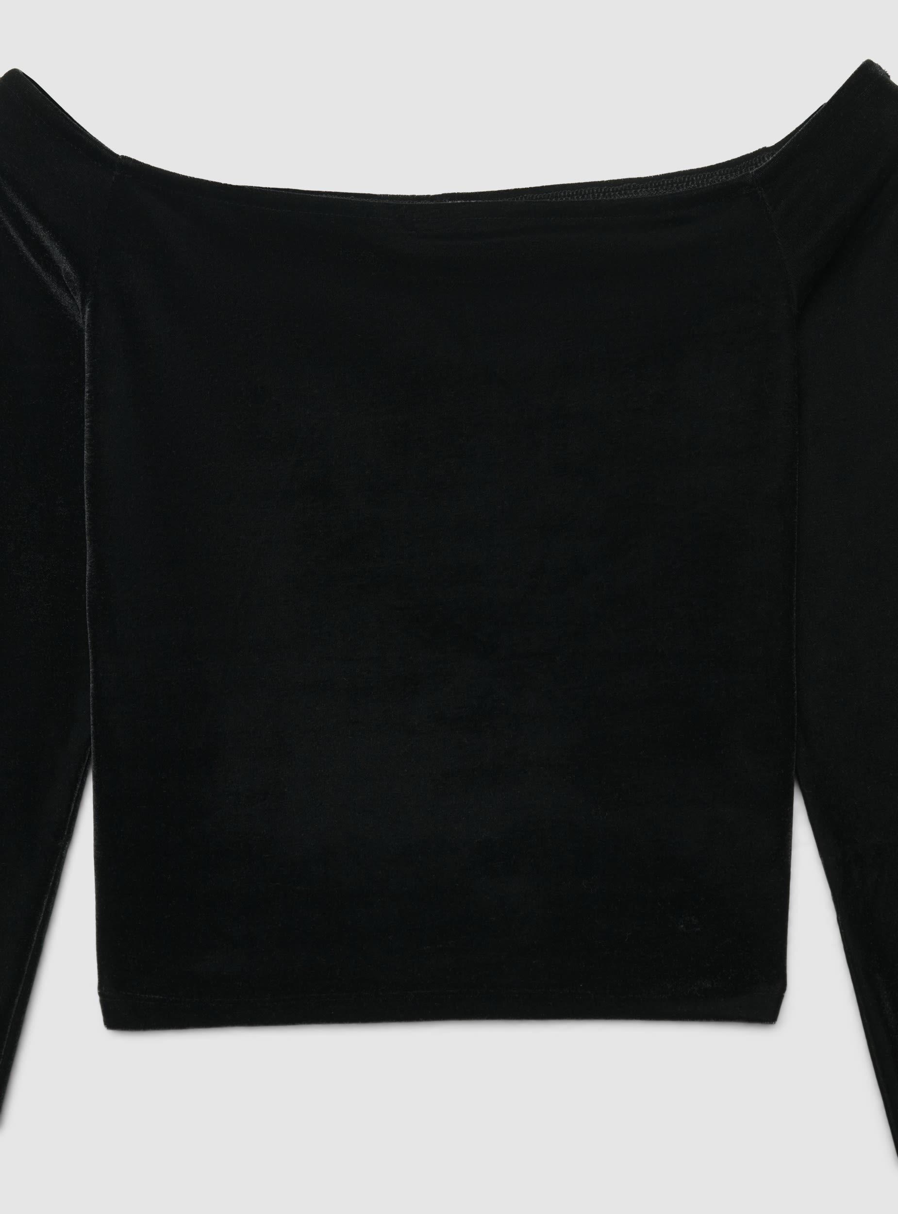T-shirt crop spalle scoperte in ciniglia