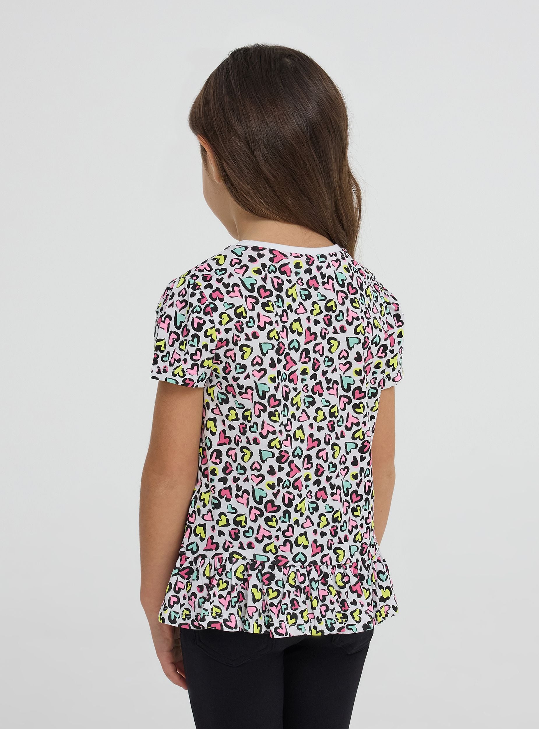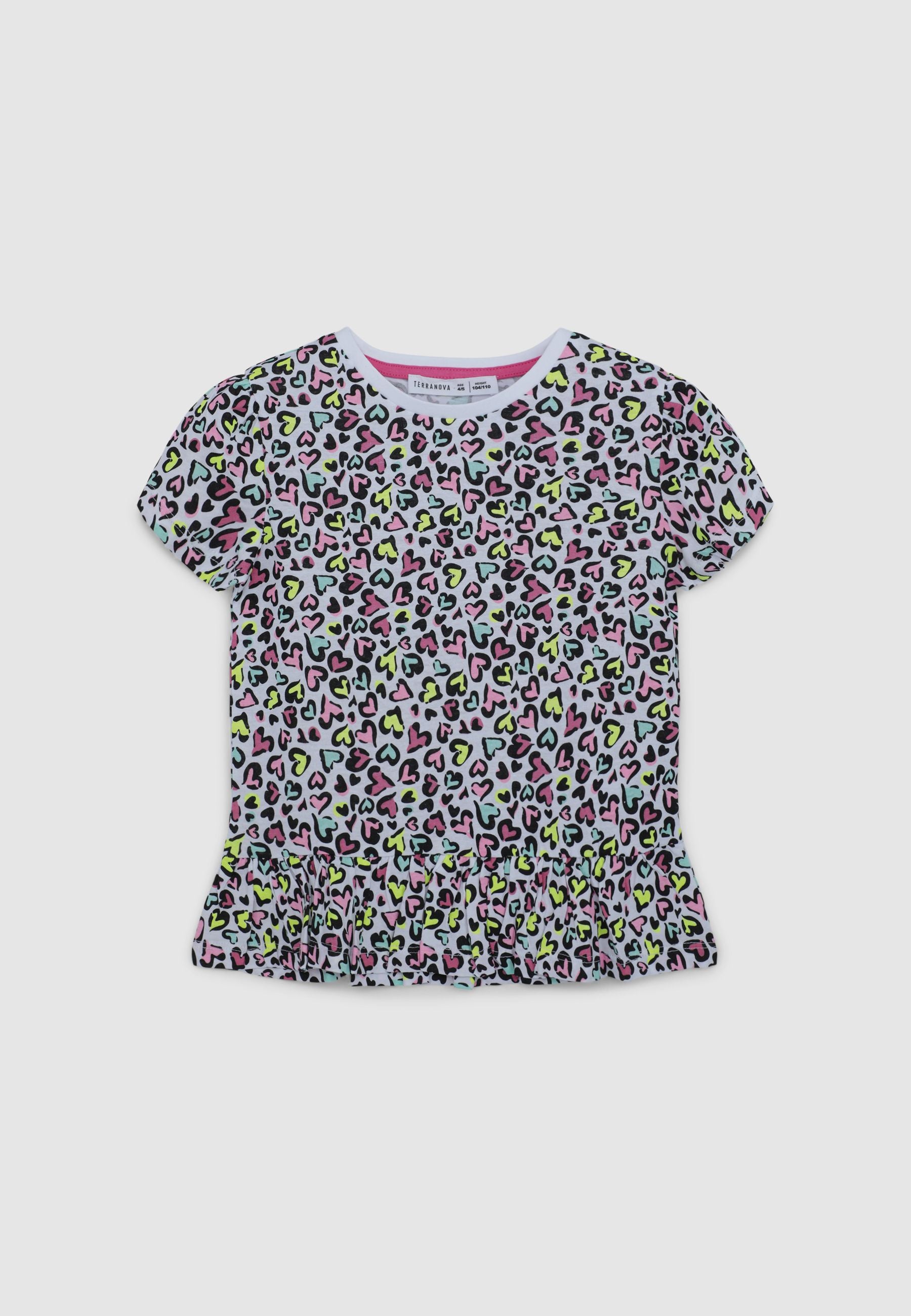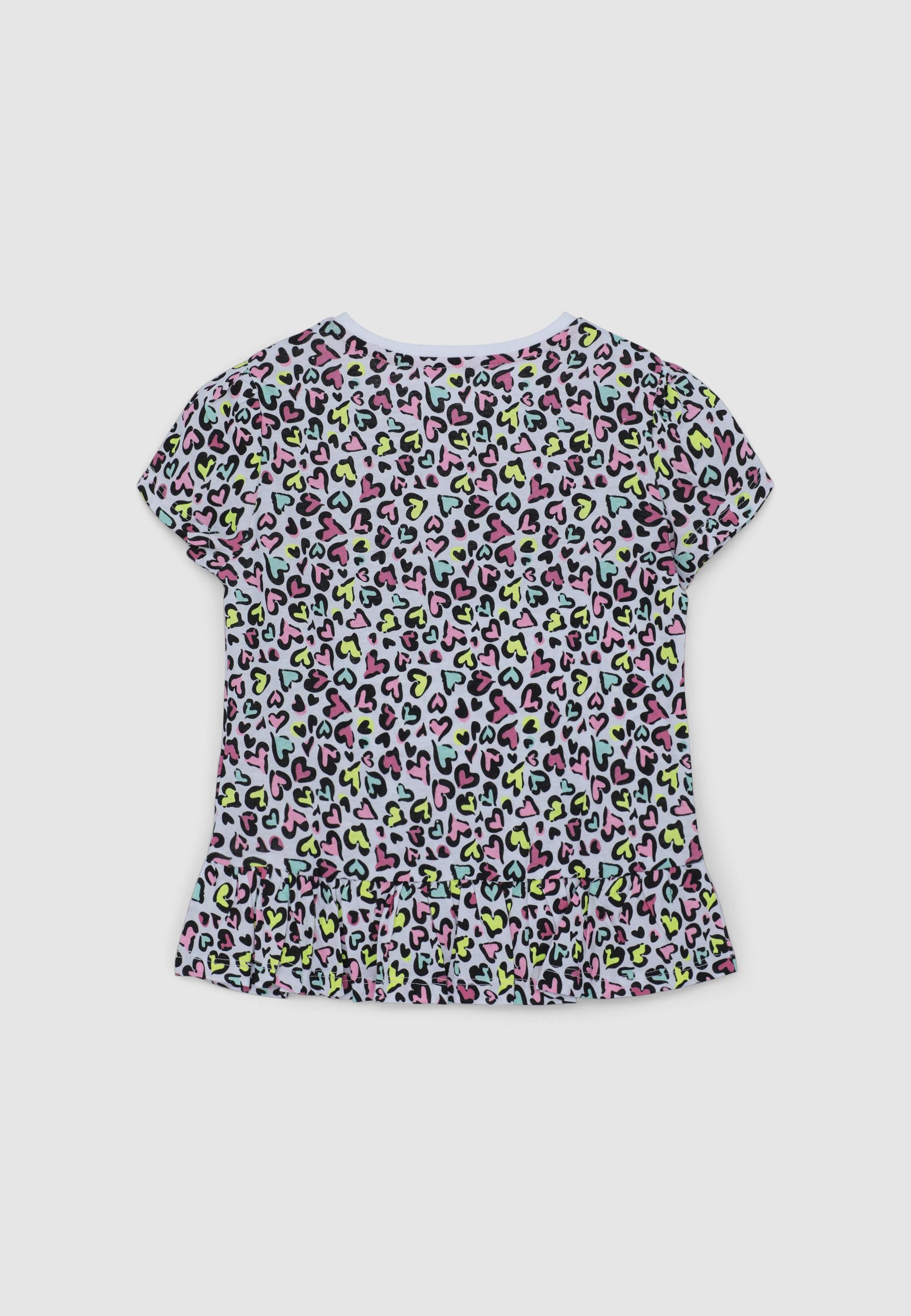 T-shirt fantasia maculata con cuoricini