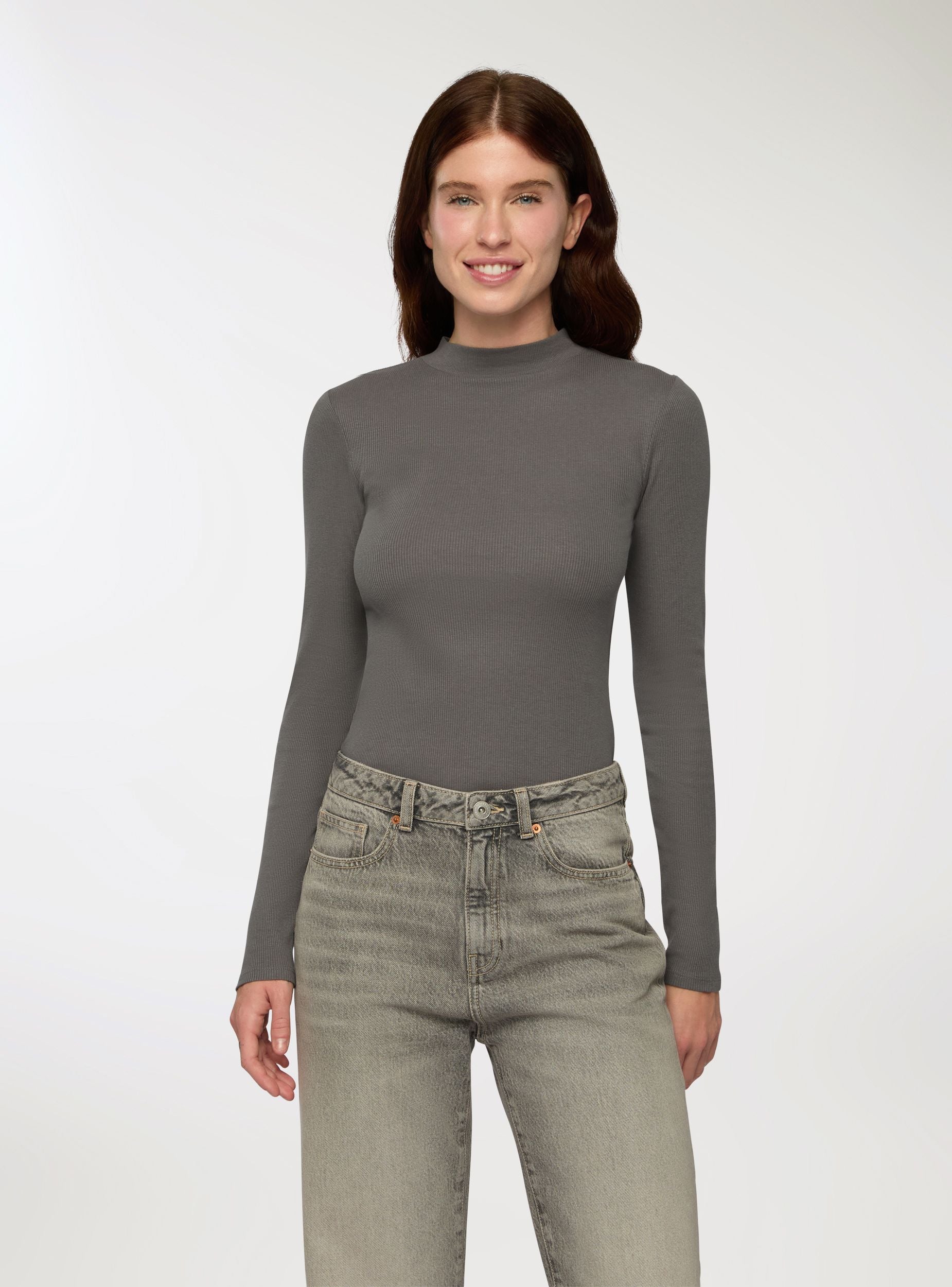Maglia da donna a lupetto in costina, aderente e a tinta unita. Essenziale e sempre attuale, questa maglia è un vero must have di stagione. Realizzata in tessuto a costine e proposta in tinta unita, presenta una linea aderente che valorizza la silhouette con semplicità ed eleganza. Le maniche lunghe e il collo alto conferiscono un tocco raffinato e contemporaneo, ideale per affrontare con stile le giornate più fresche. Perfetta da indossare da sola per un look minimal oppure abbinata a blazer, giacche o cardigan, è il capo basico da avere sempre a portata di mano nel guardaroba. Versatile, femminile e incredibilmente comoda: la scelta giusta per ogni occasione.