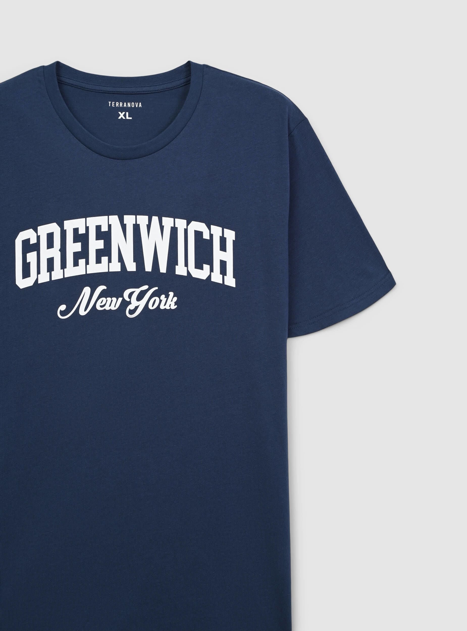 Maglietta da uomo con stampa in stile college, perfetta per un look casual e sportivo. Il design con scritta frontale aggiunge un tocco distintivo. Realizzata in morbido jersey di cotone, presenta maniche corte e girocollo rifinito a costine per il massimo comfort. Versatile e di tendenza, si abbina facilmente a jeans o pantaloni chino.